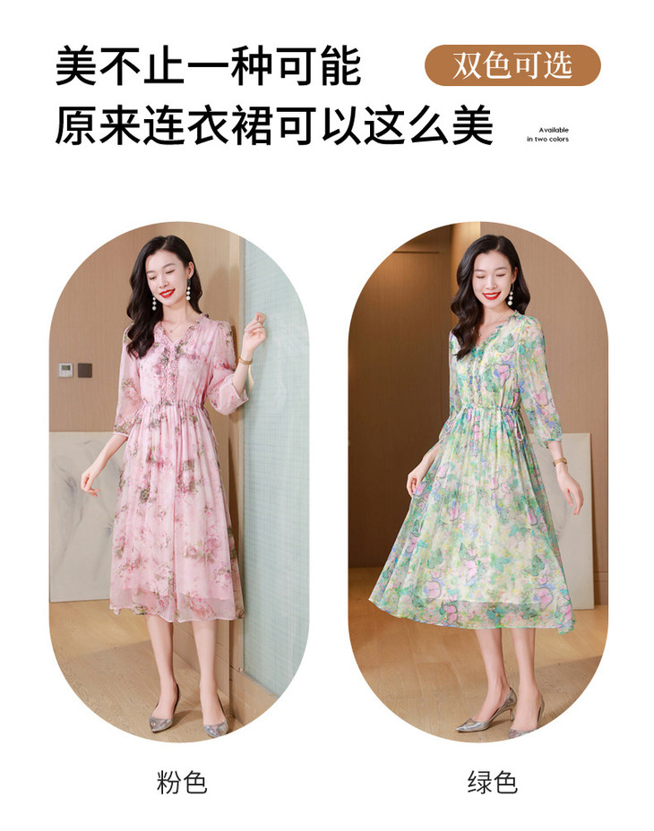 ASE重磅真丝2024年夏季新款高端设计感度假海边风调节腰连衣裙女 商品图0