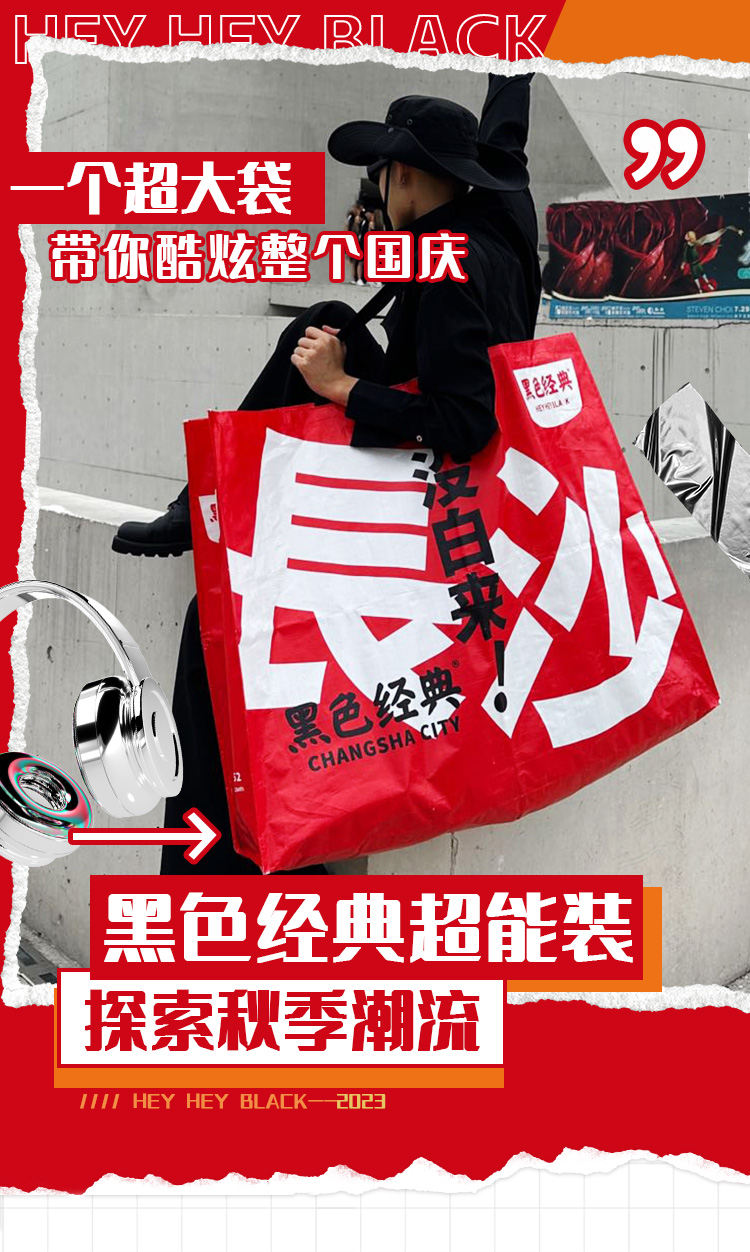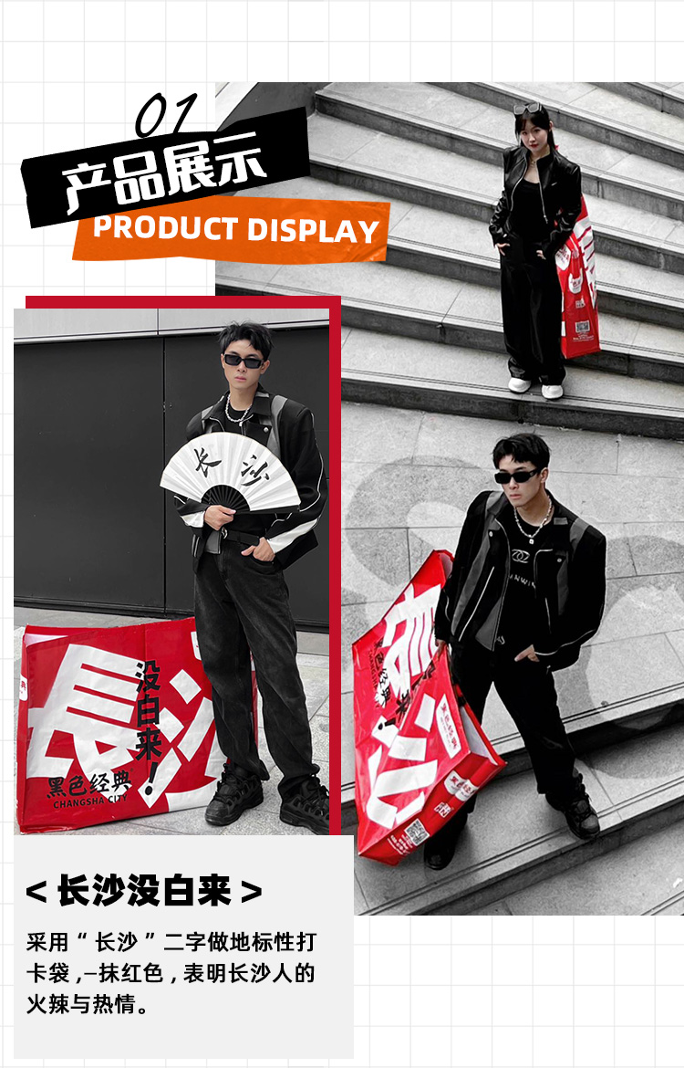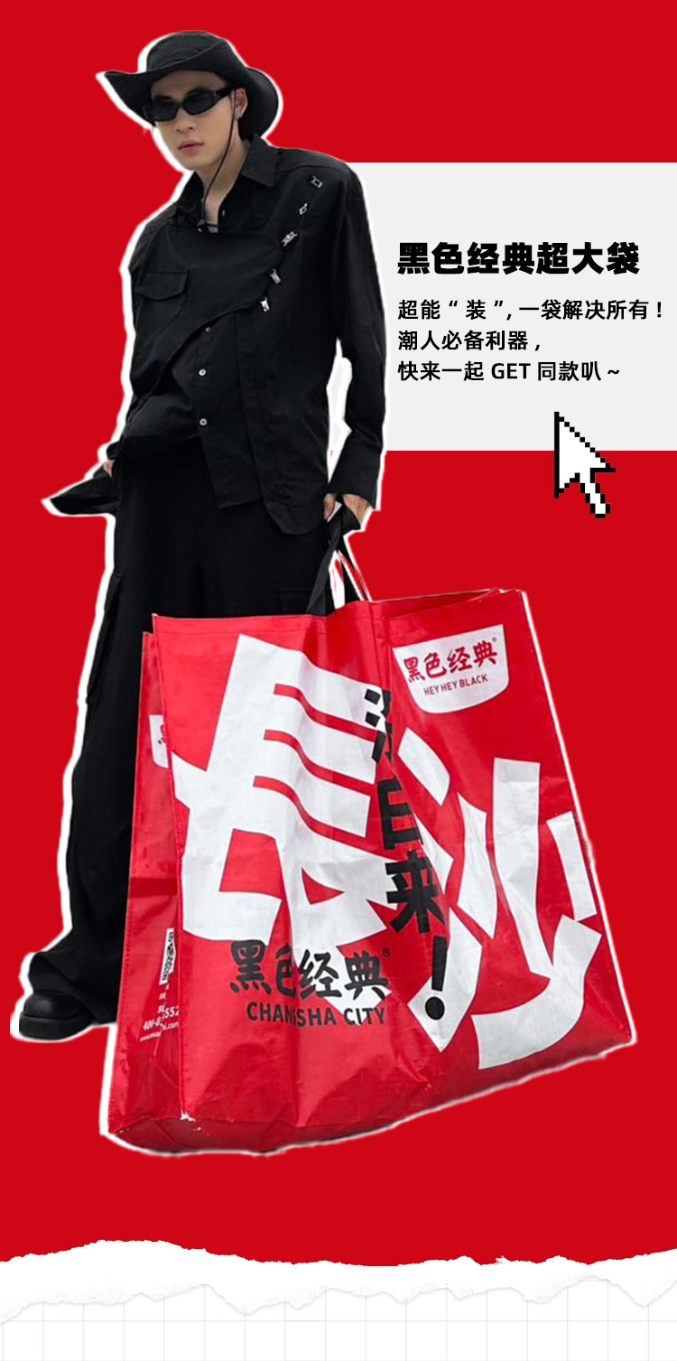 【文创周边】黑色经典长沙没白来潮酷超大袋假期出游打卡拍照显眼包