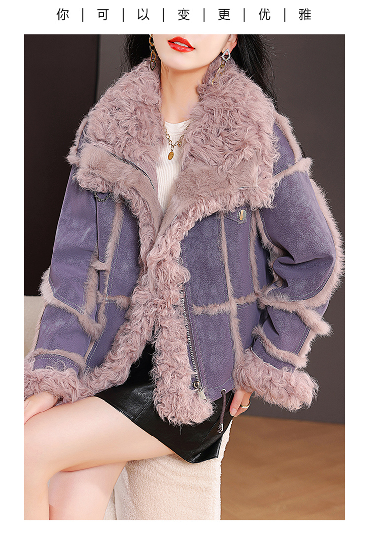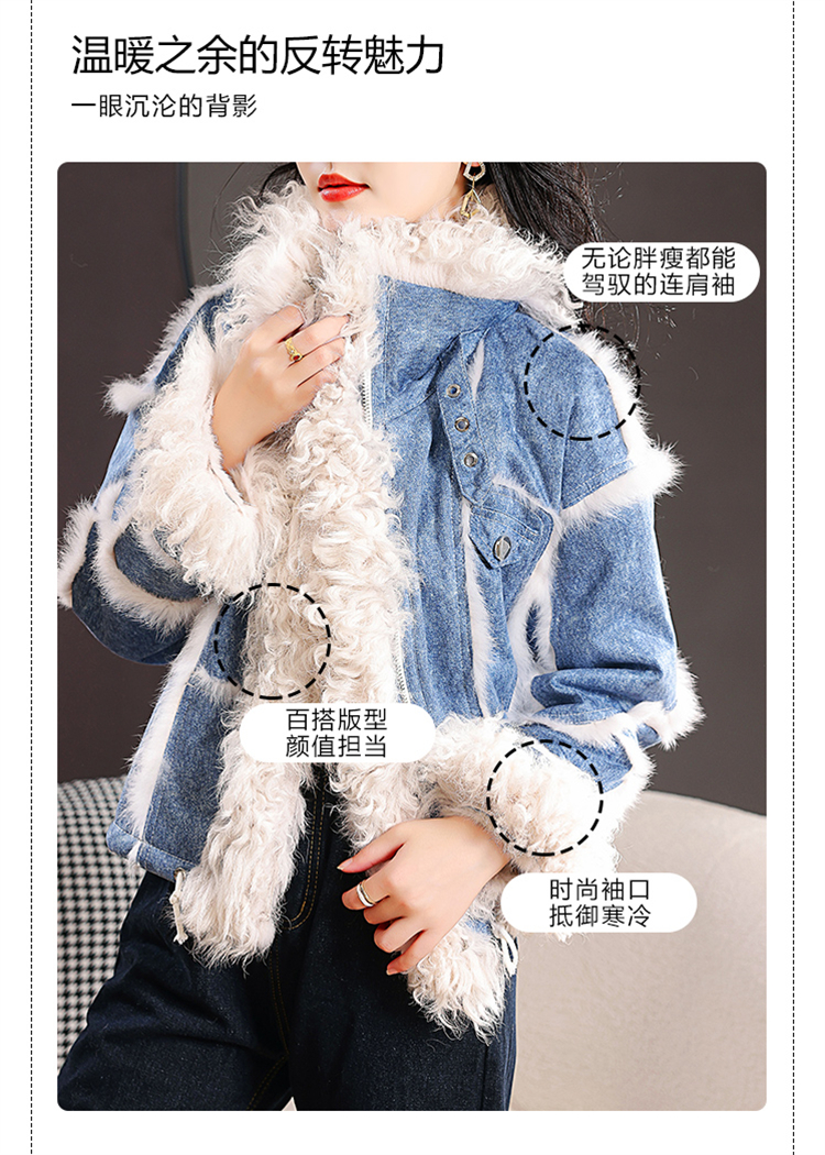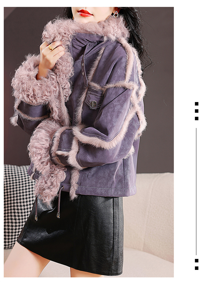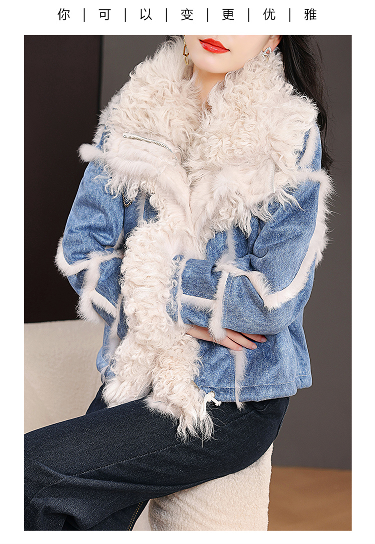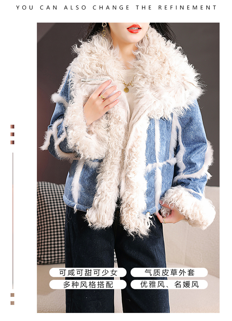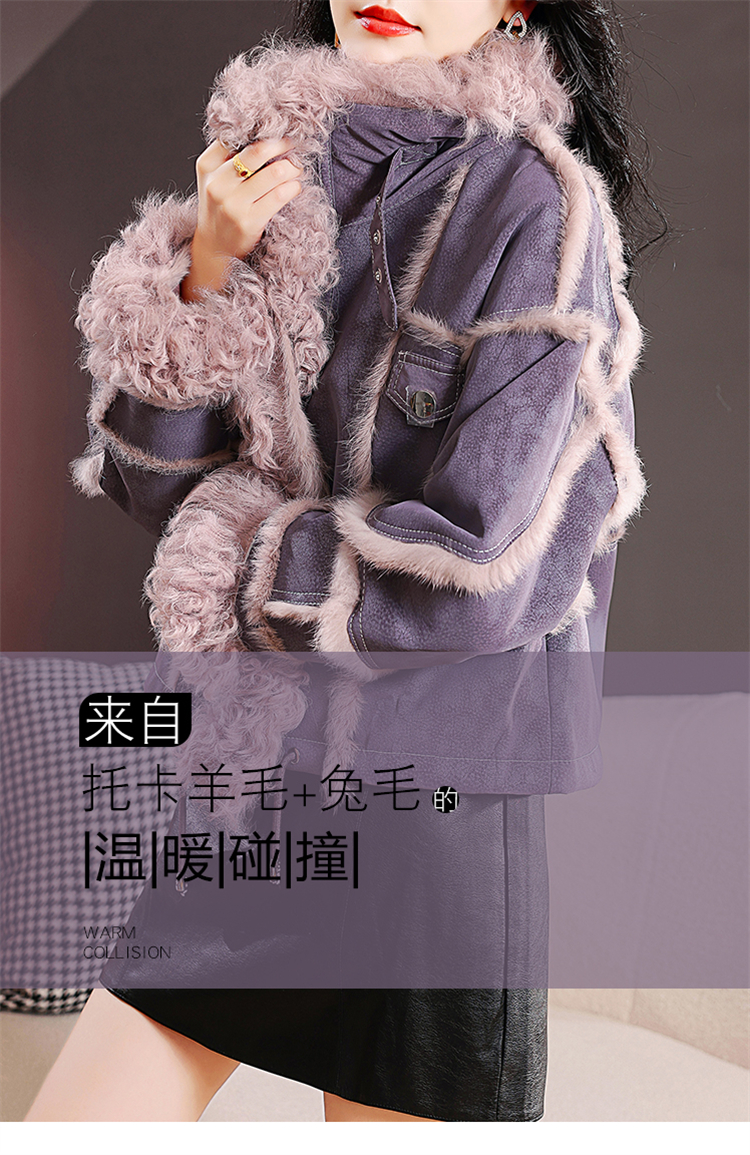 冬季新款,兔毛拼托卡羊毛皮草外套HR-MXG2418