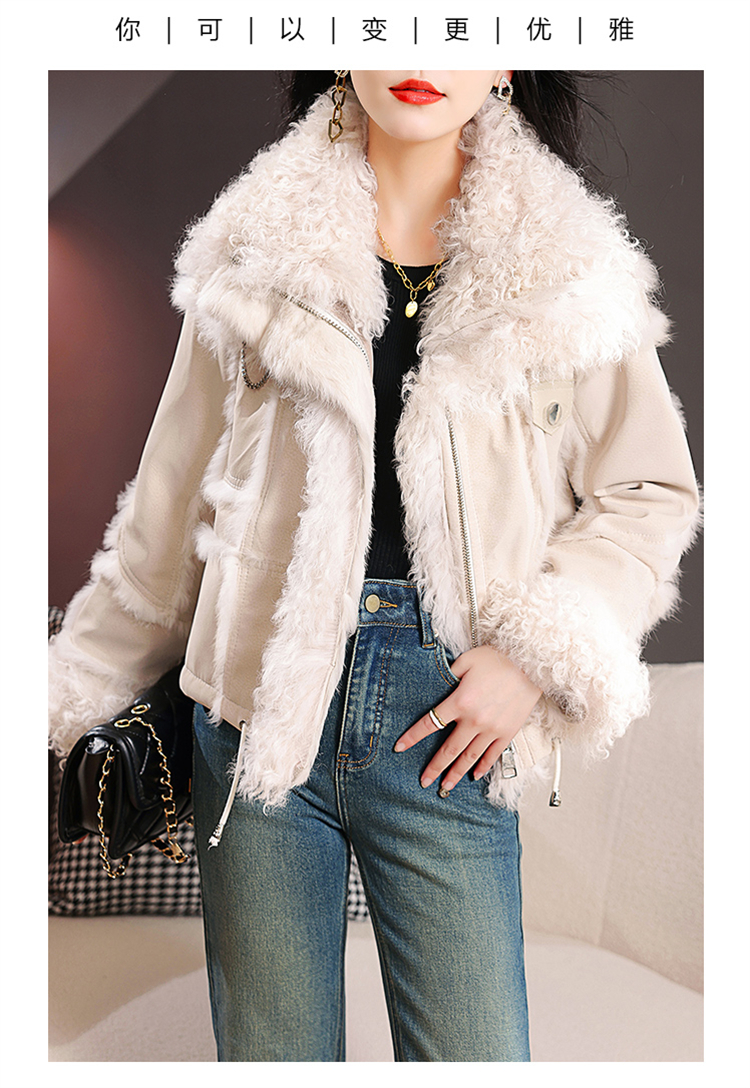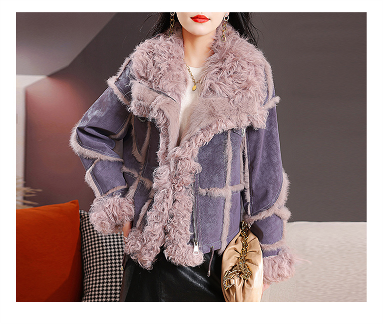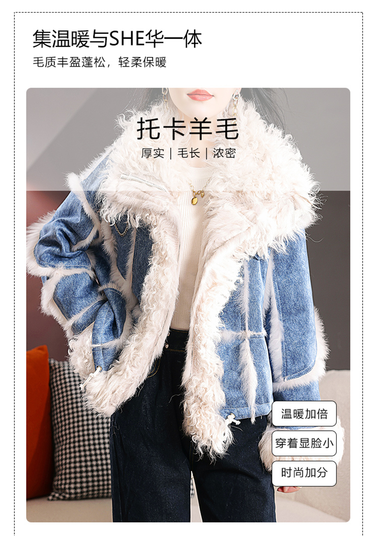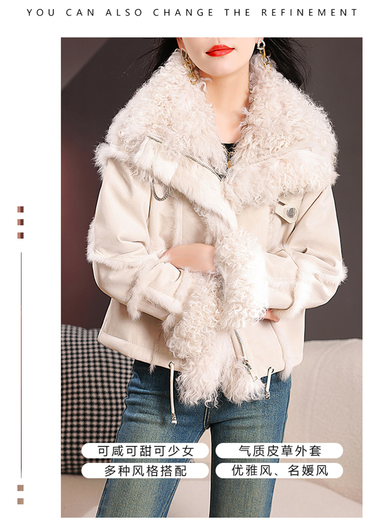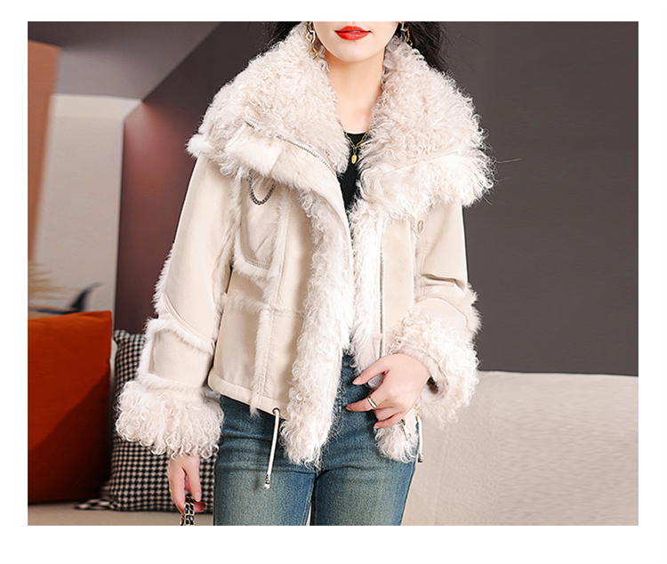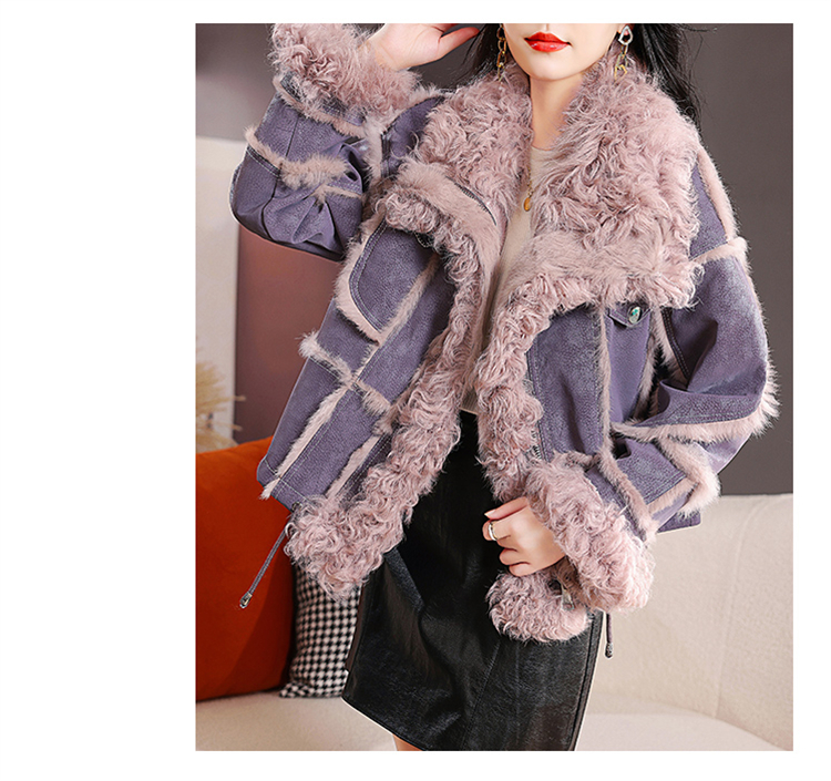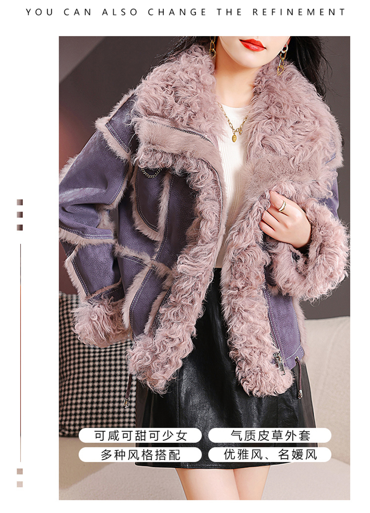 冬季新款,兔毛拼托卡羊毛皮草外套HR-MXG2418