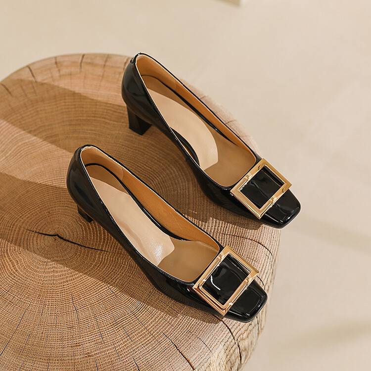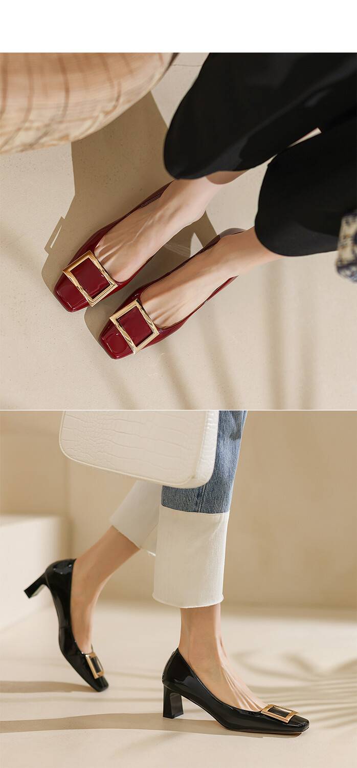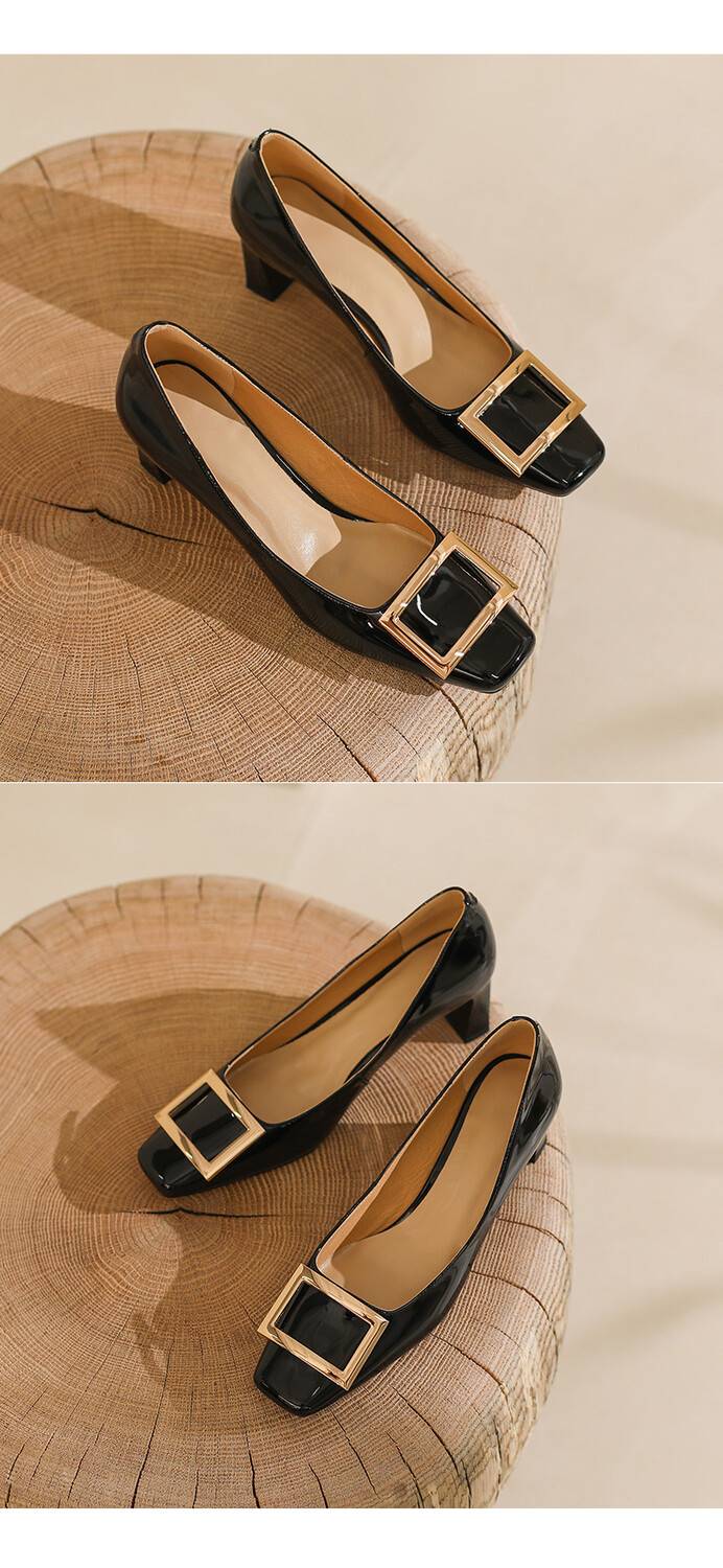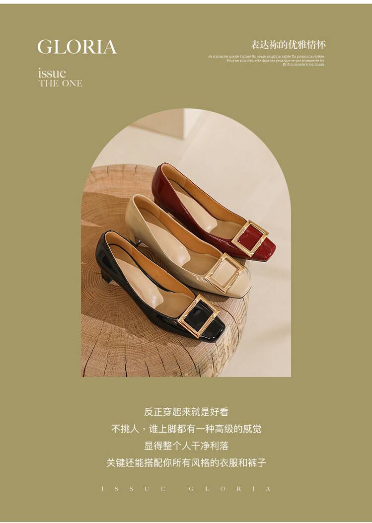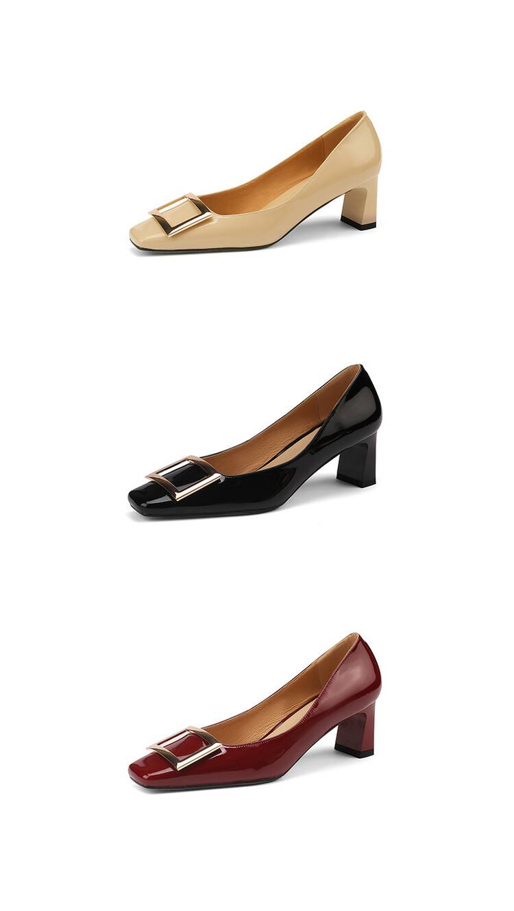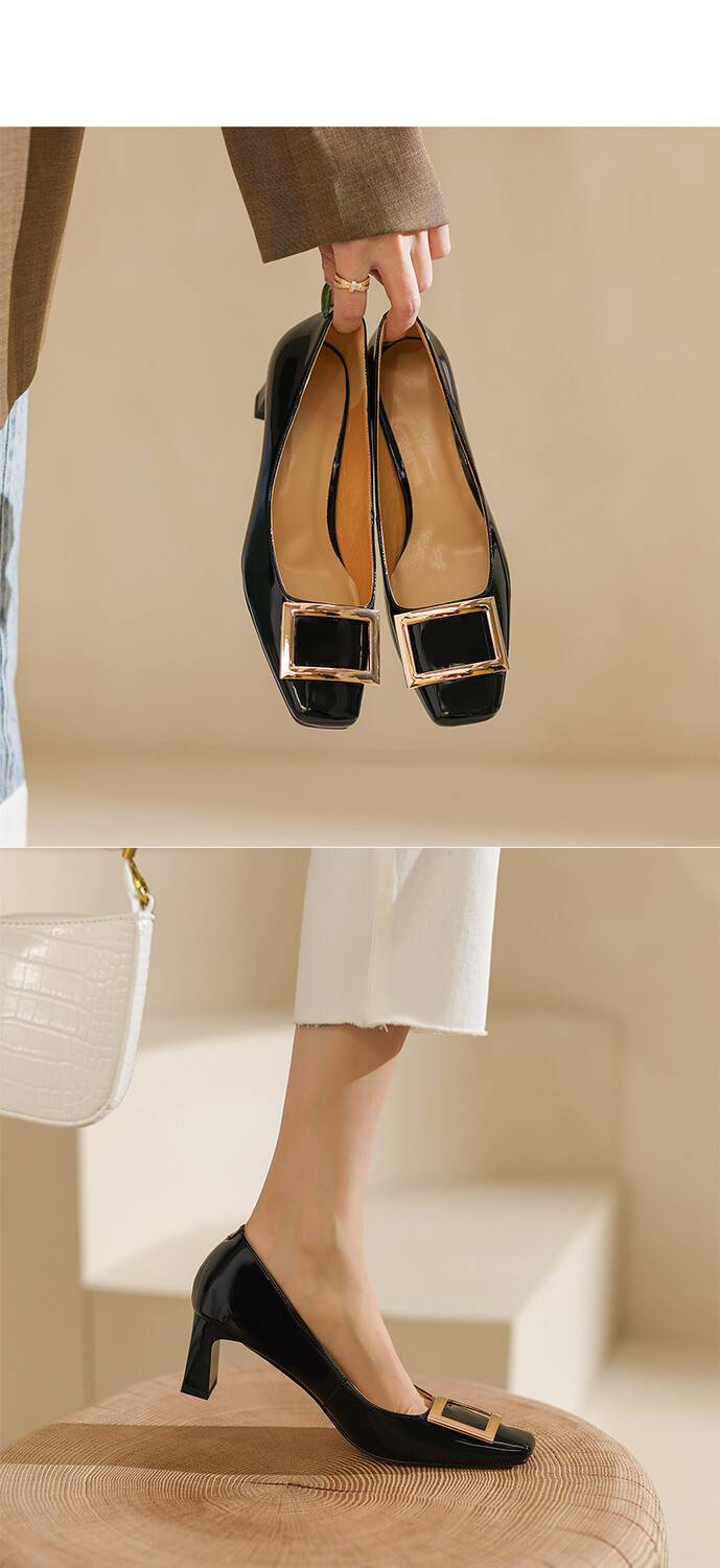 【预售5天】里外全皮时尚方扣高跟鞋新款方头单鞋女真皮职场女鞋大码DB&M5235