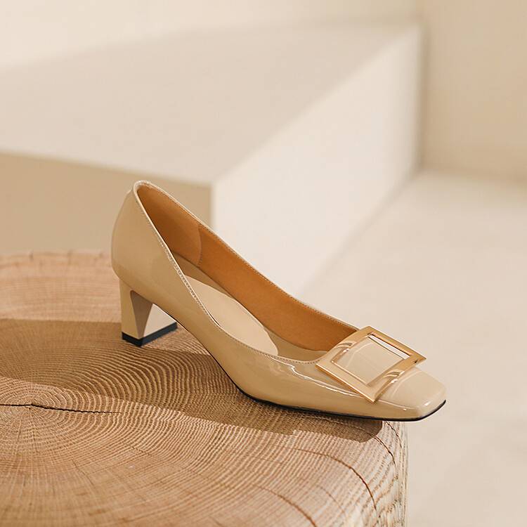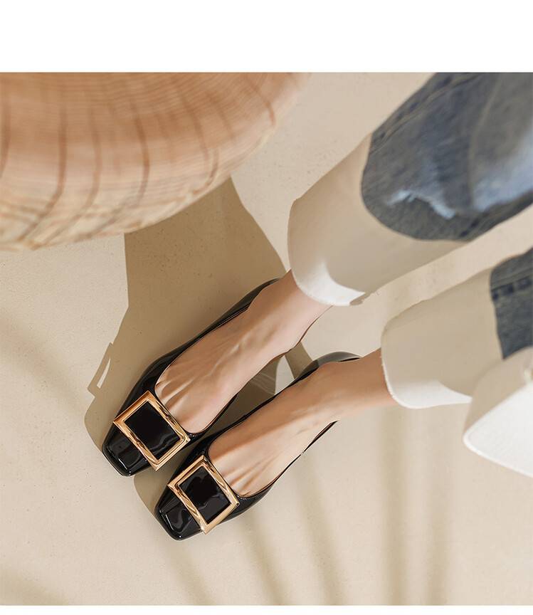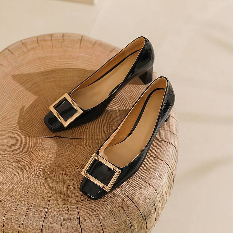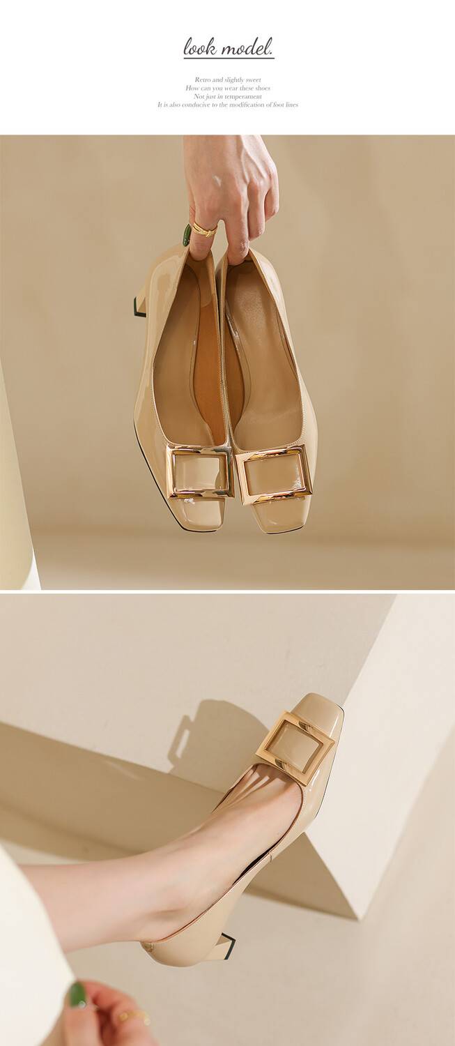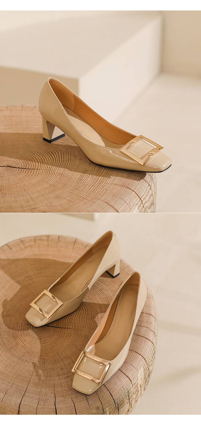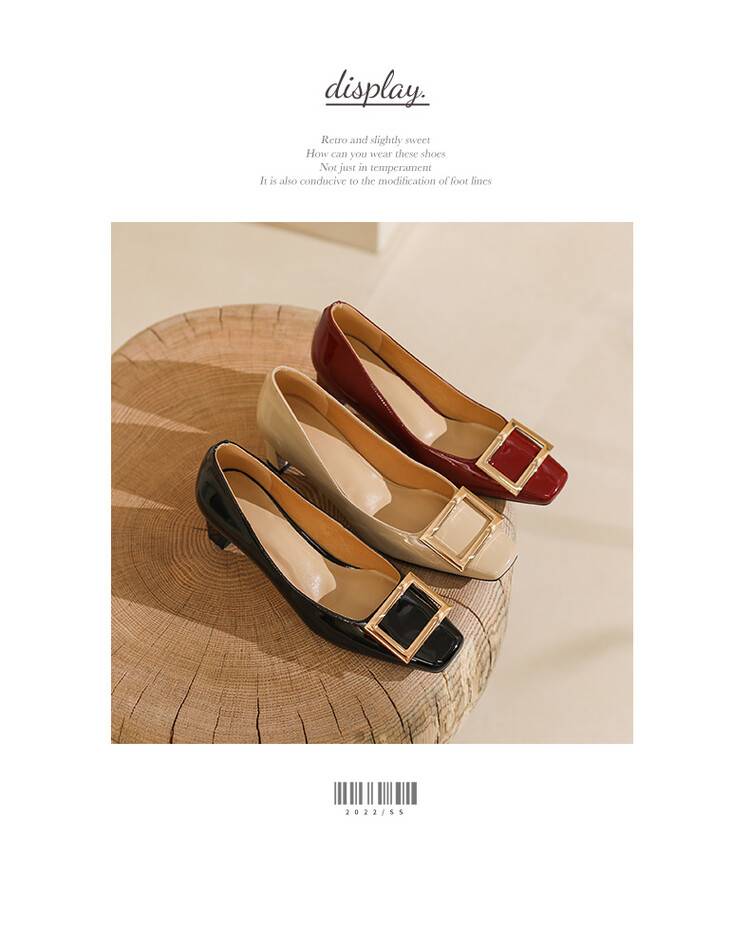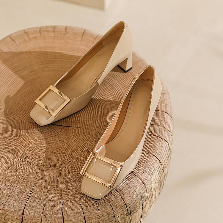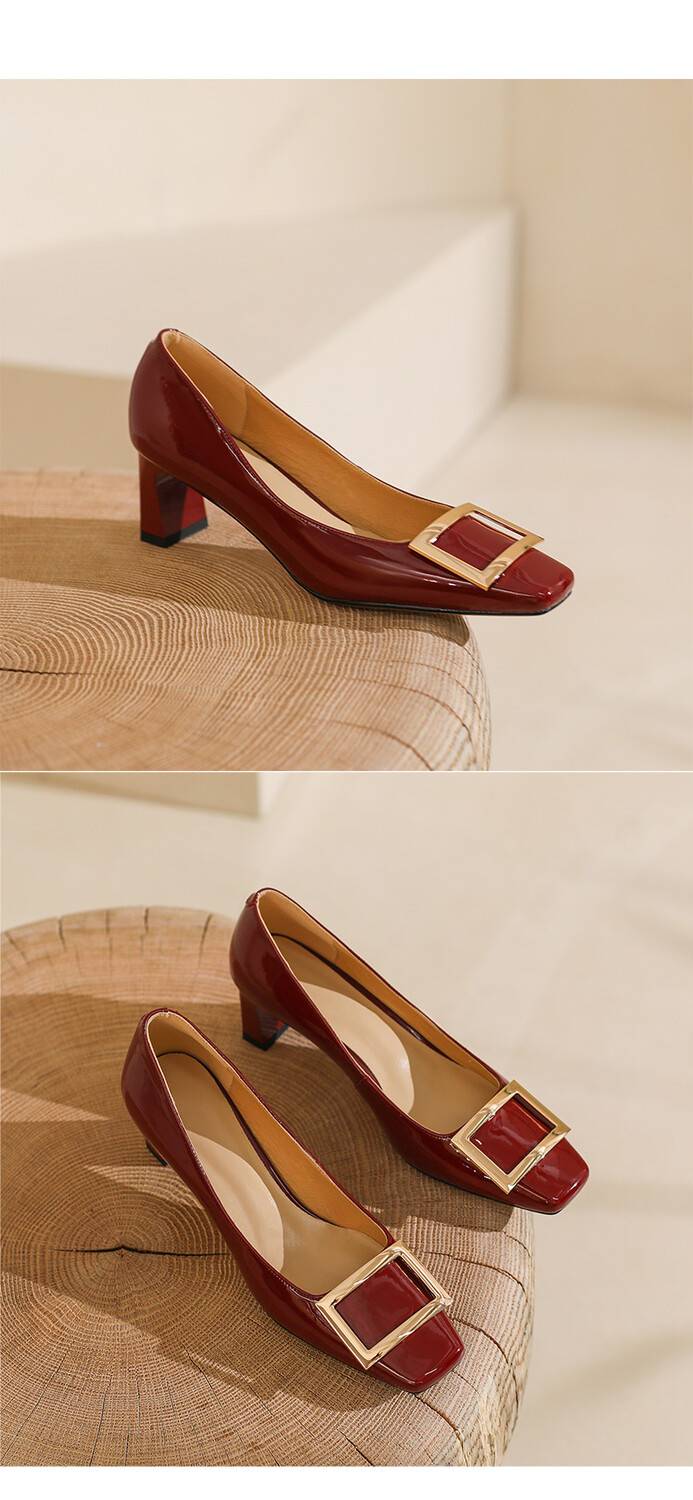 【预售5天】里外全皮时尚方扣高跟鞋新款方头单鞋女真皮职场女鞋大码DB&M5235