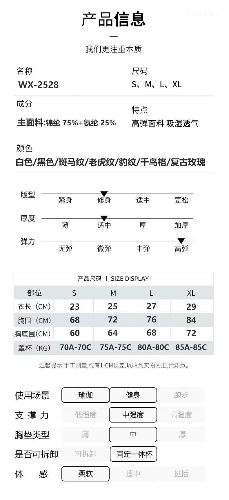 跃牌【美西西系列】一体式细带运动内衣女时尚印花美背豹纹网红文胸瑜伽健身背心WX-2528