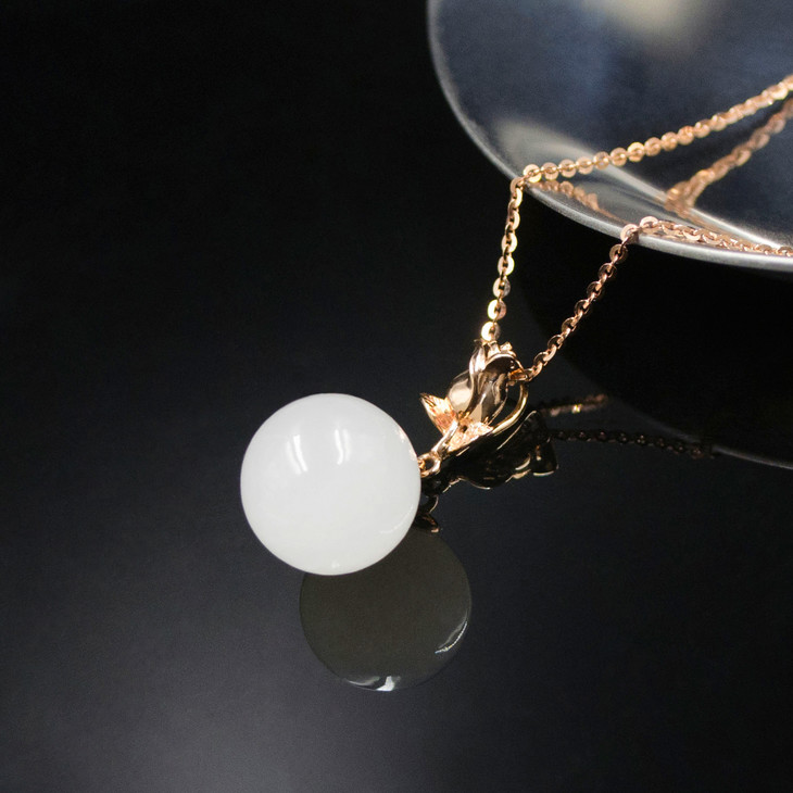 18K玫瑰金和田玉(白玉)玉珠吊坠