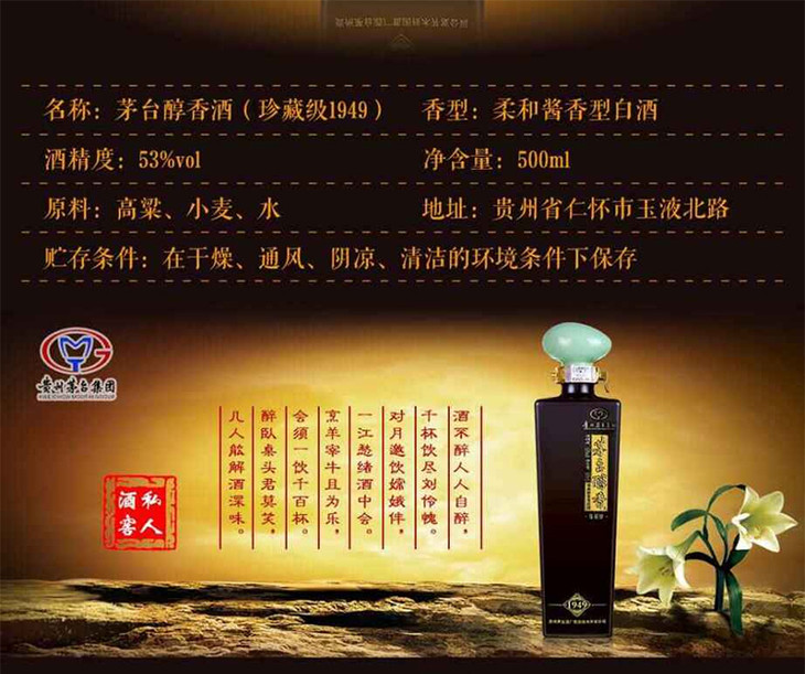 【推荐】清仓 2017年产茅台集团 茅台醇香 1949 酱香型 53度 500ml*4瓶 整盒装
