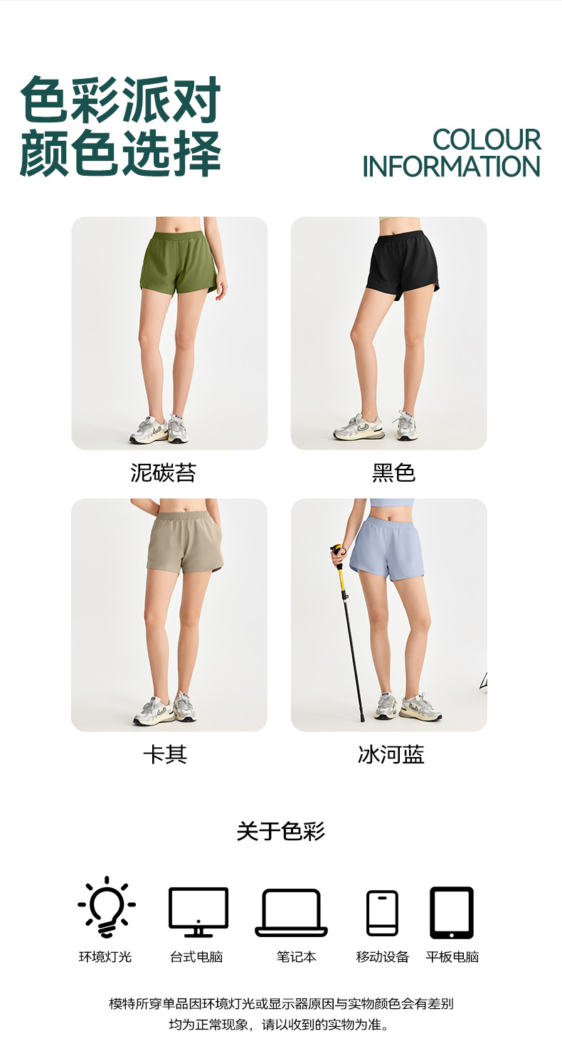 【限时秒】YOGACODE【火树银花系列】凉感运动短裤女假两件防走光后腰汗巾孔瑜伽短裤DWK115127