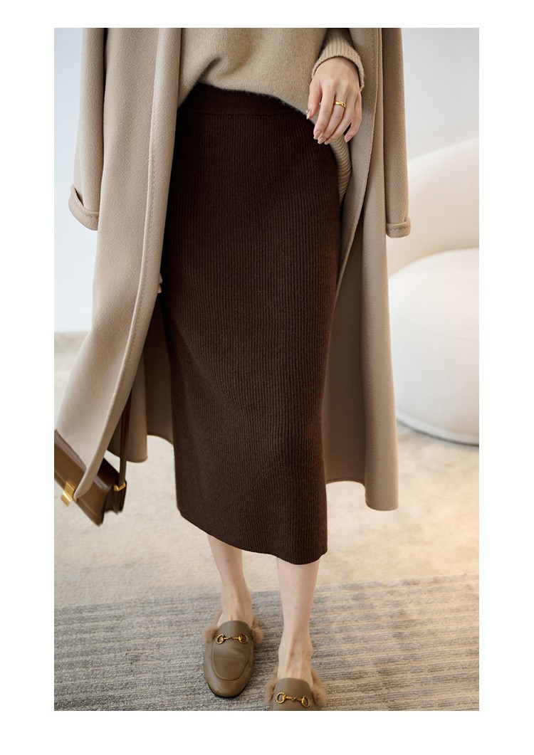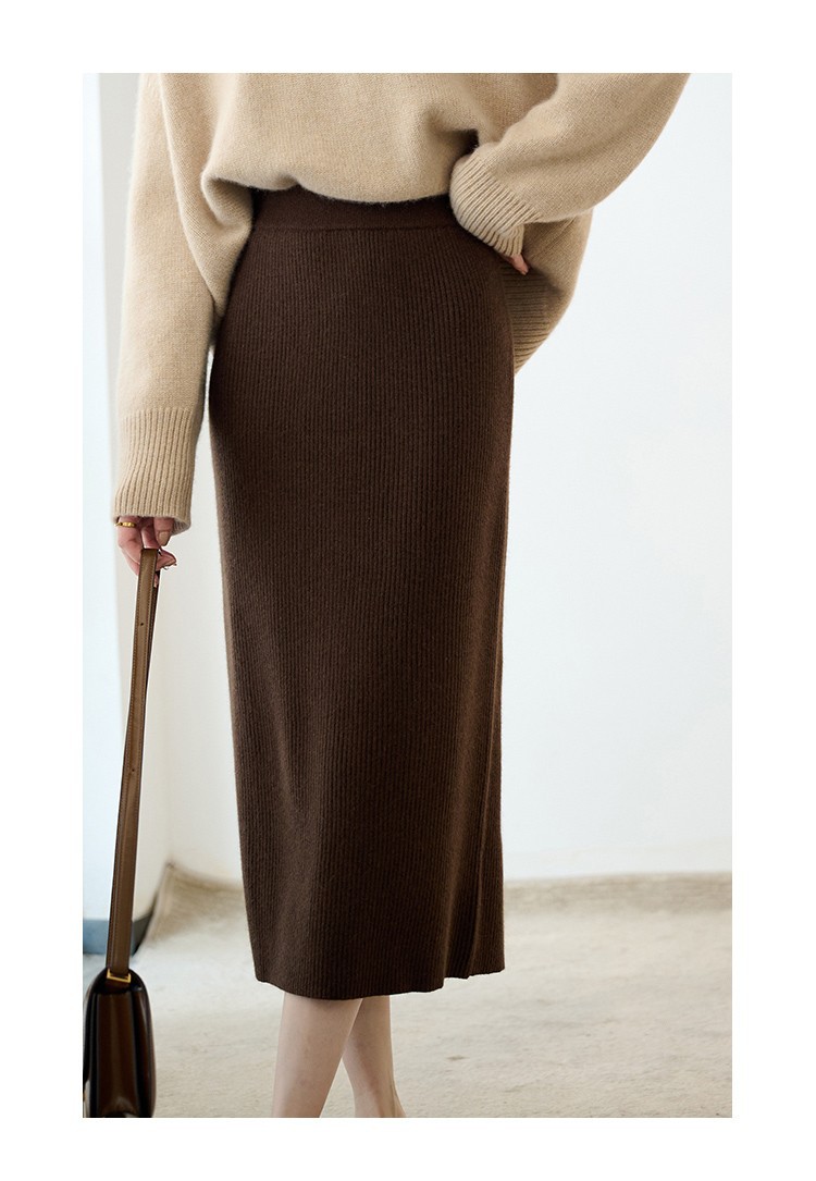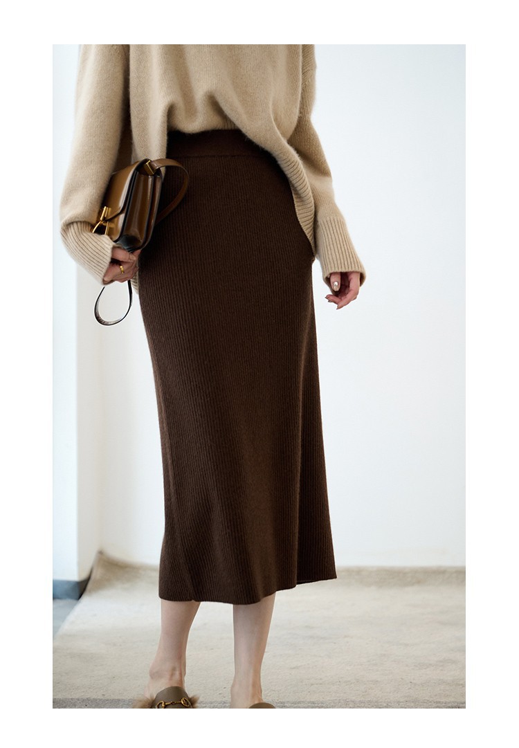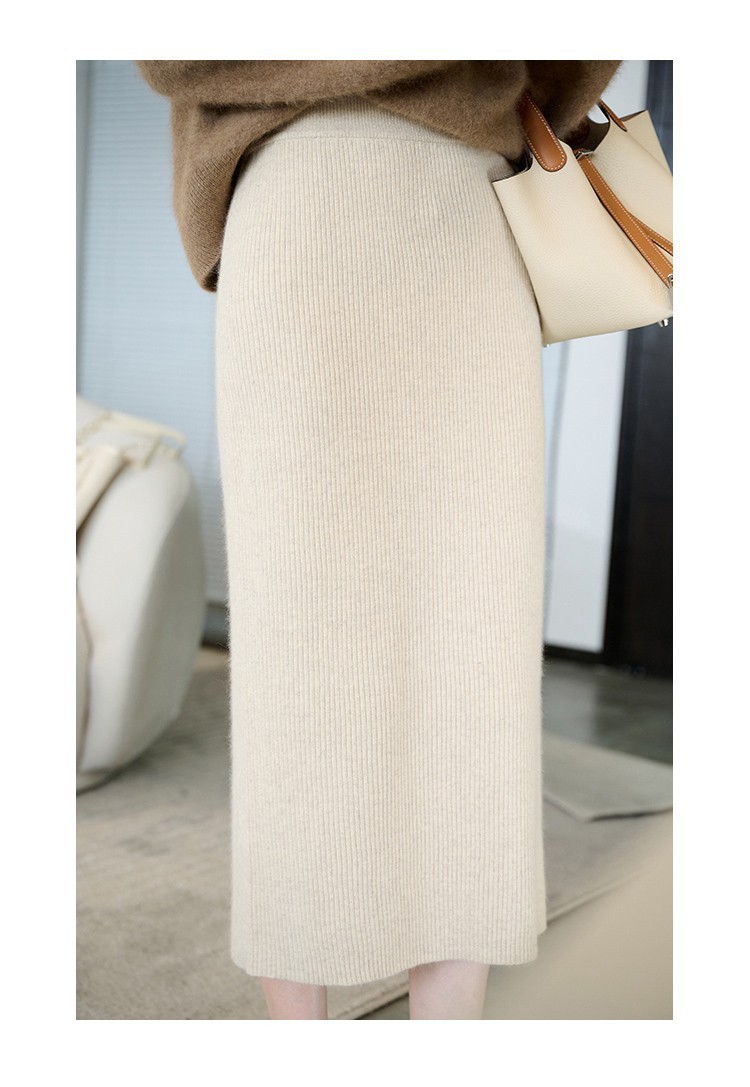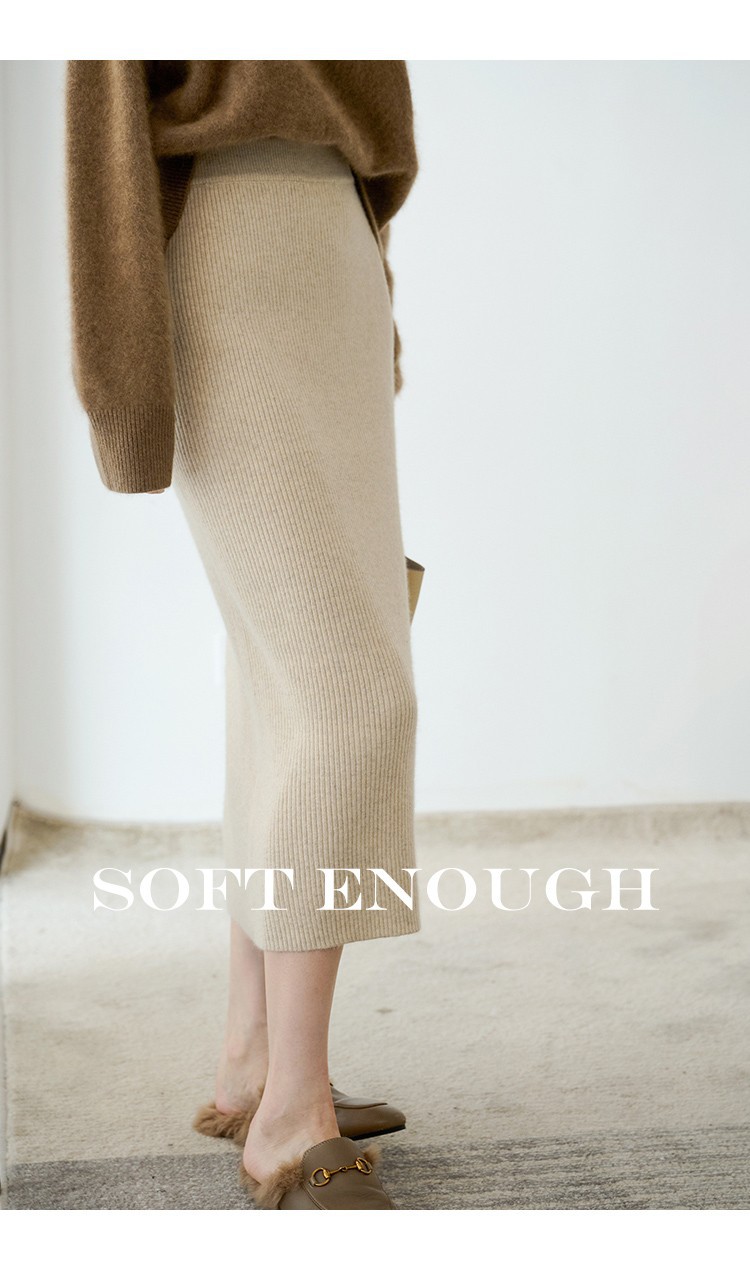 羊绒针织半身裙,纯羊毛H型显瘦高腰微包臀裙TR- 抽条半身裙