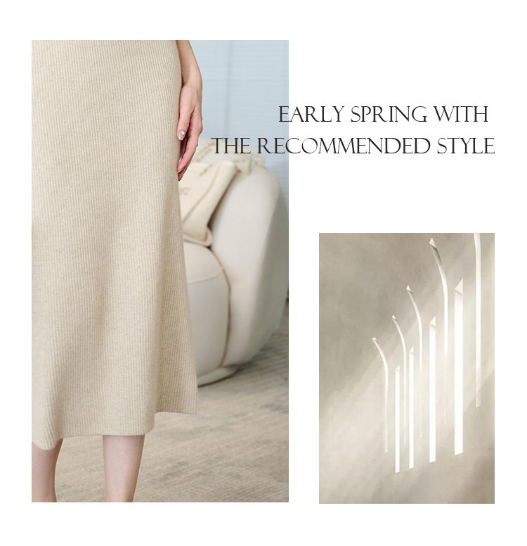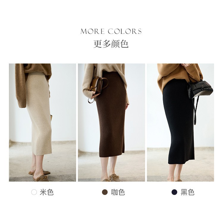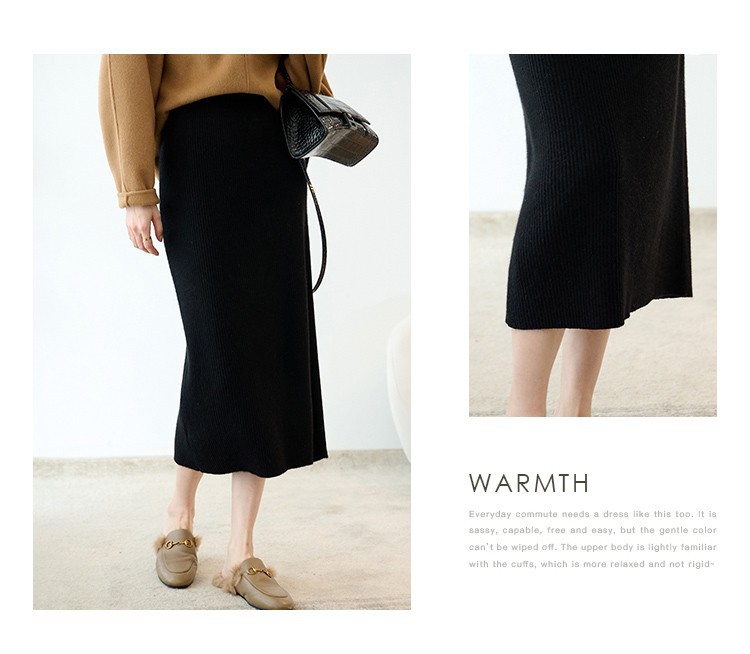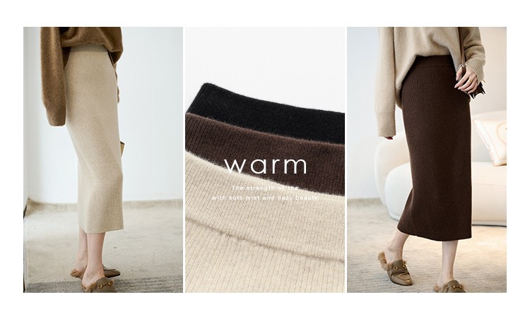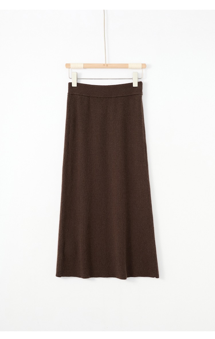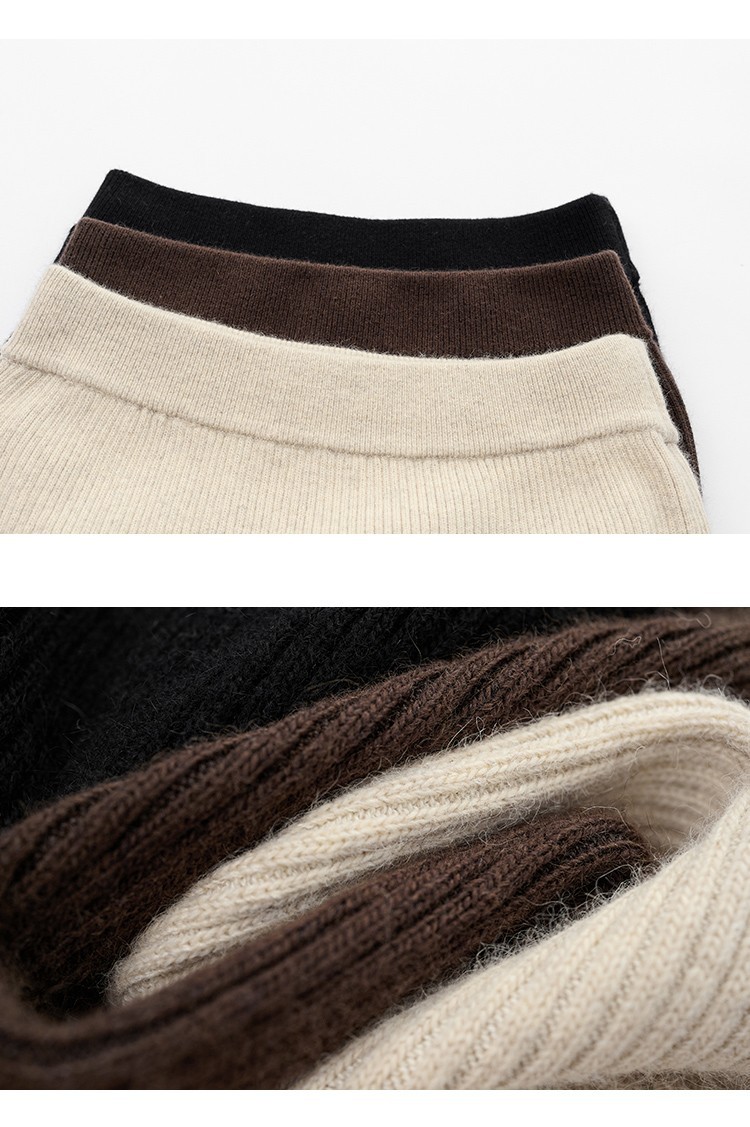 羊绒针织半身裙,纯羊毛H型显瘦高腰微包臀裙TR- 抽条半身裙