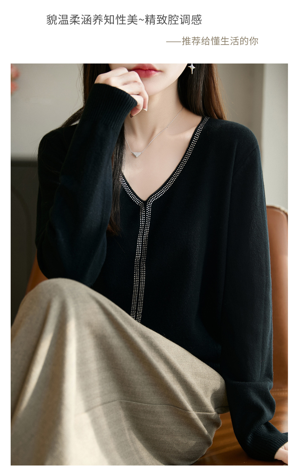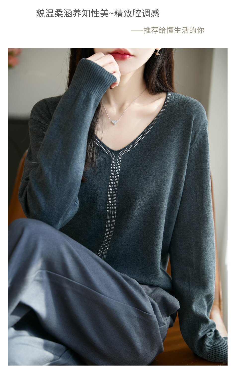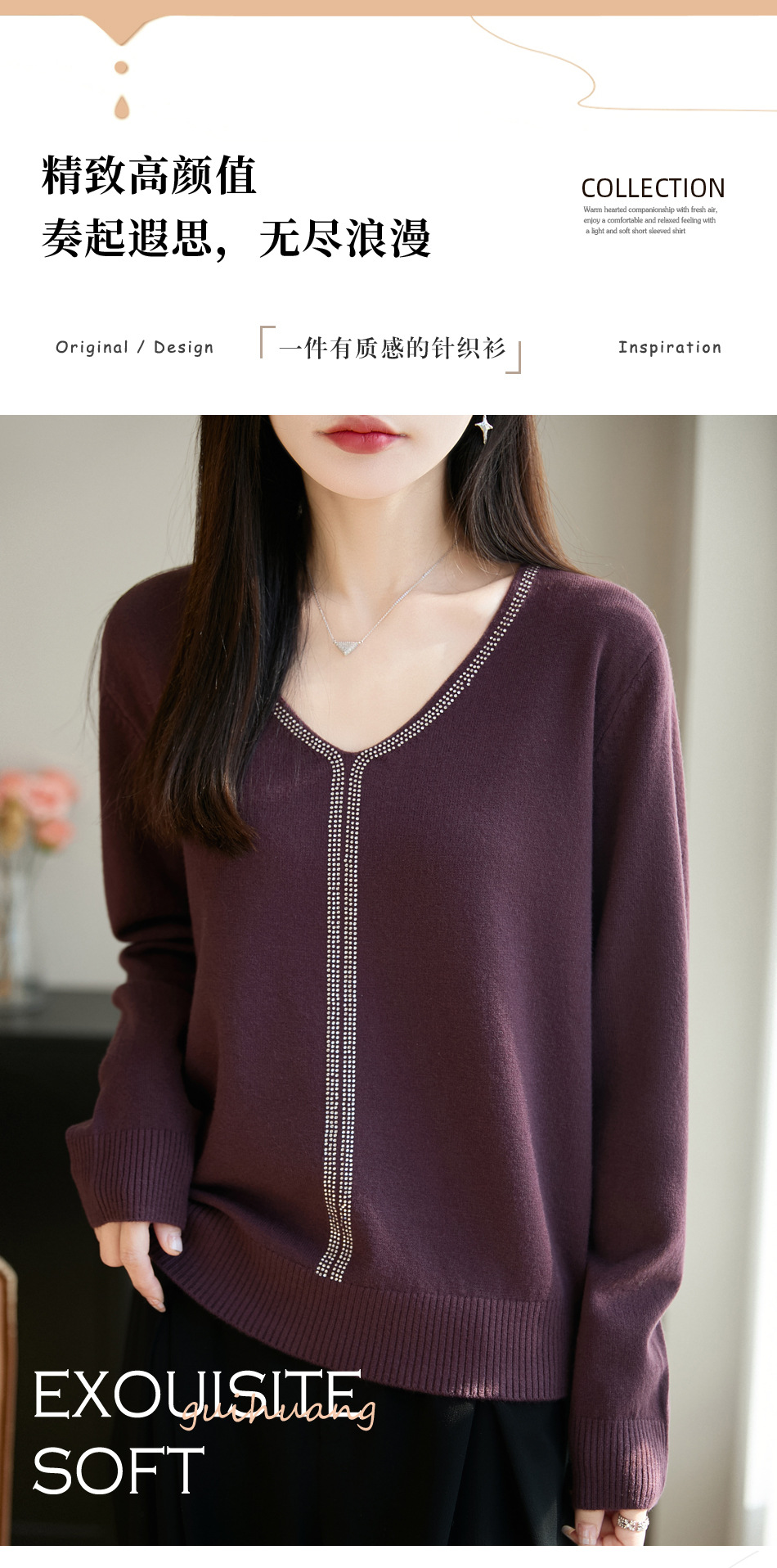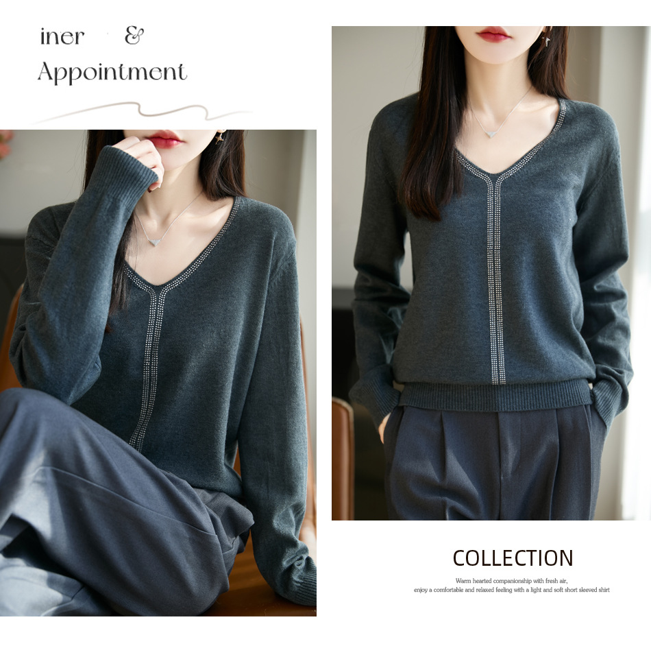 百媚生 法式重工烫钻针织打底衫薄款开衫GH-621-25