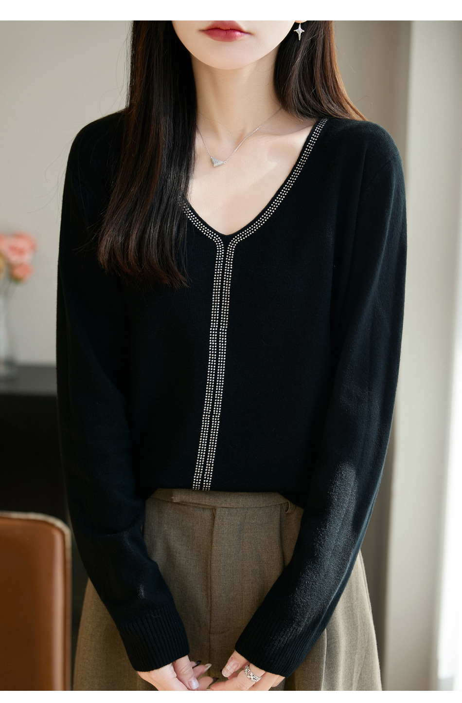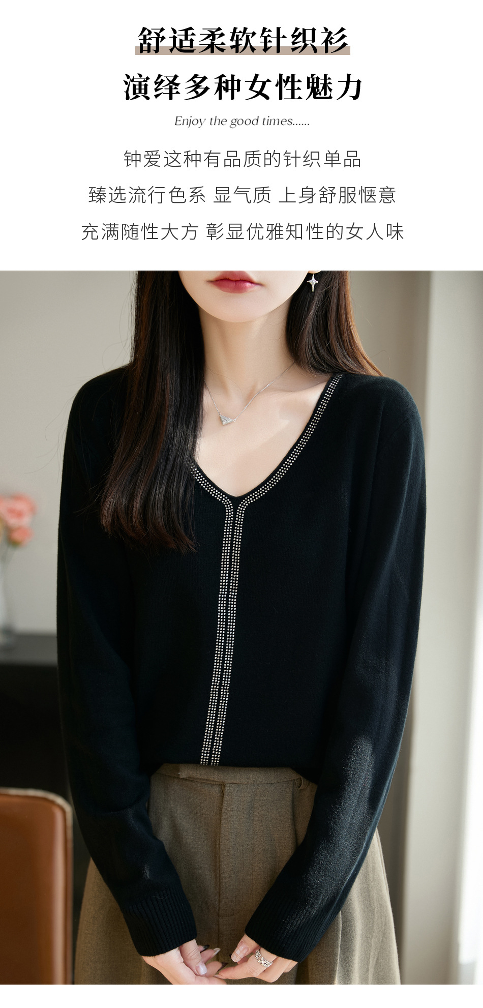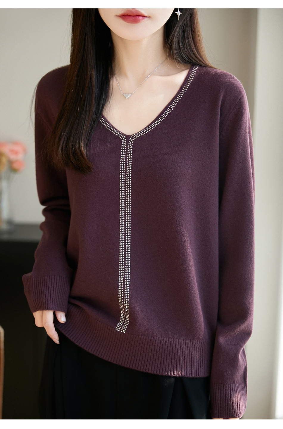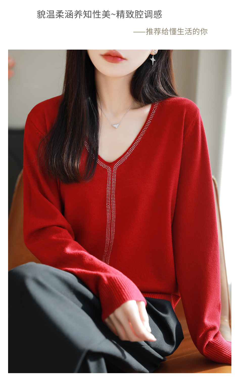 百媚生 法式重工烫钻针织打底衫薄款开衫GH-621-25