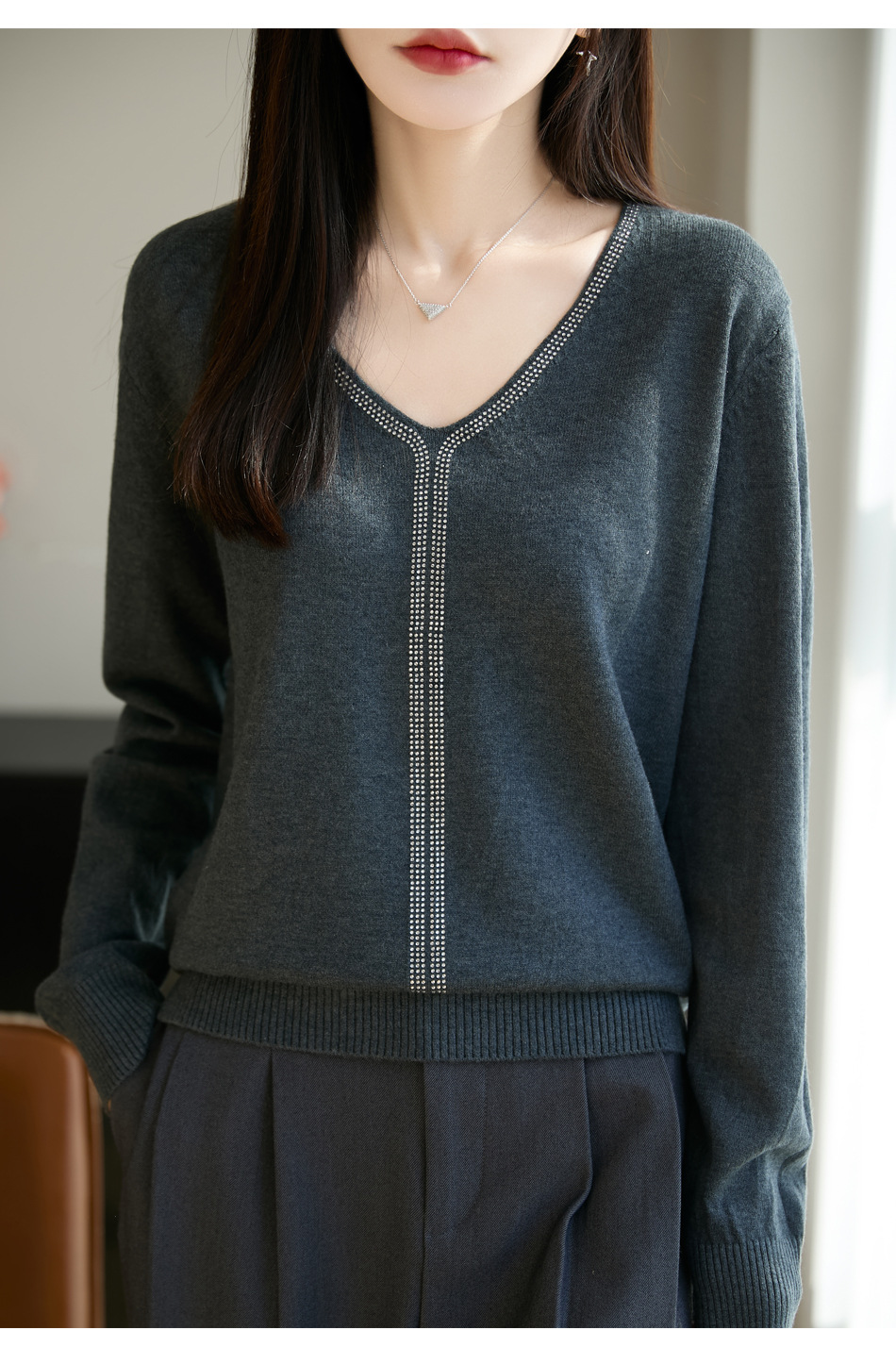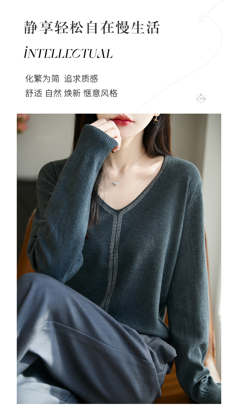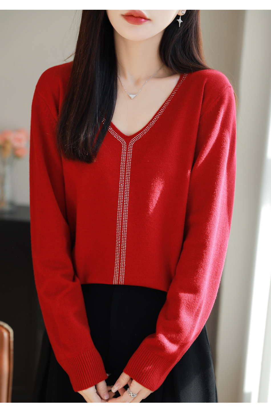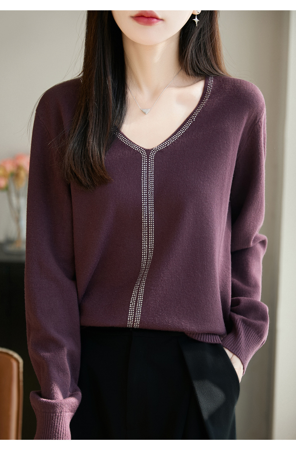 百媚生 法式重工烫钻针织打底衫薄款开衫GH-621-25