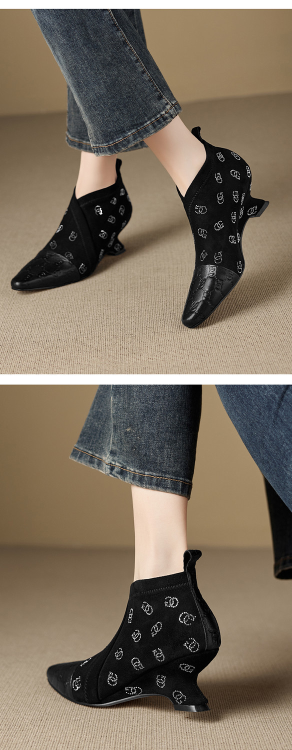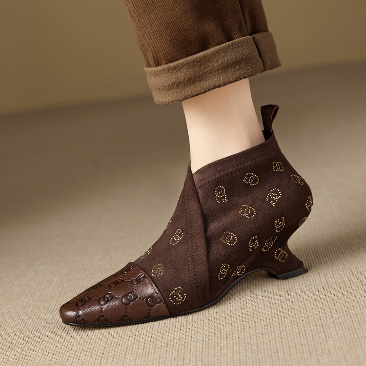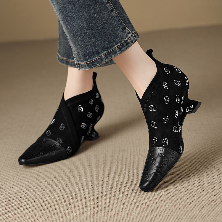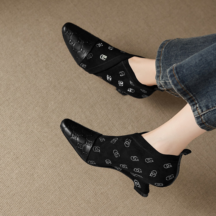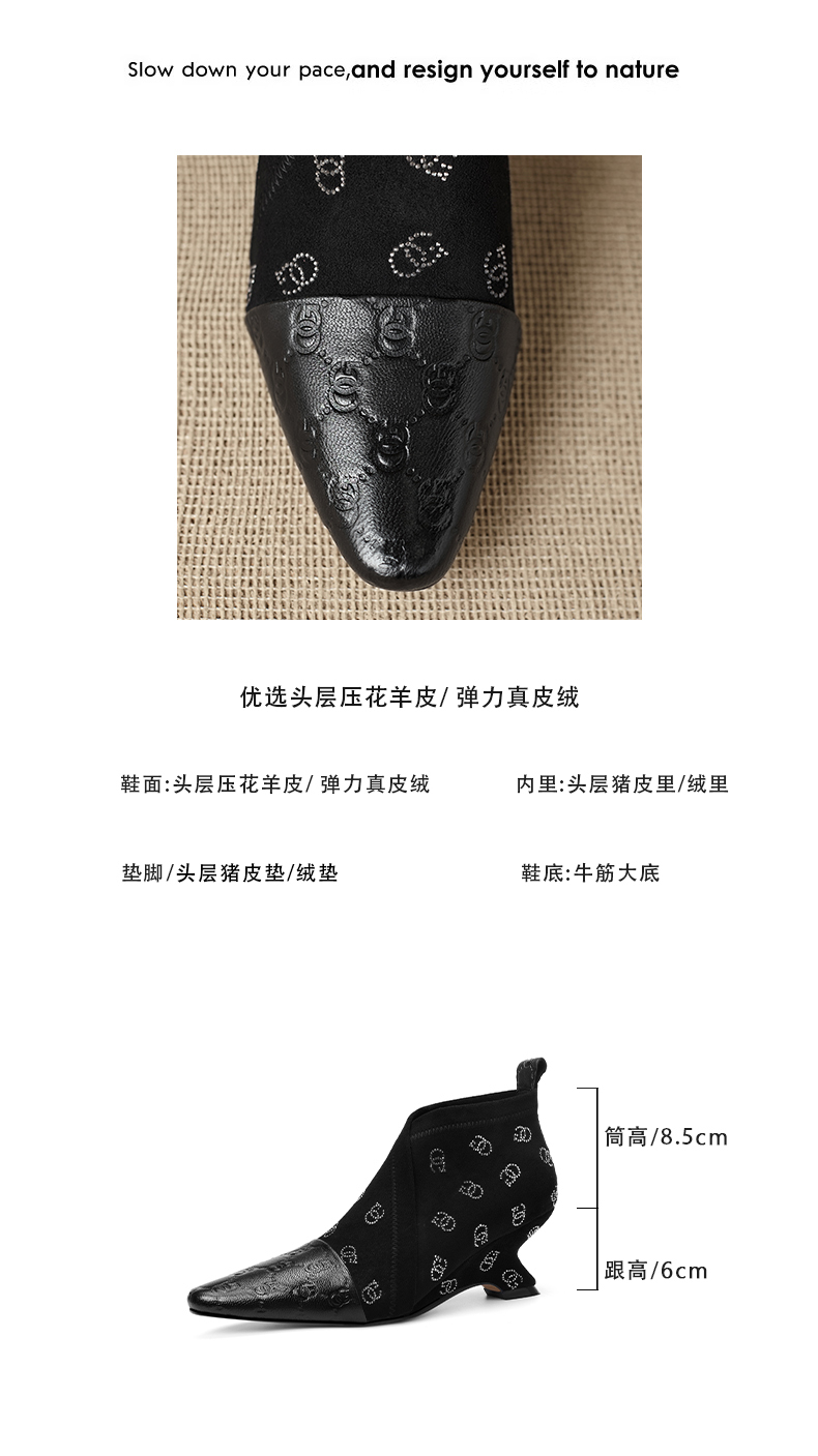 【鞋面材质】头层压花羊皮/弹力真皮绒