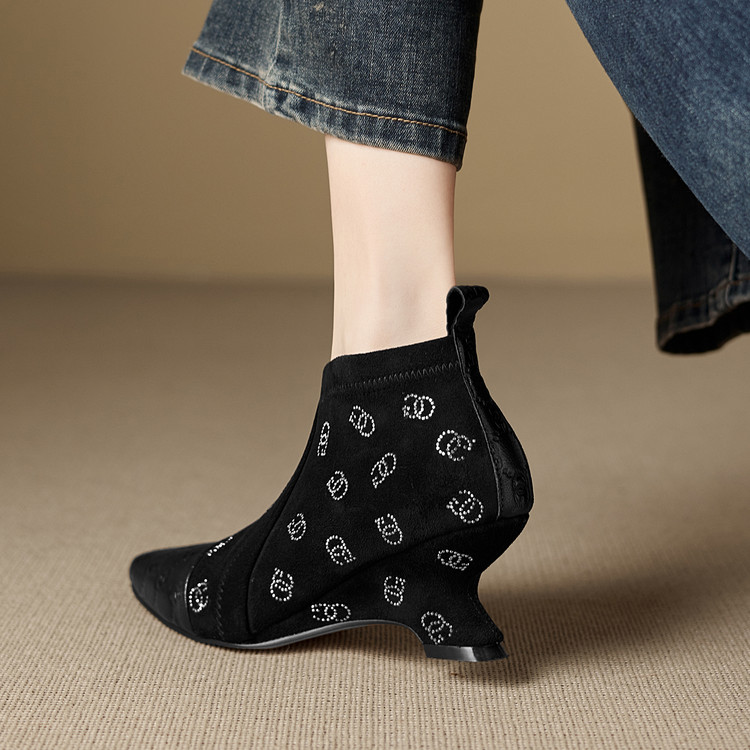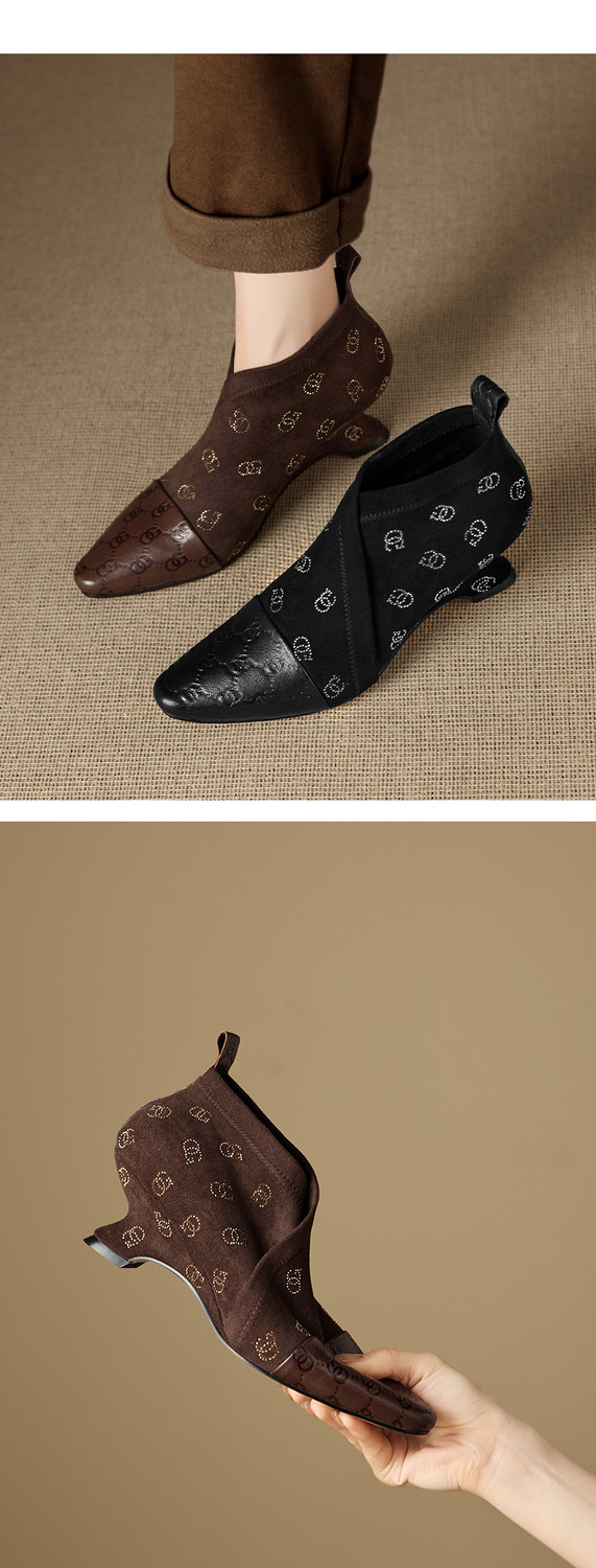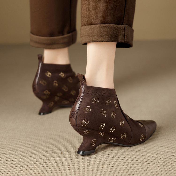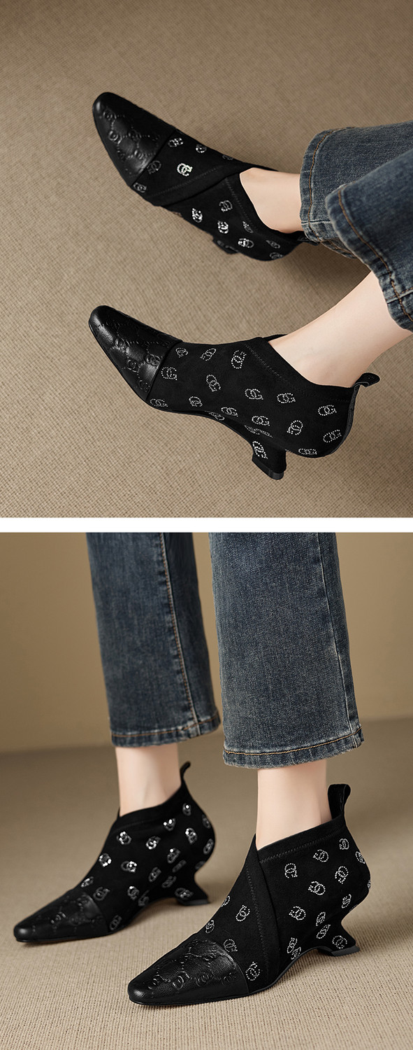 【鞋面材质】头层压花羊皮/弹力真皮绒