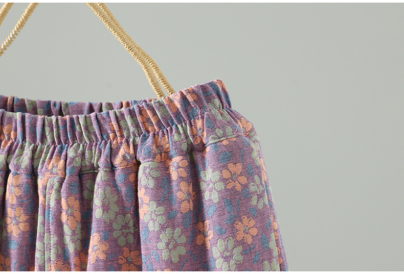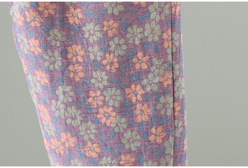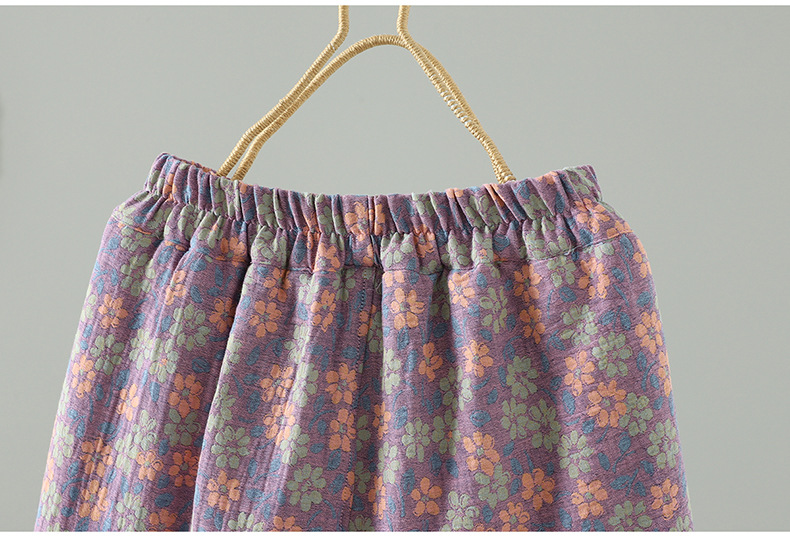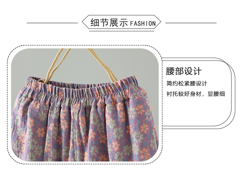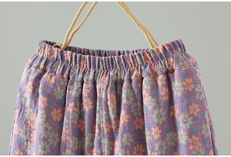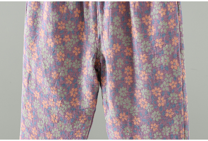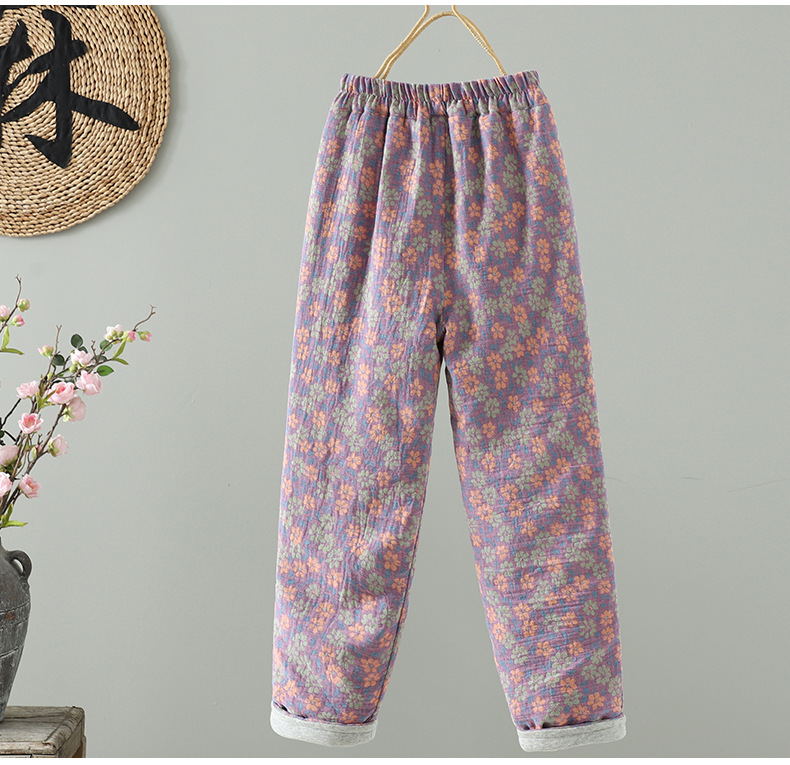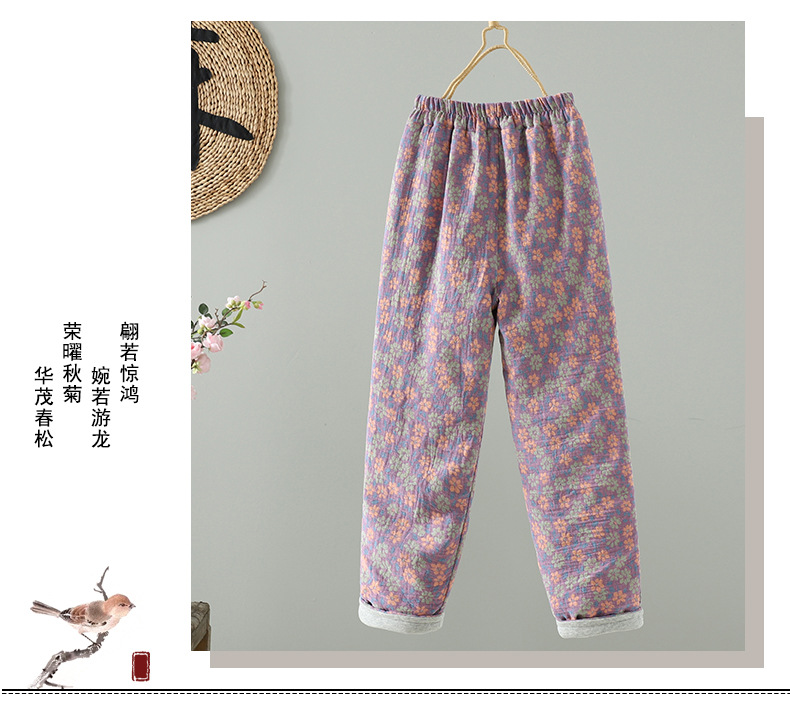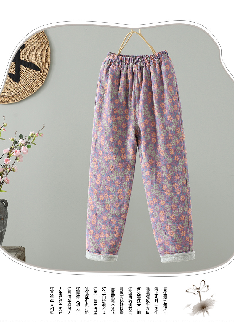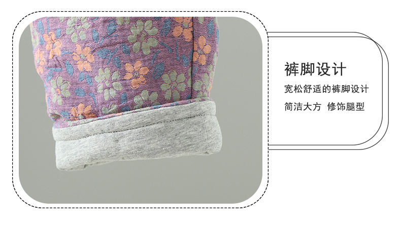 GYH 3810复古印花棉裤拼接加厚休闲宽松直筒裤