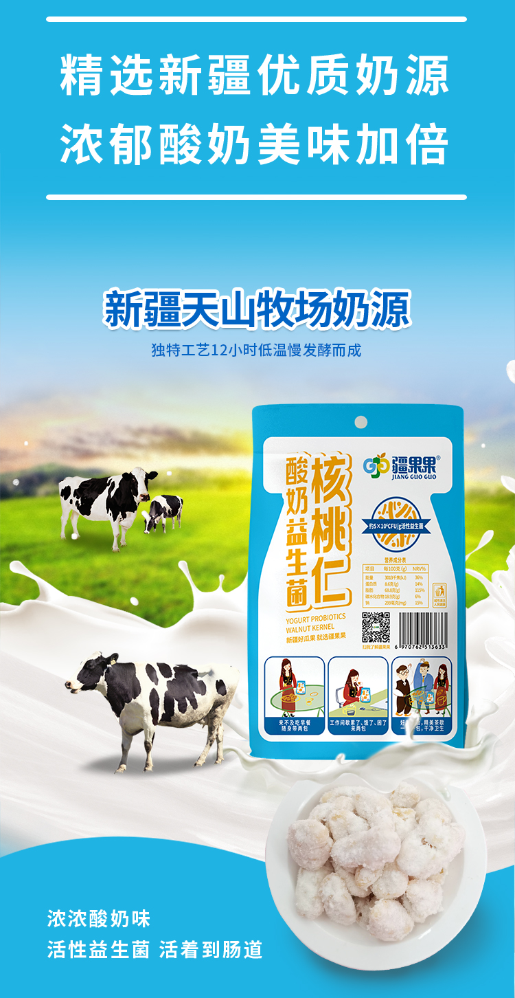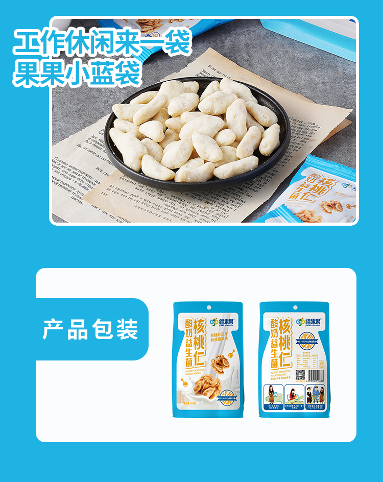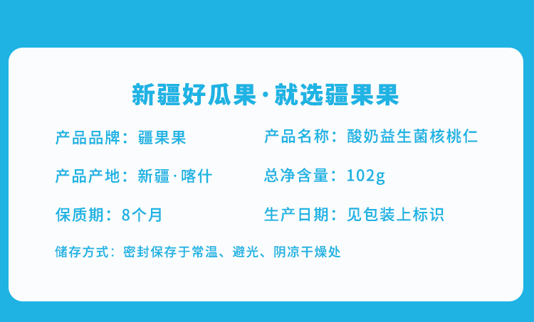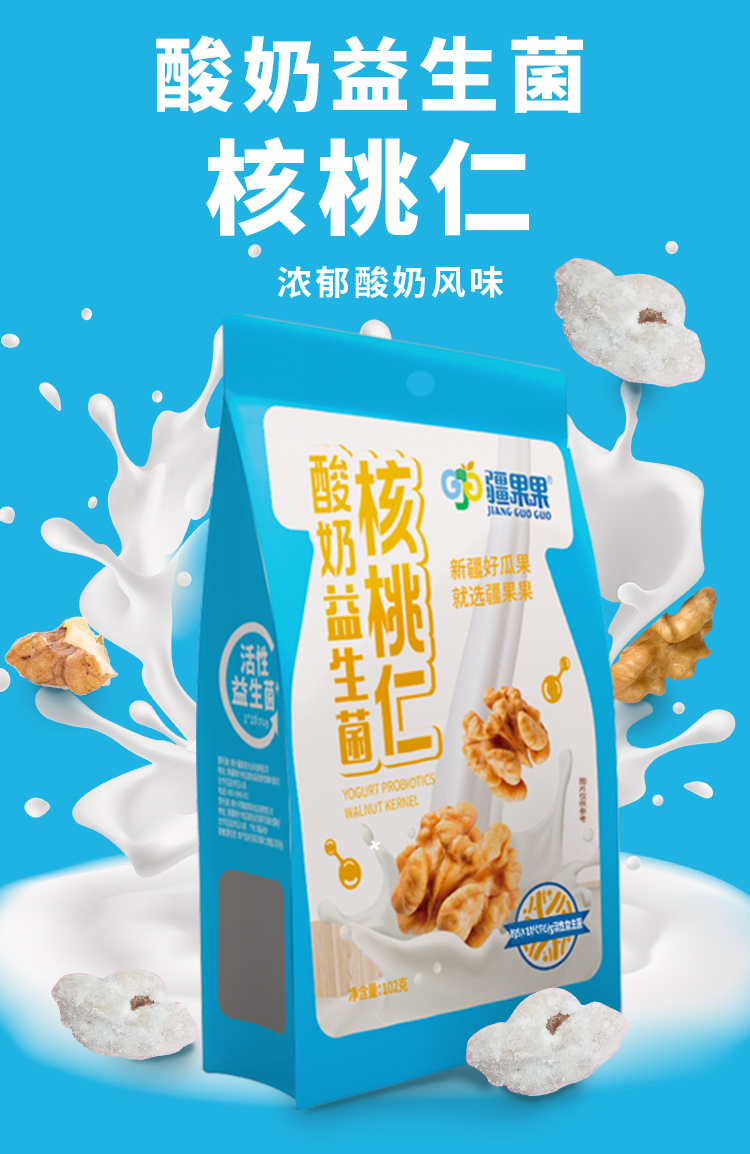酸奶益生菌核桃仁,酸甜口感 精选新疆核桃核心产区原料 102g*2袋装