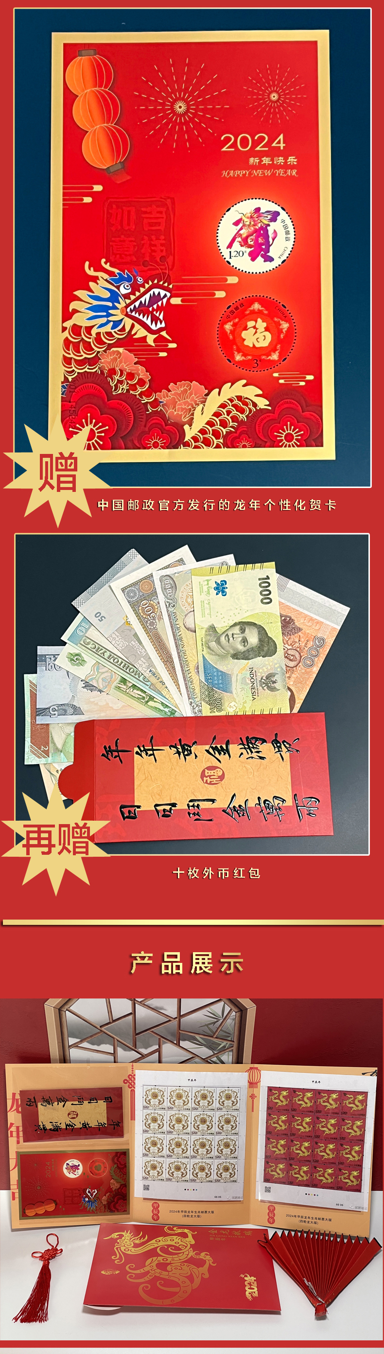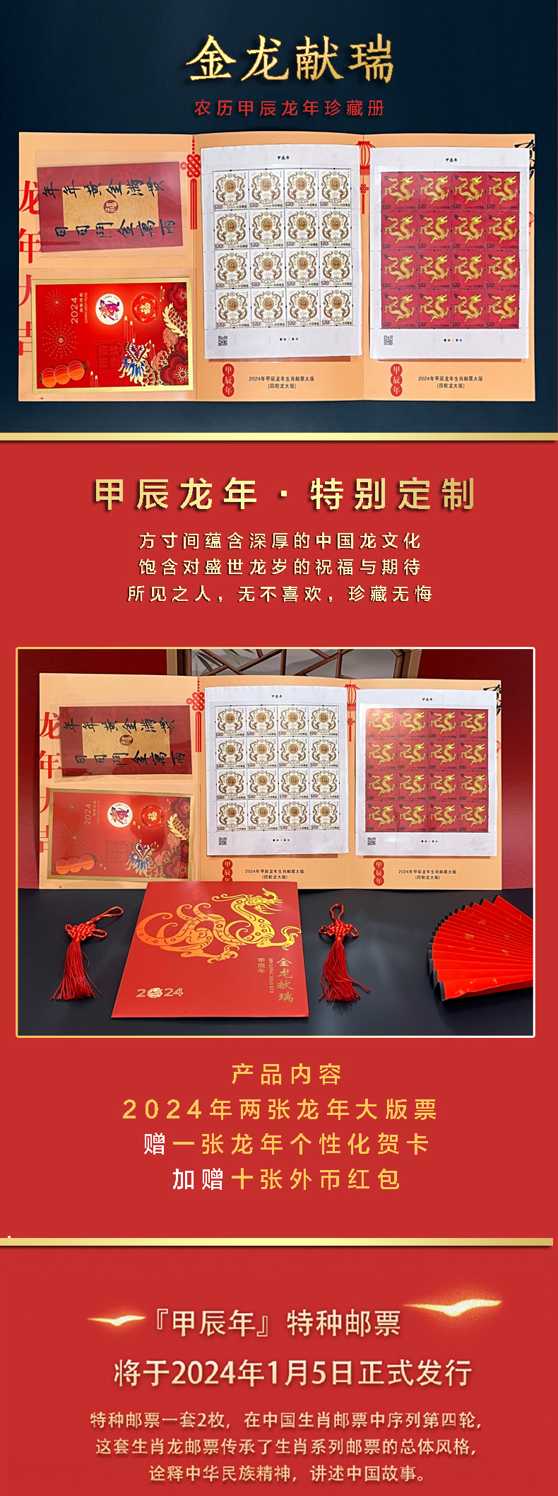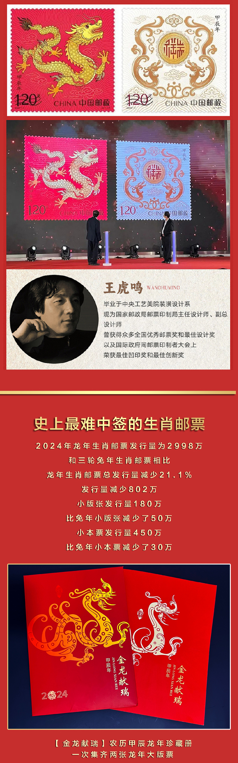 金龙献瑞 龙生肖特种邮票 大版票 2024《甲辰年》由国家邮政局邮票印制局主任和邮票厂雕刻师联手之作