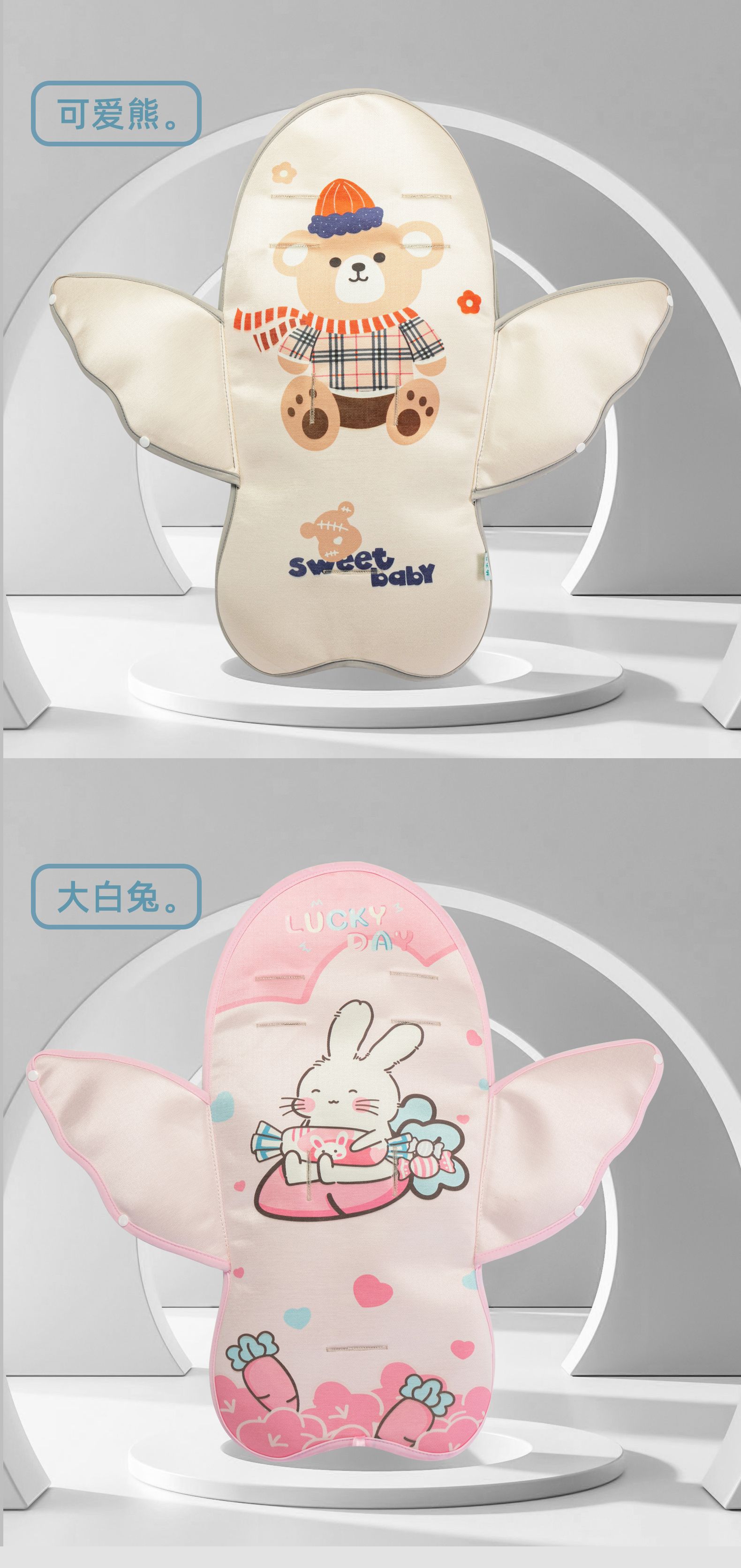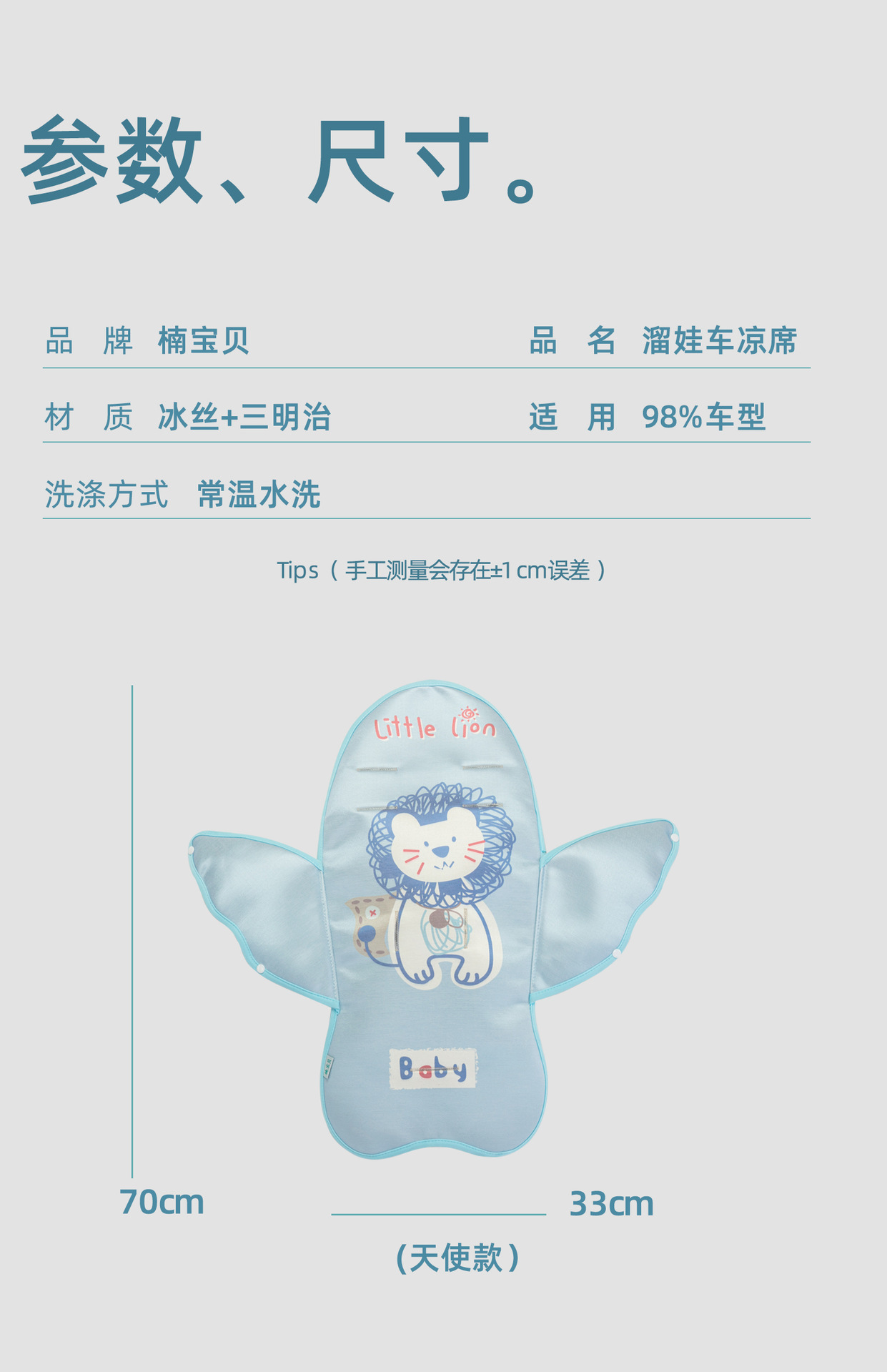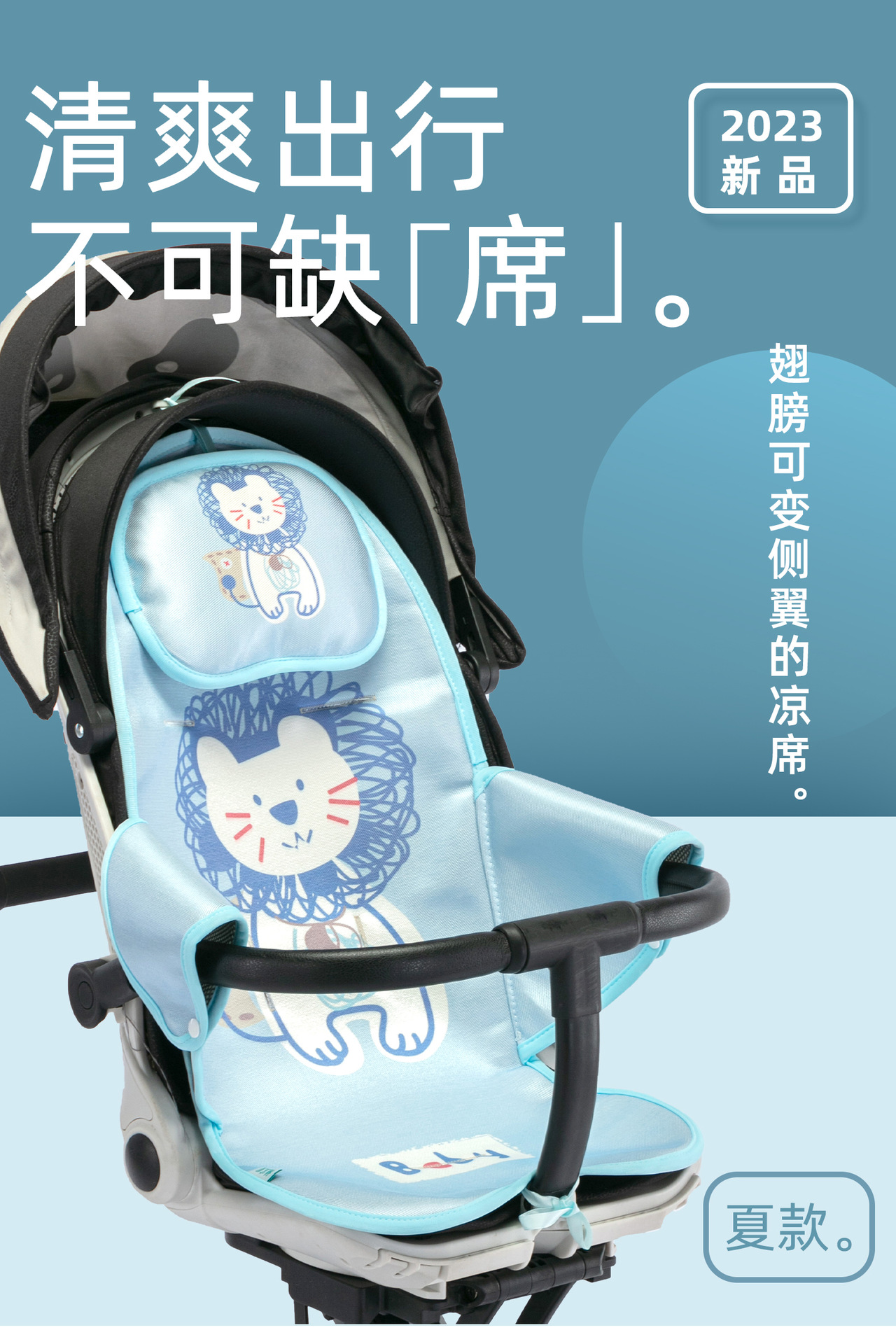 【冰丝凉感!婴儿推车凉席】遛娃车凉席,清爽出行,透气网层,600D冰丝面料,宝宝遛娃,吸汗透气,冰丝坐垫,通用型,翅膀可变侧翼