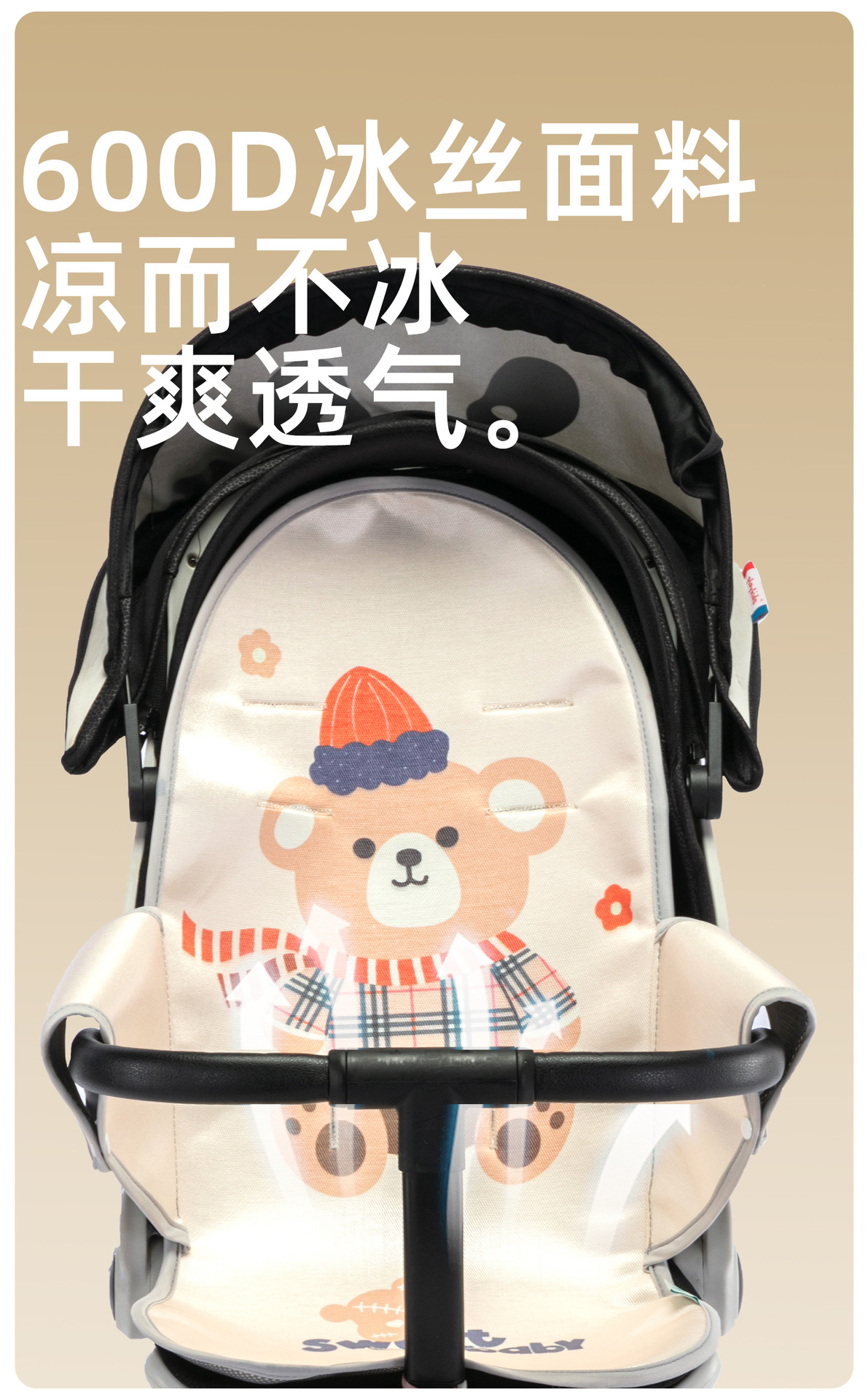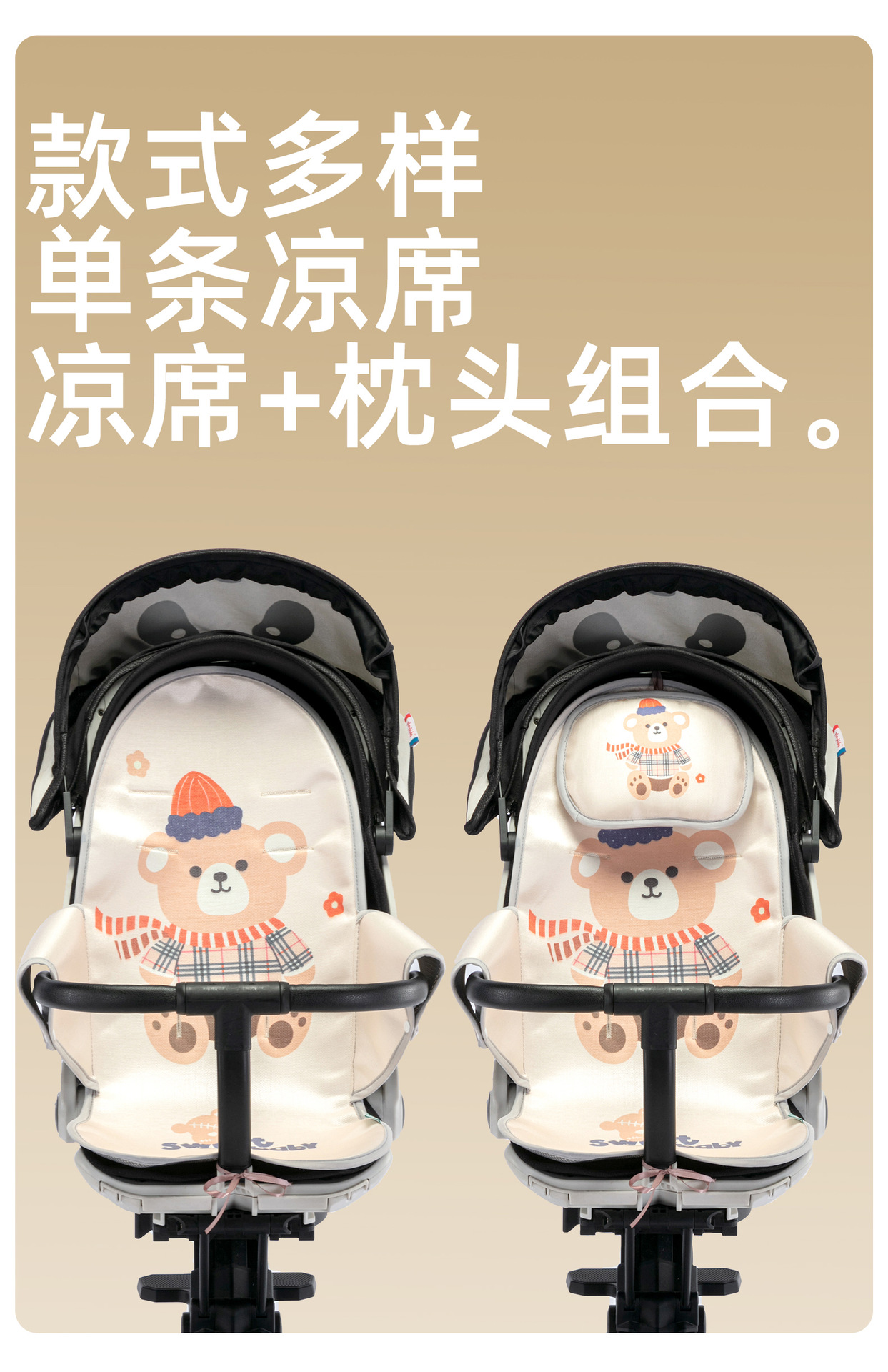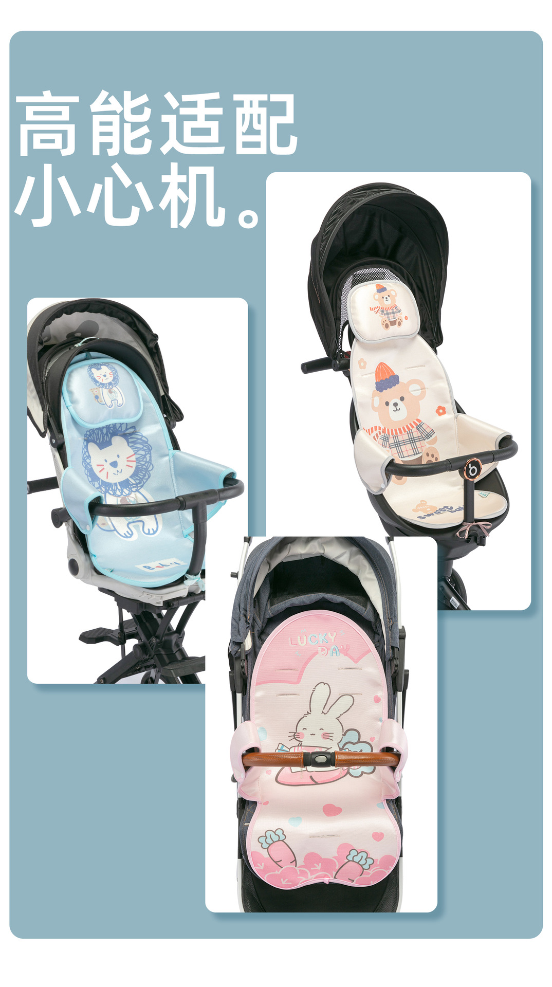 【冰丝凉感!婴儿推车凉席】遛娃车凉席,清爽出行,透气网层,600D冰丝面料,宝宝遛娃,吸汗透气,冰丝坐垫,通用型,翅膀可变侧翼
