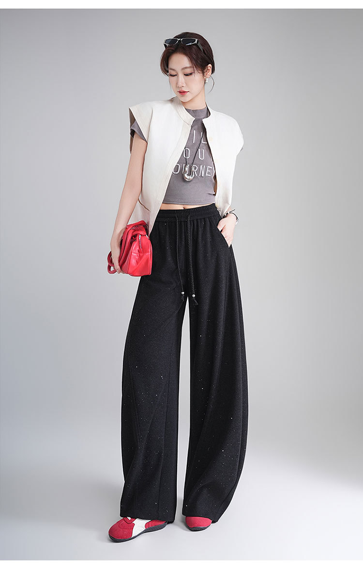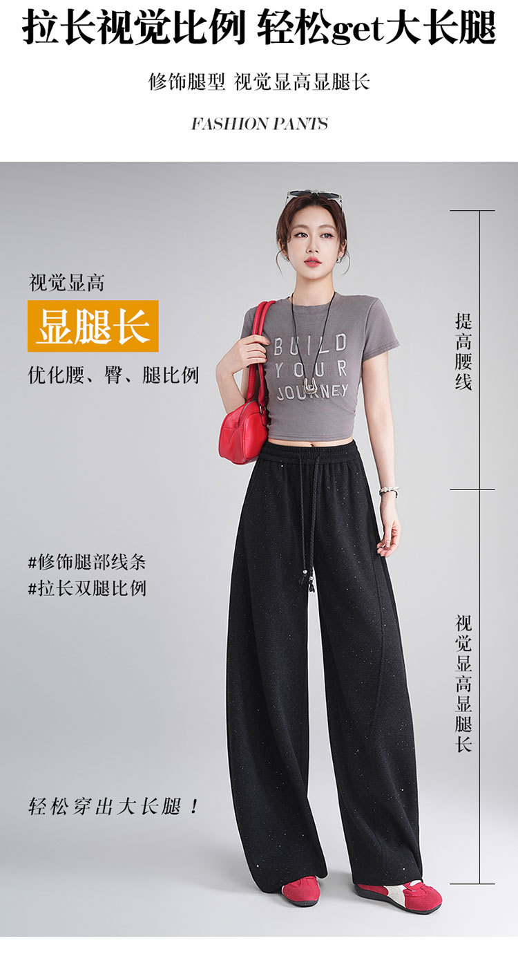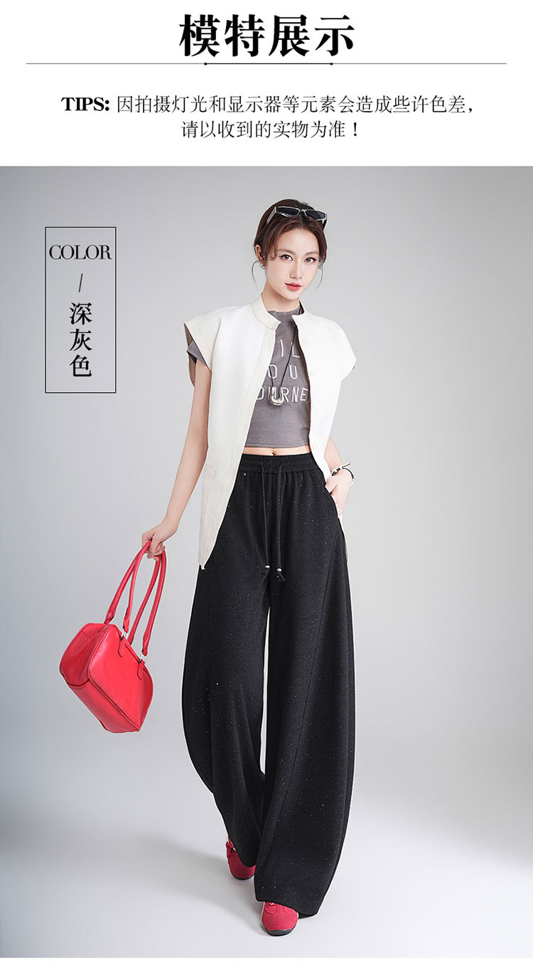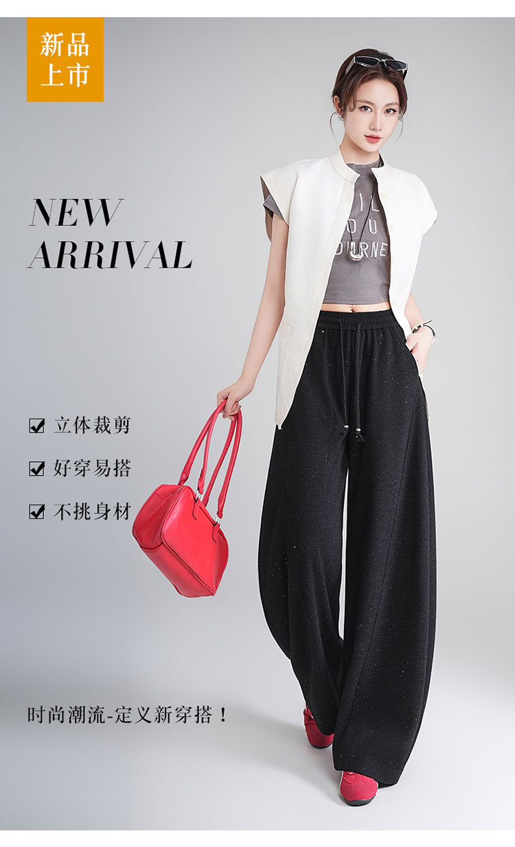 MYX时尚亮片弯刀裤2026年春夏新款松紧腰休闲长裤宽松显瘦时尚阔腿裤