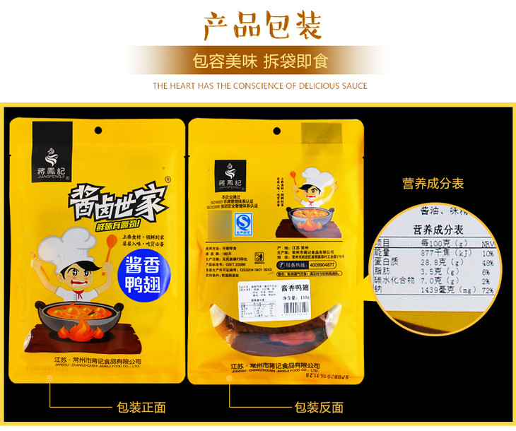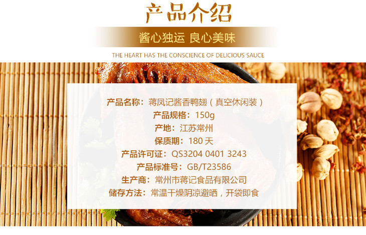 【常州馆】蒋凤记 酱香鸭翅150g 卤味熟食特产鸭翅膀零食特色小吃开袋即食 休闲真空装