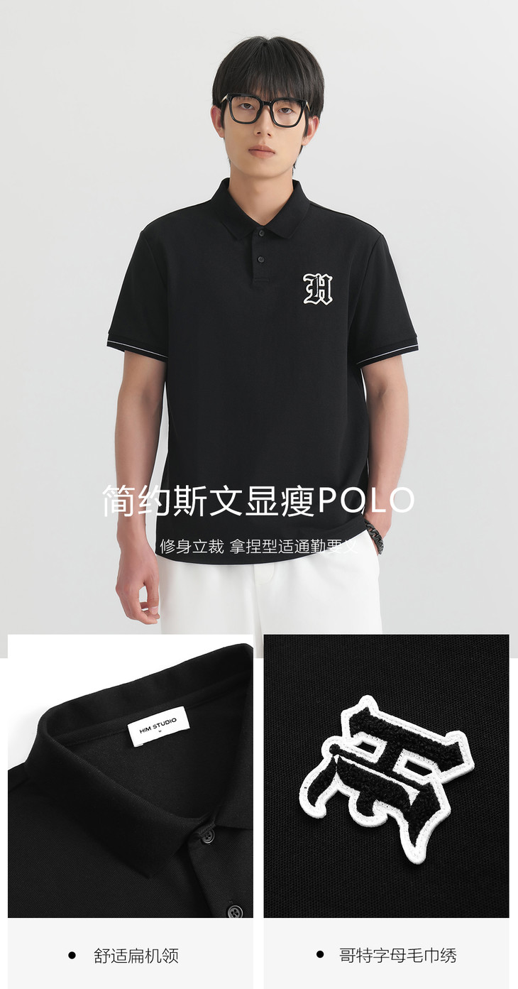 HIM漢崇 珠地棉polo衫休闲斯文修身透气舒适短袖反领T恤 2026夏季