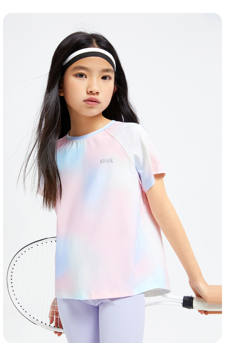 女童防晒系列速干圆领短袖T恤夏季新款安奈儿童装EG421121
