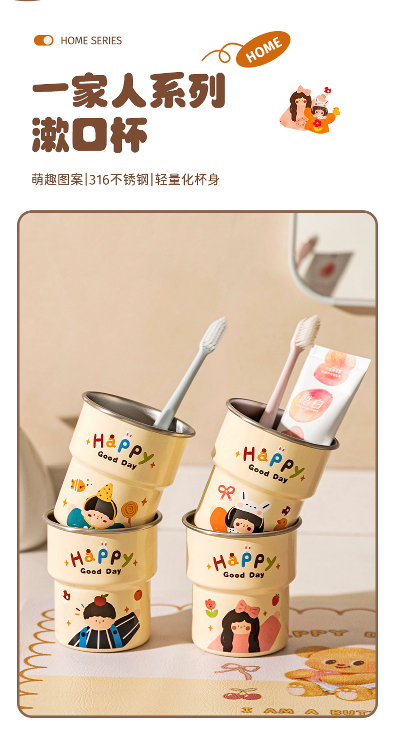 摩登主妇一家四口316不锈钢漱口杯刷牙杯洗漱杯儿童牙缸牙具杯子