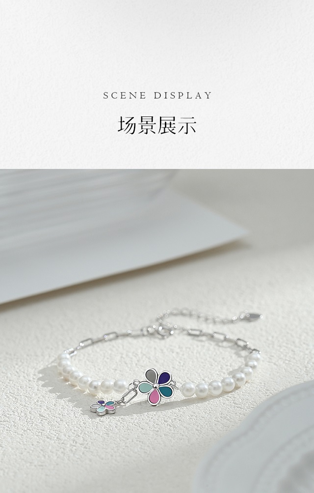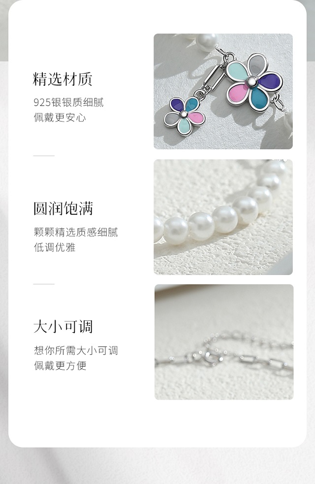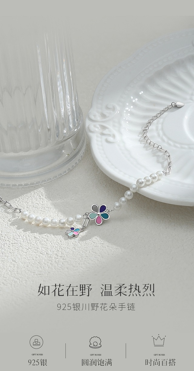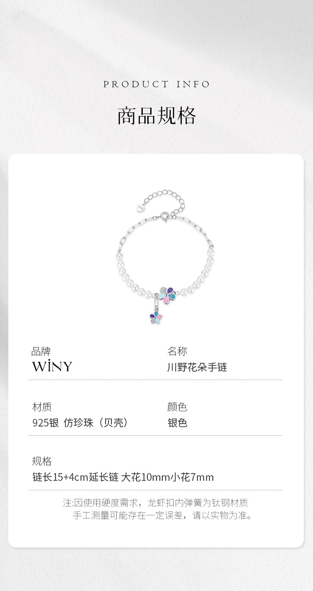 Winy925纯银川野花朵手链送女友闺蜜节日生日礼物