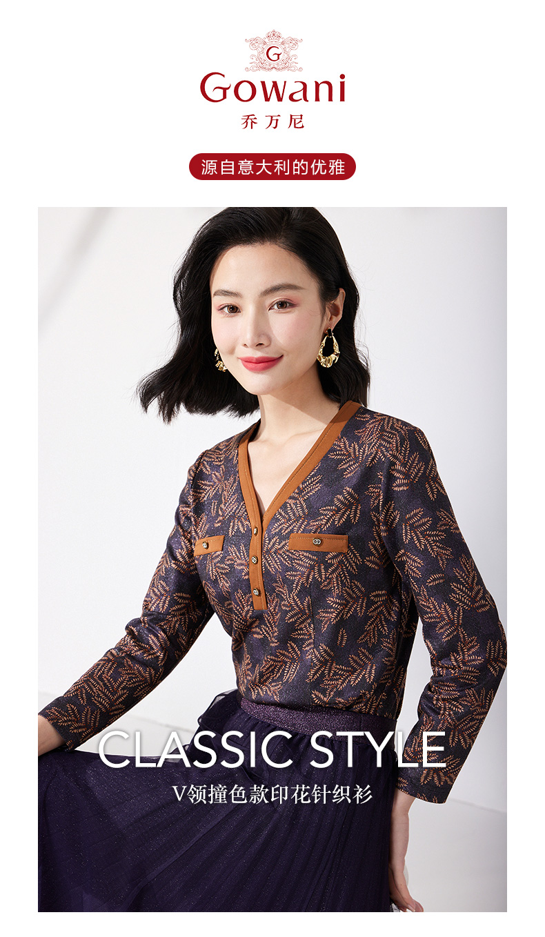 乔万尼新款薄款针织衫v领长袖上衣ET1C511