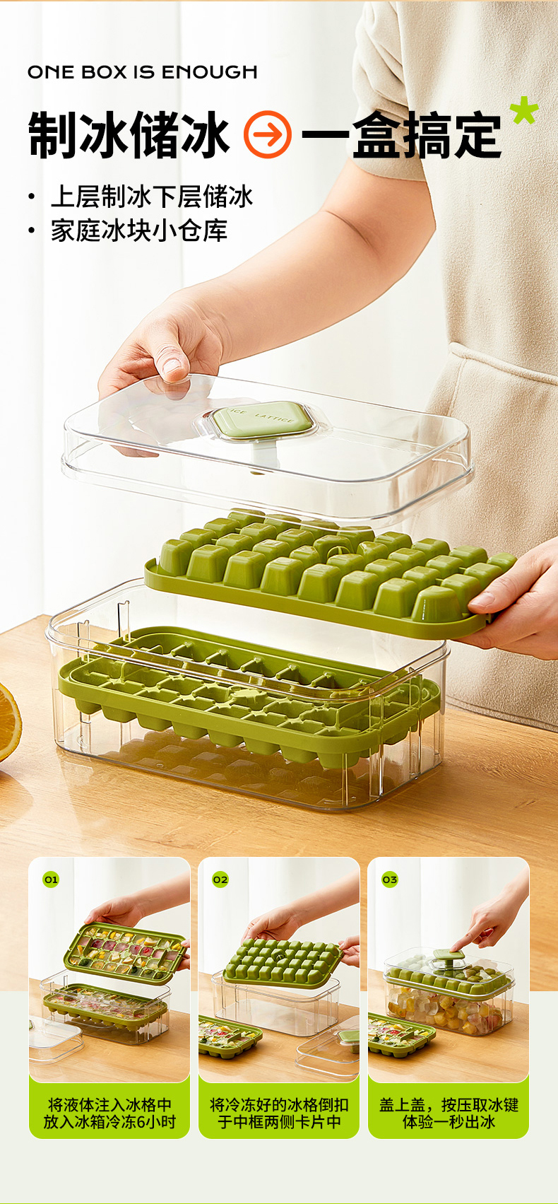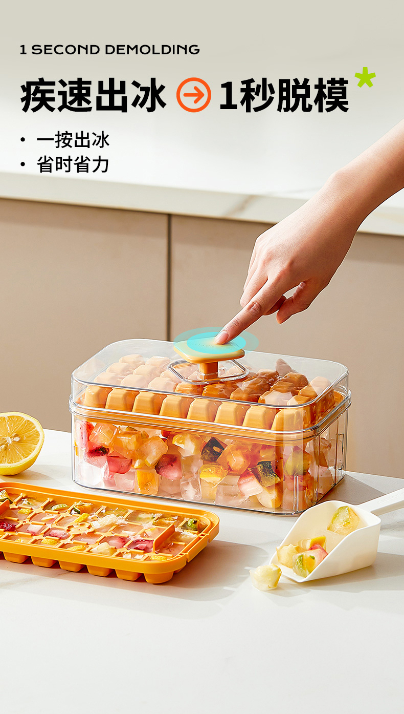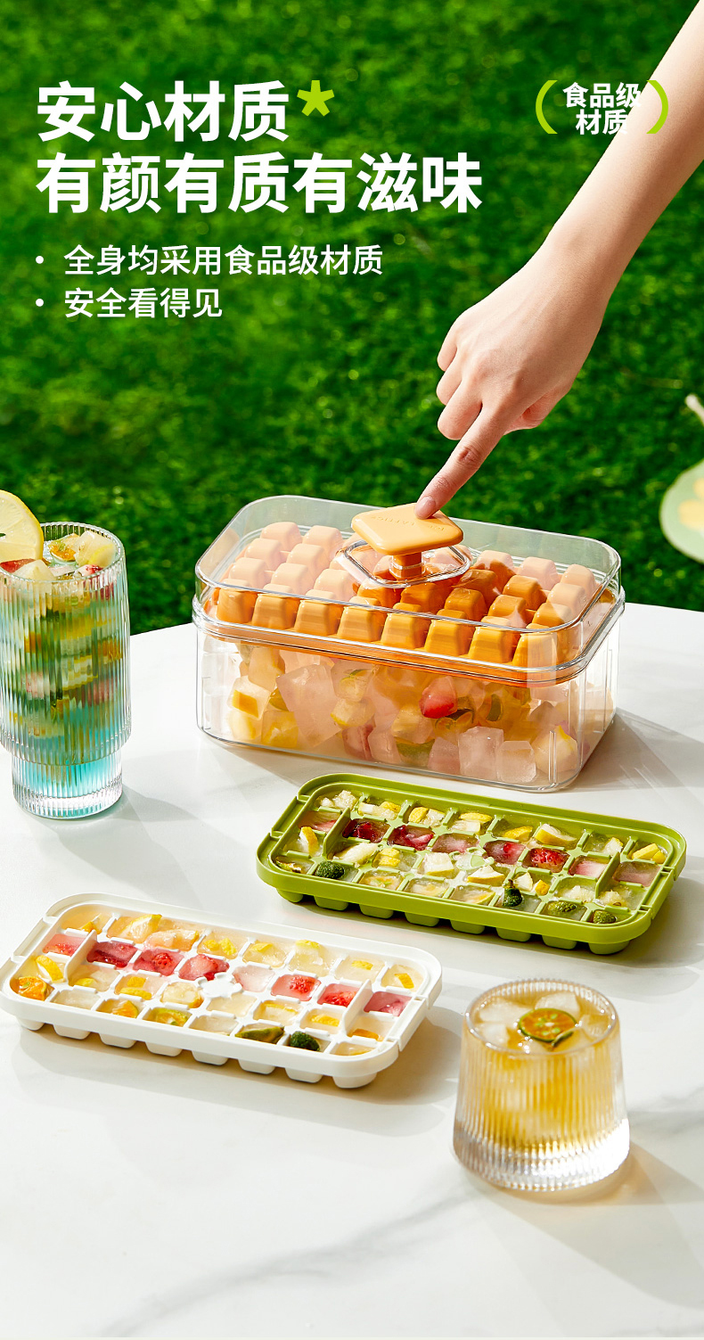 摩登主妇冰块模具按压冰格带盖储存盒家用冰箱自制食品级制冰神器