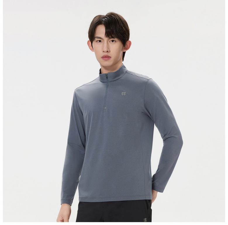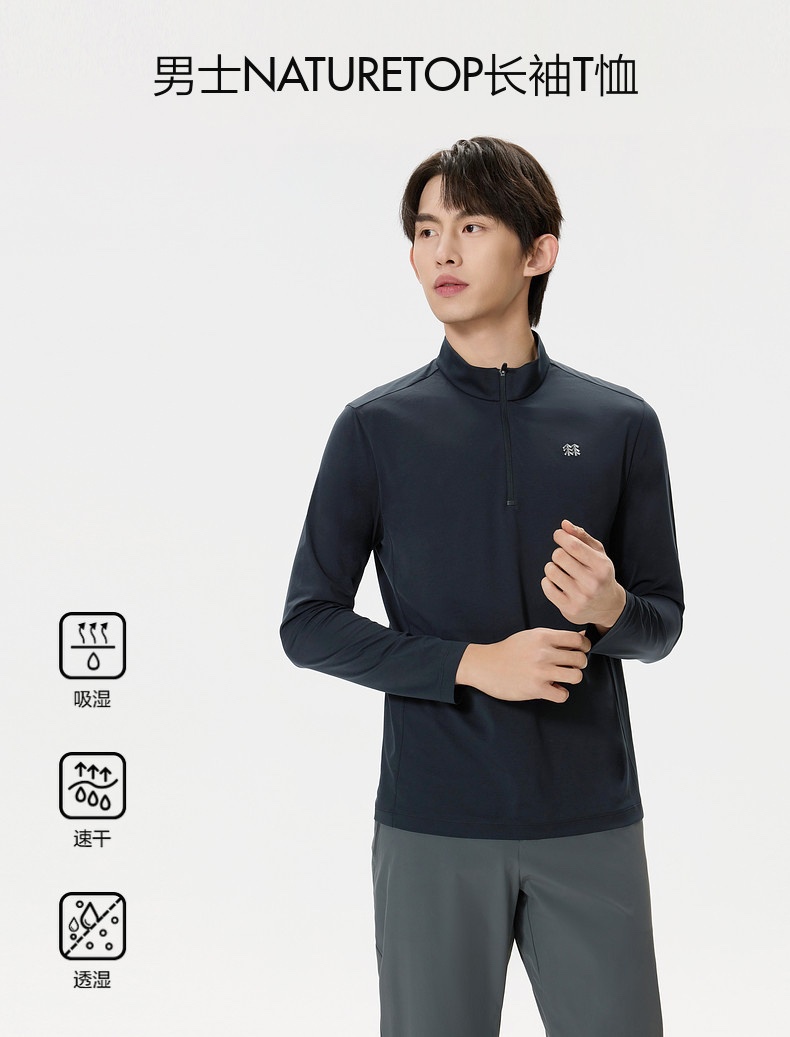 穿在身上透气排汗,同时具备春夏户外运动时,穿着的半拉链上衣,出汗量大时同样可以提供舒适的穿着体验,