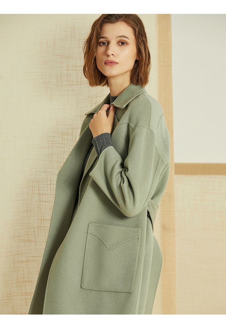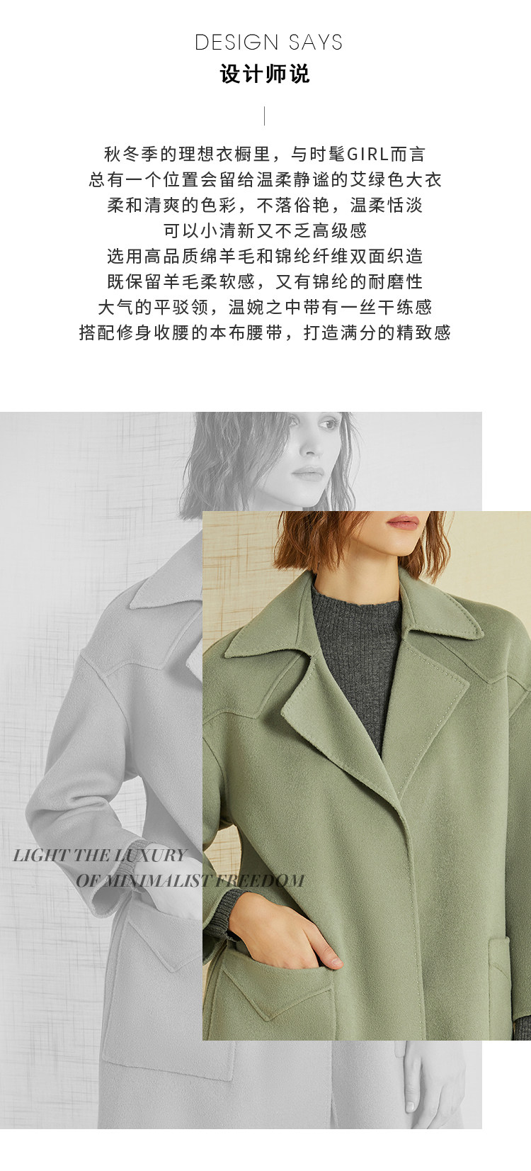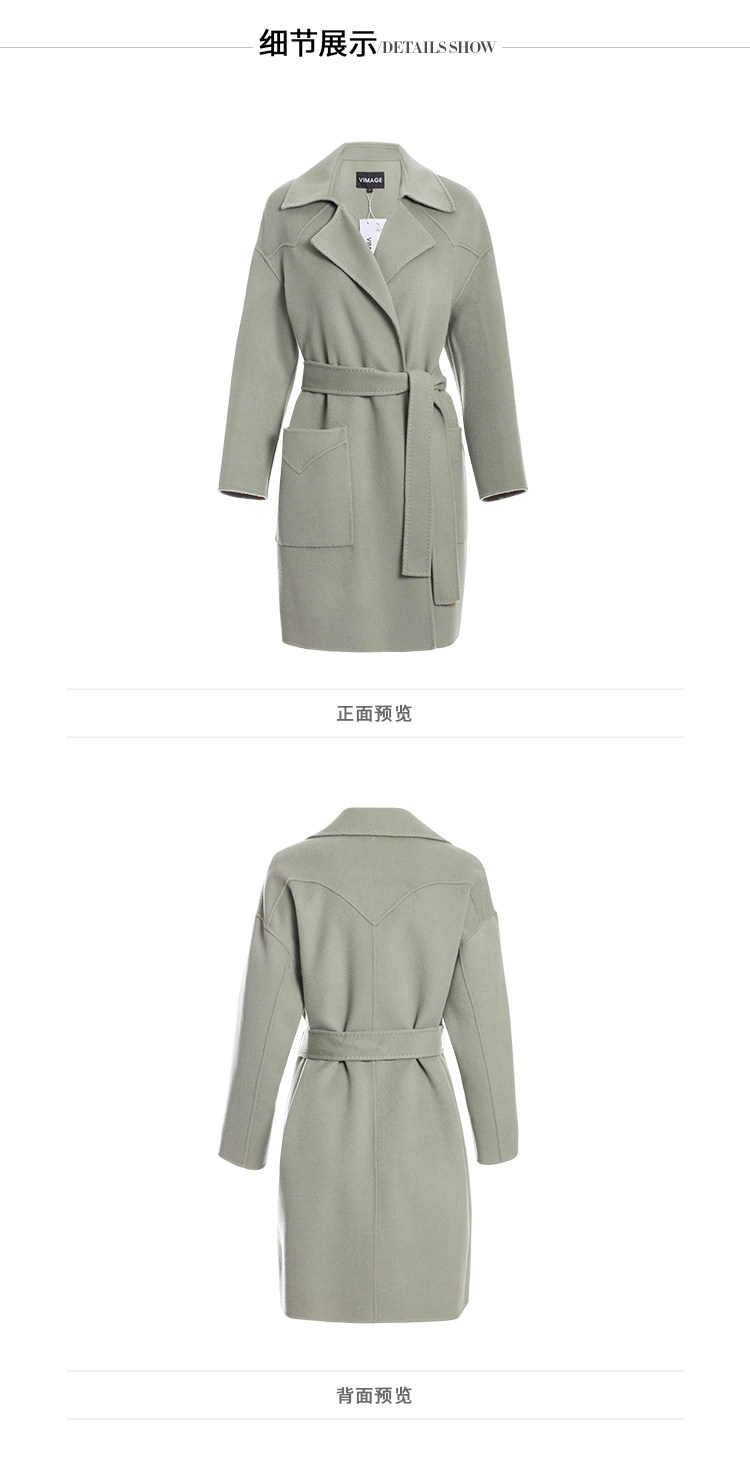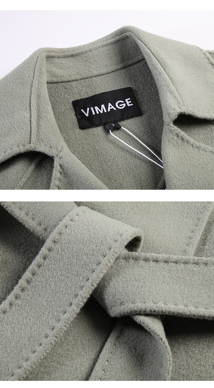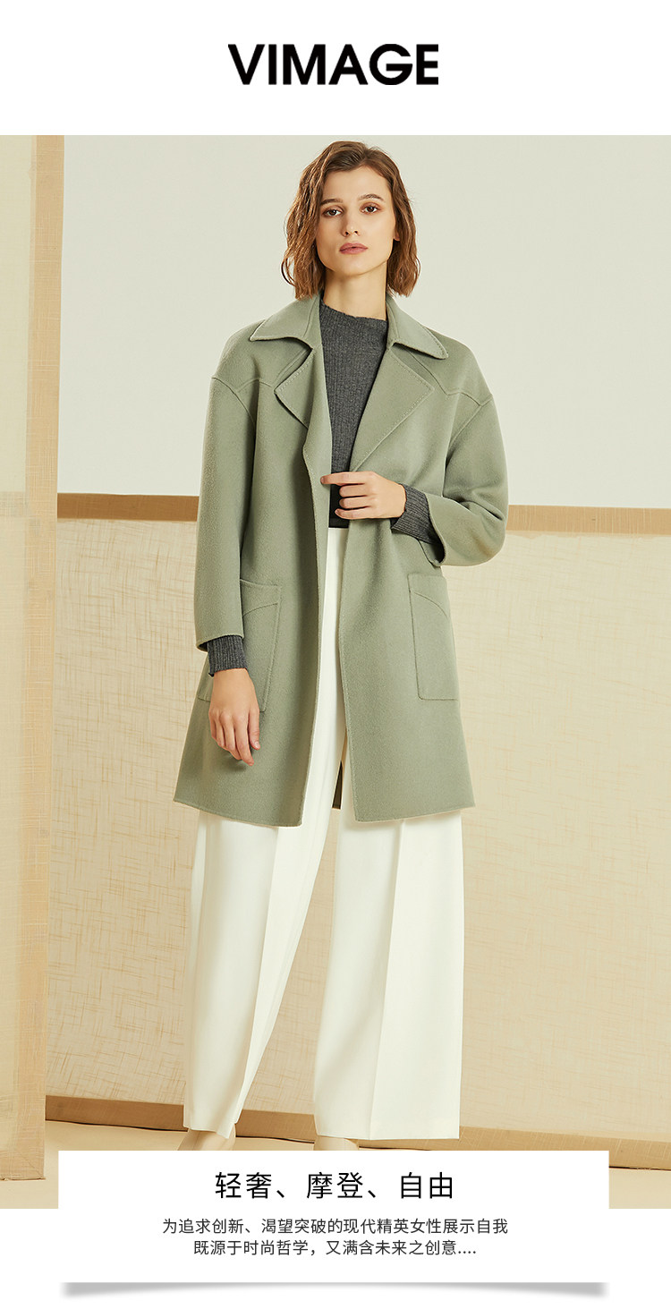 VIMAGE纬漫纪春季新款简约收腰百搭廓形羊毛呢大衣女中长款V1314904