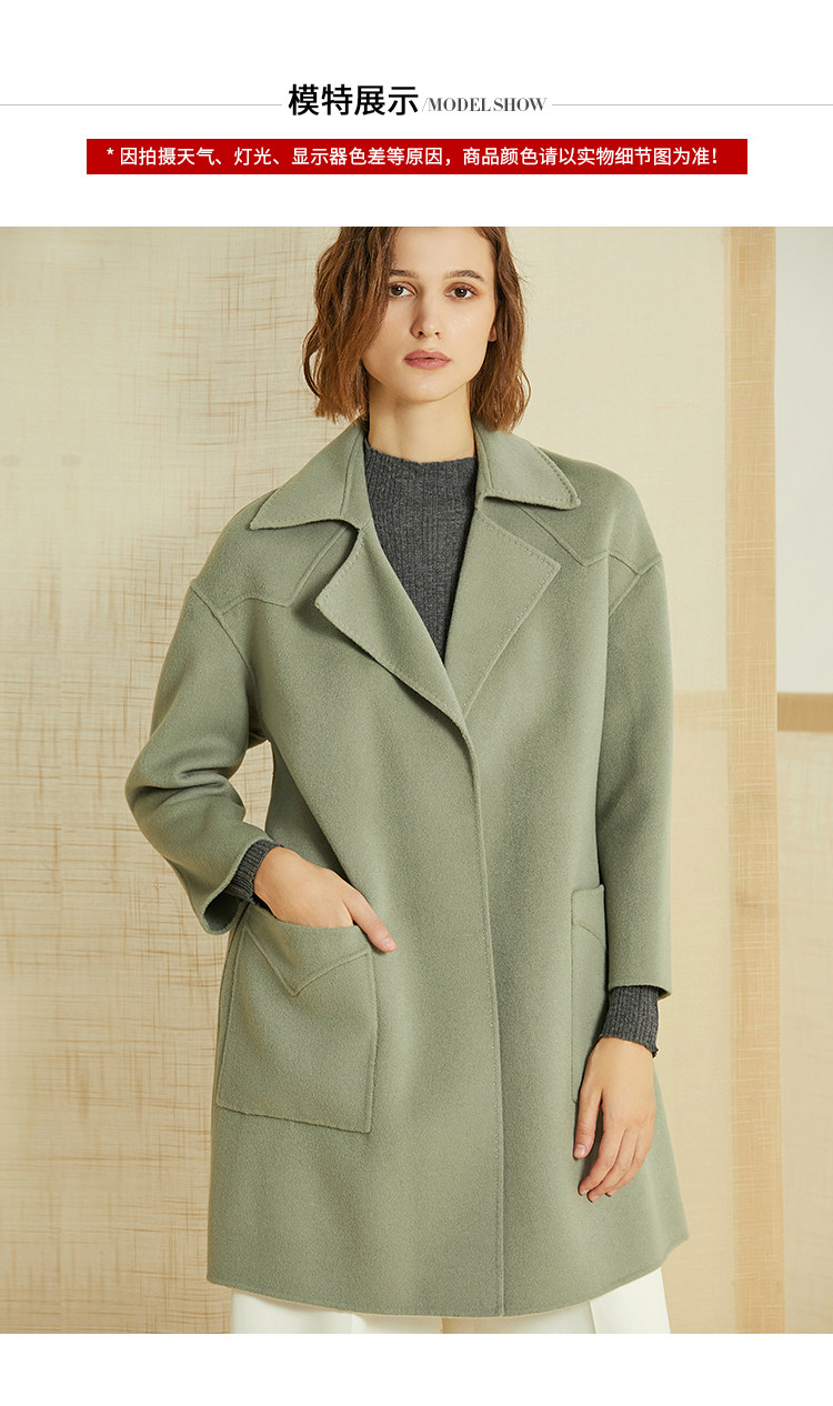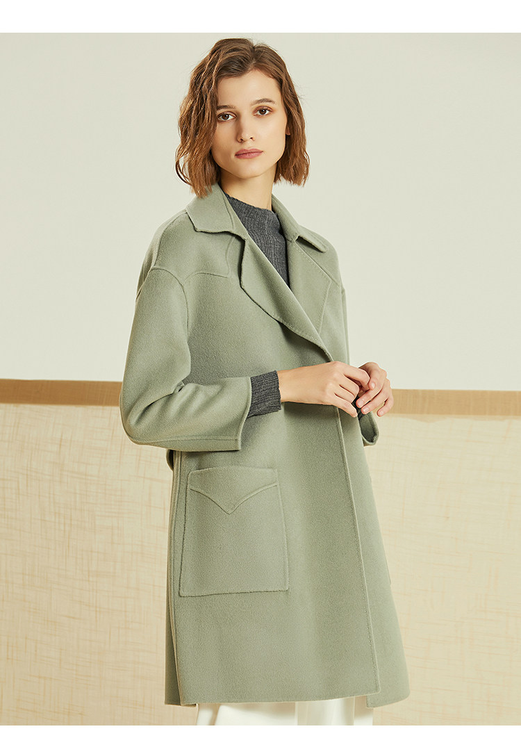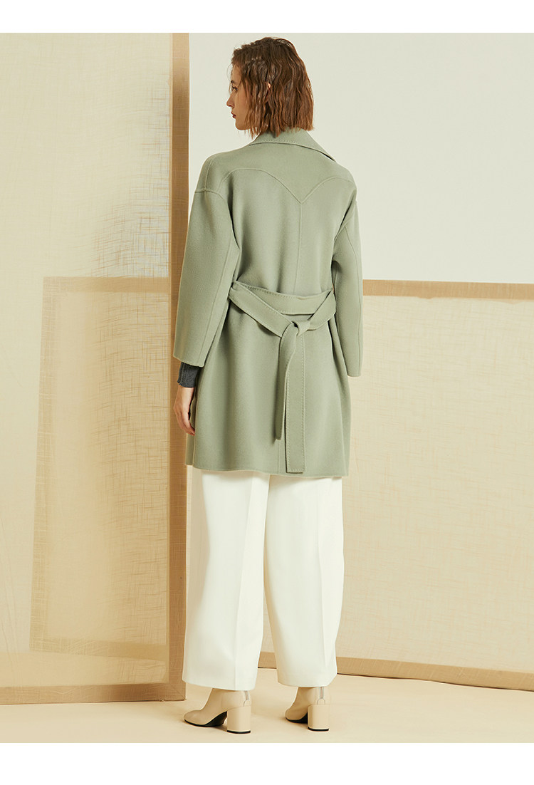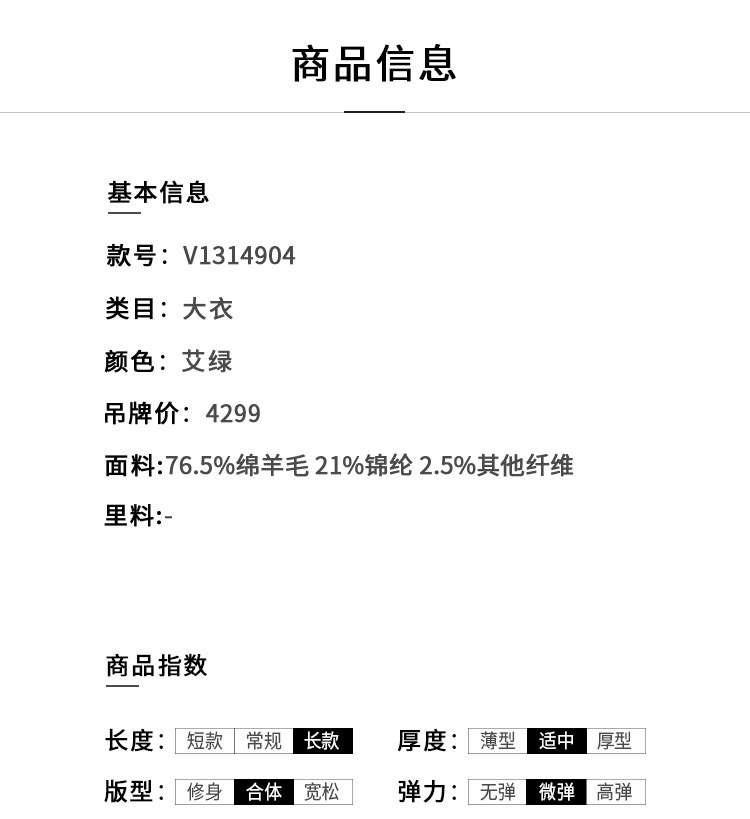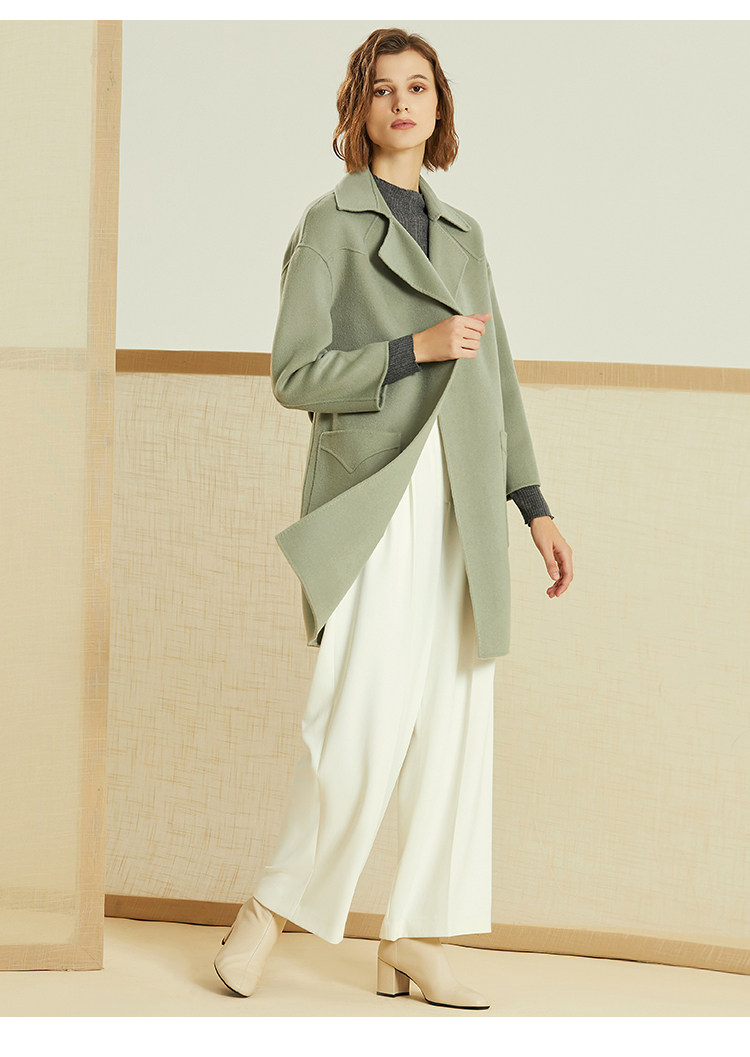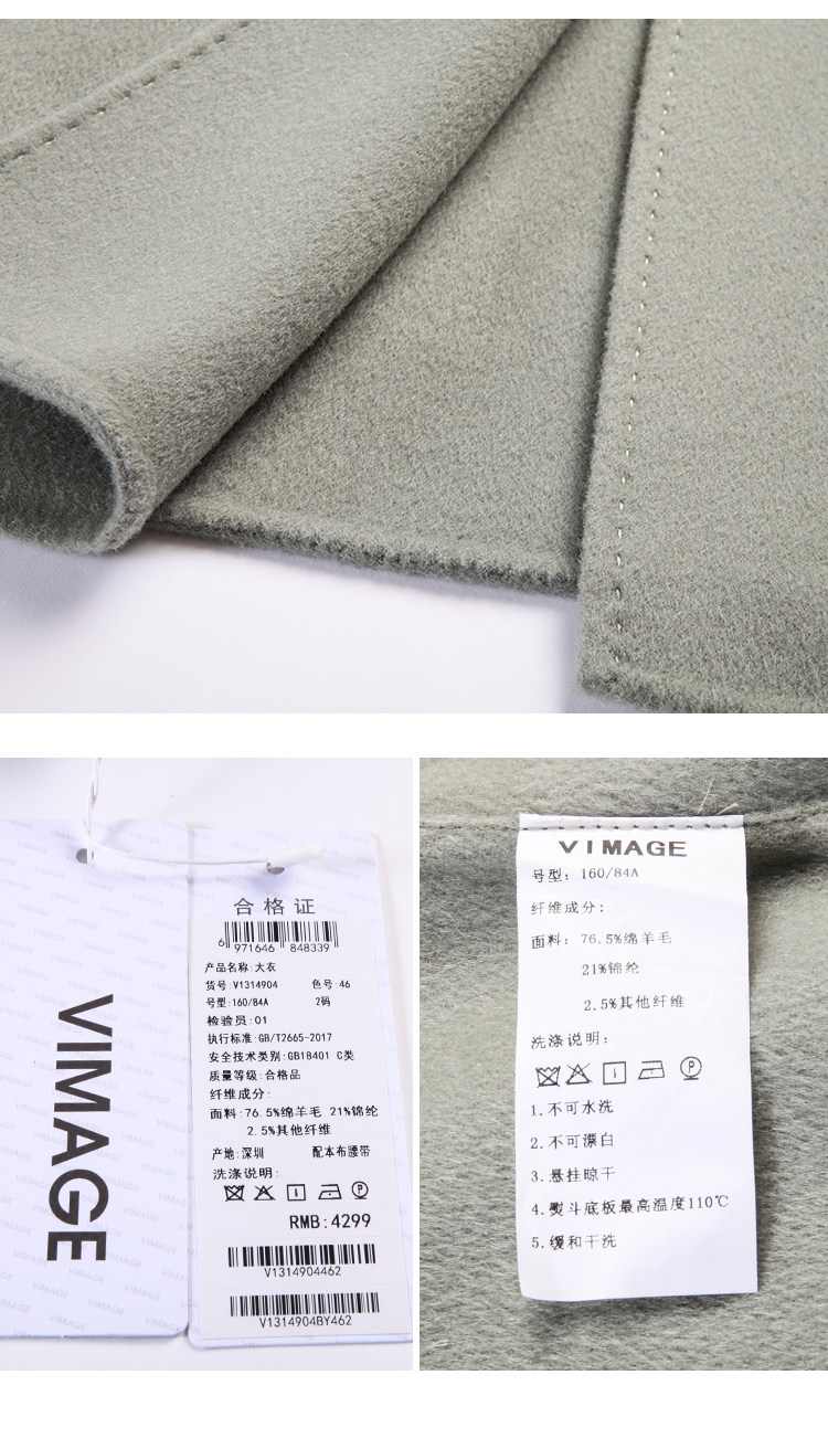 VIMAGE纬漫纪春季新款简约收腰百搭廓形羊毛呢大衣女中长款V1314904