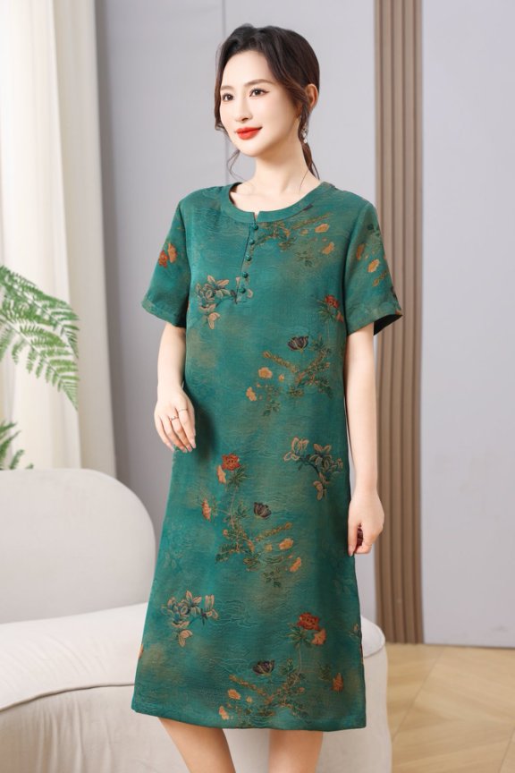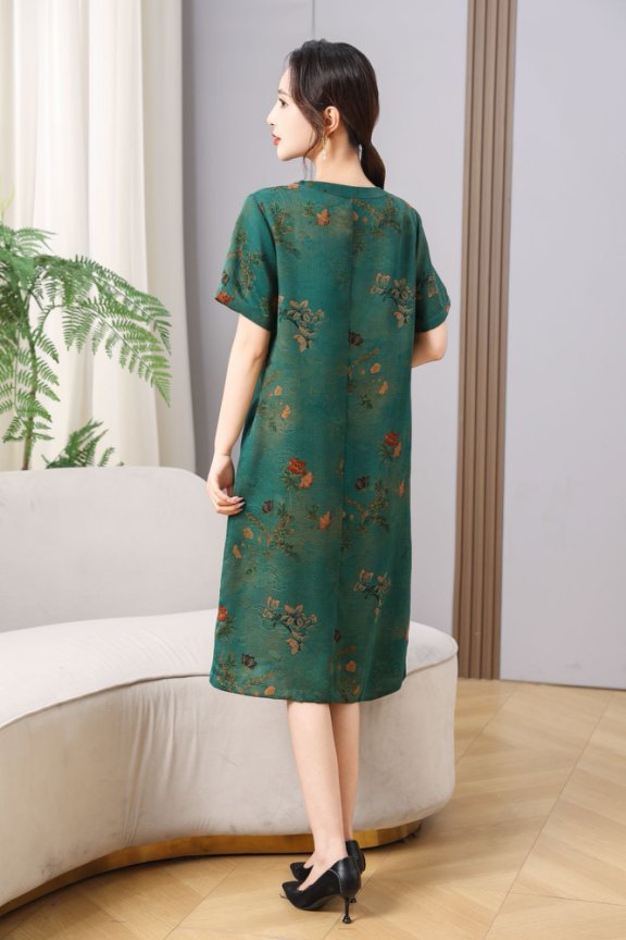 丁摩真丝香云纱花萝气质连衣裙女新款高贵中长款100%桑蚕丝裙AL5625