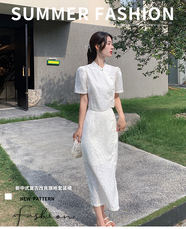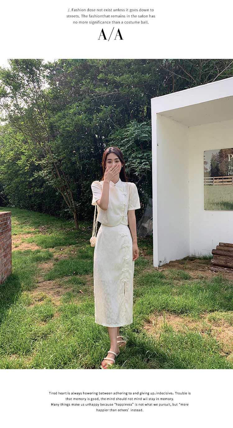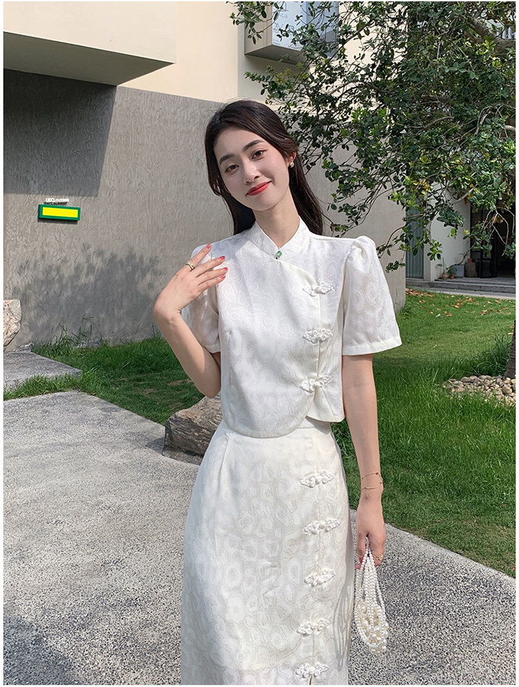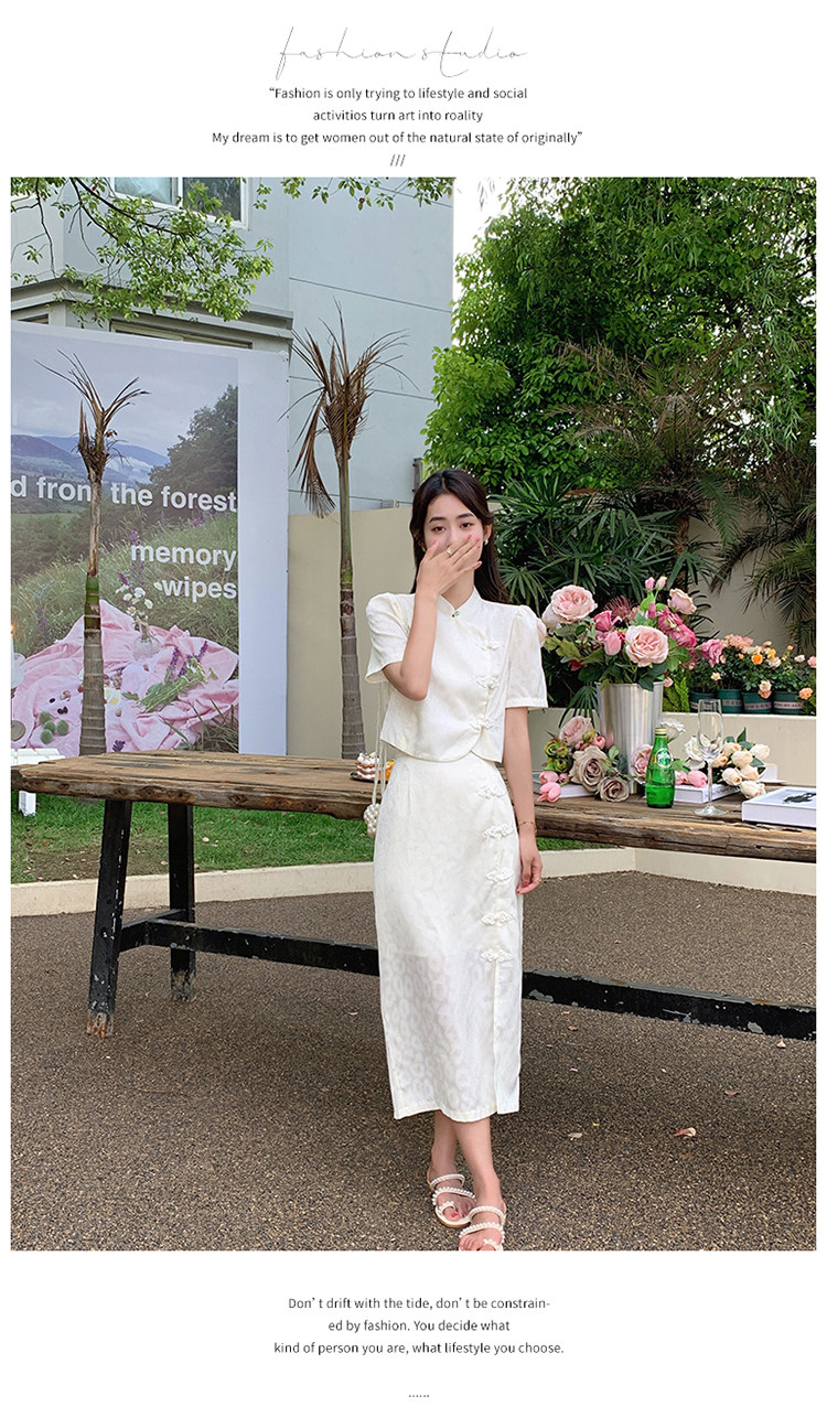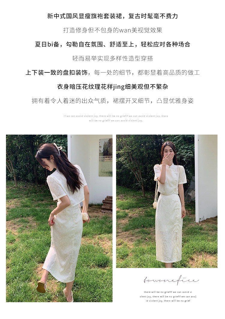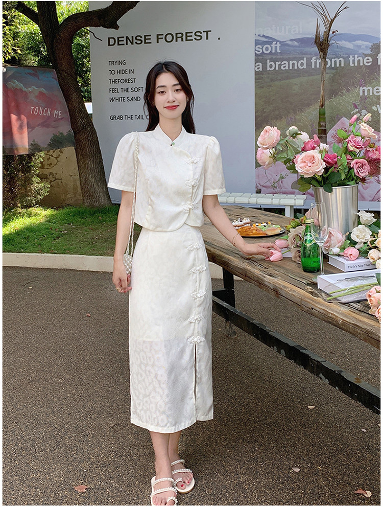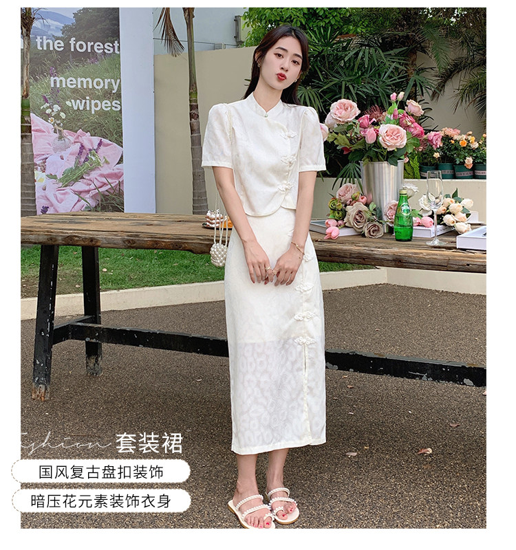 【超值推荐】(套装)瑟俪S51A新中式盘扣上衣➕半裙两件套-喜出