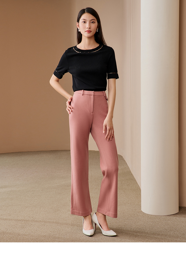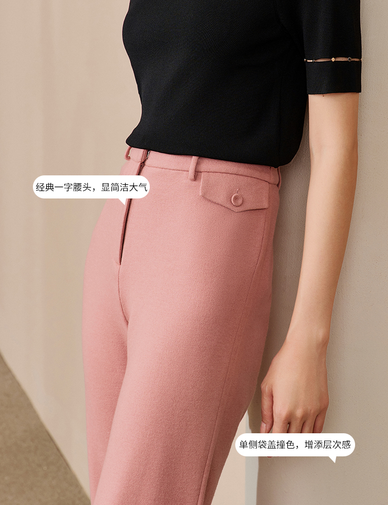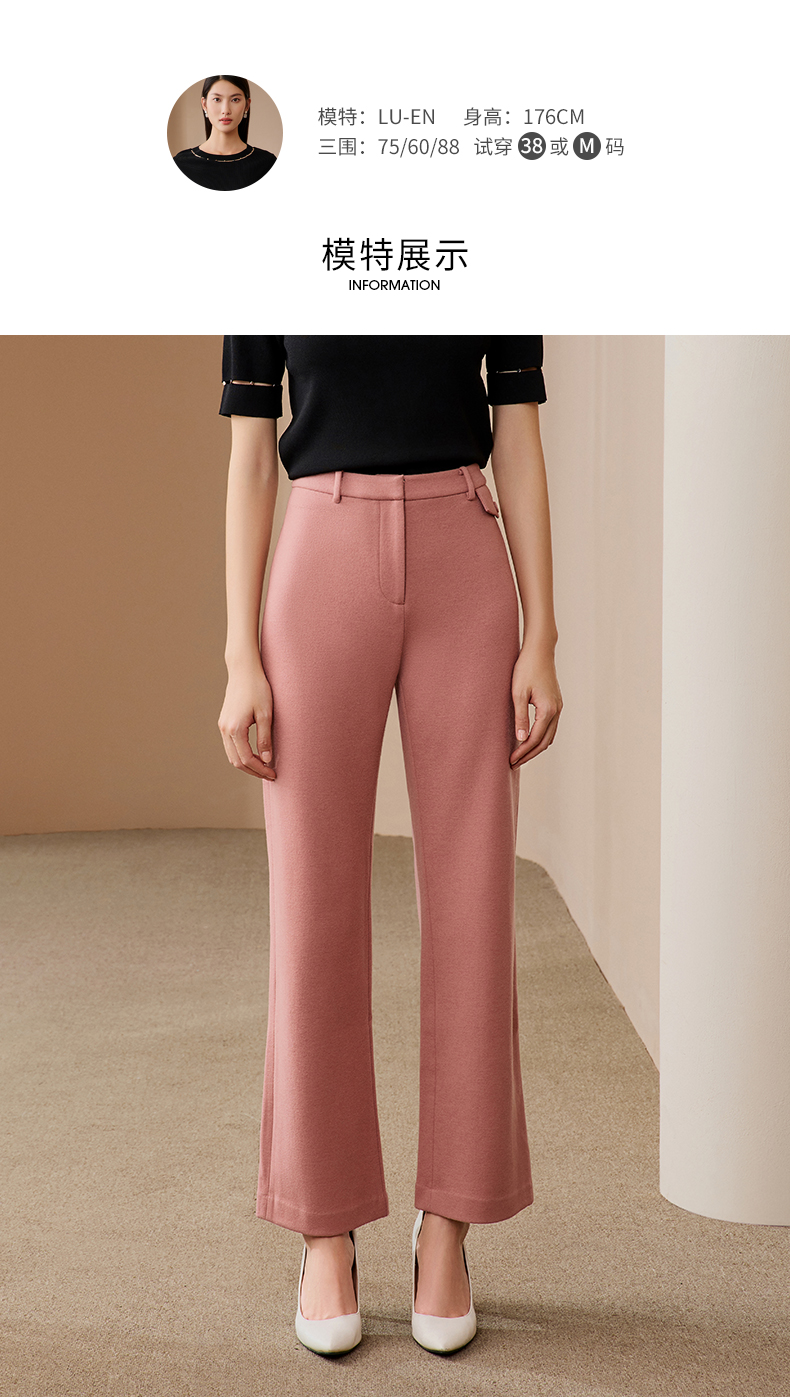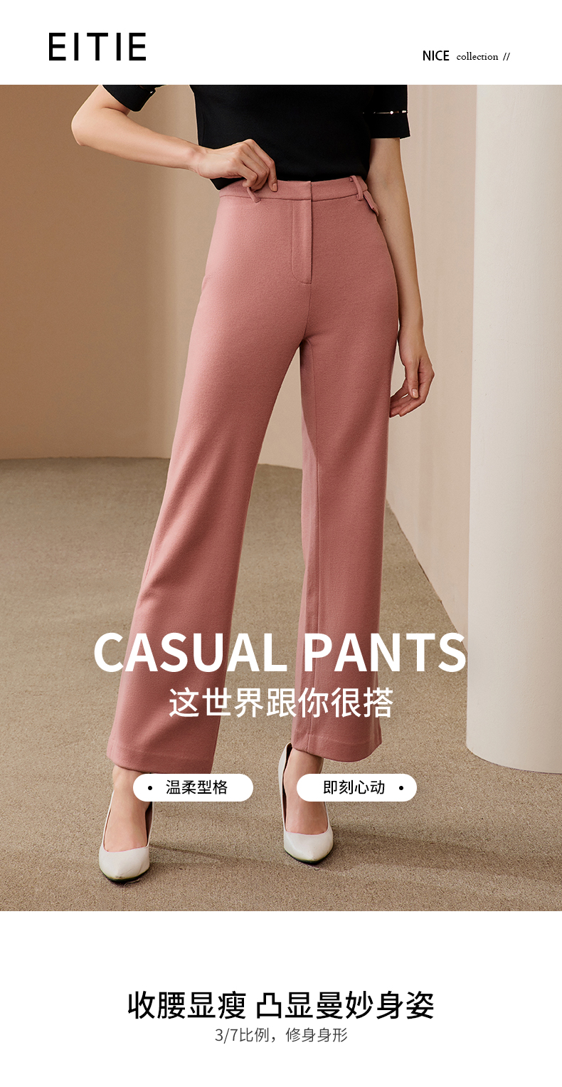 EITIE爱特爱春季新款高腰微喇显瘦OL通勤百搭干练纯色休闲裤A2305113