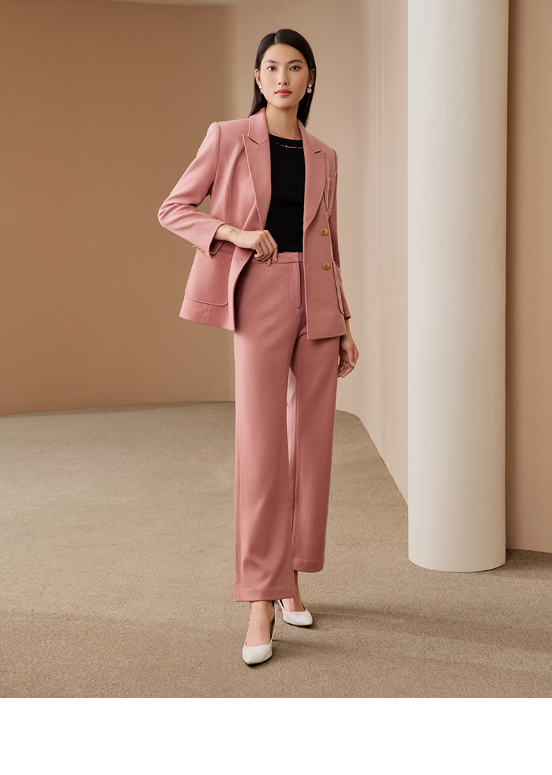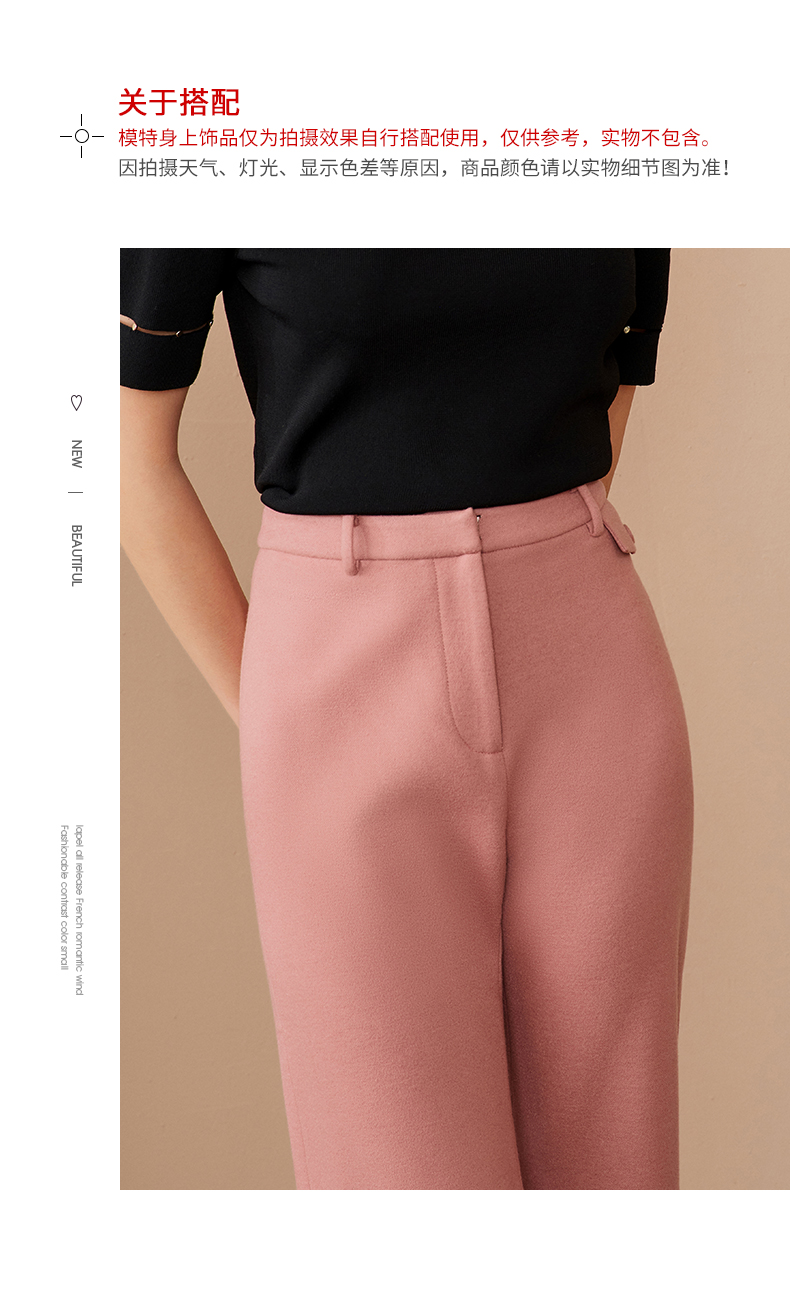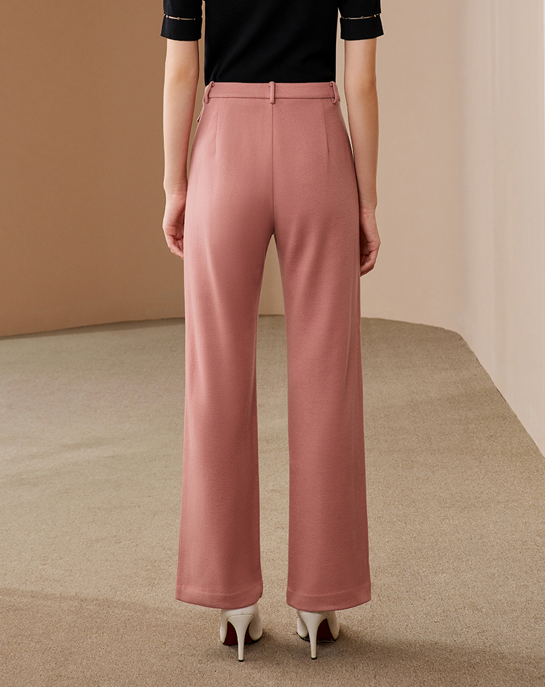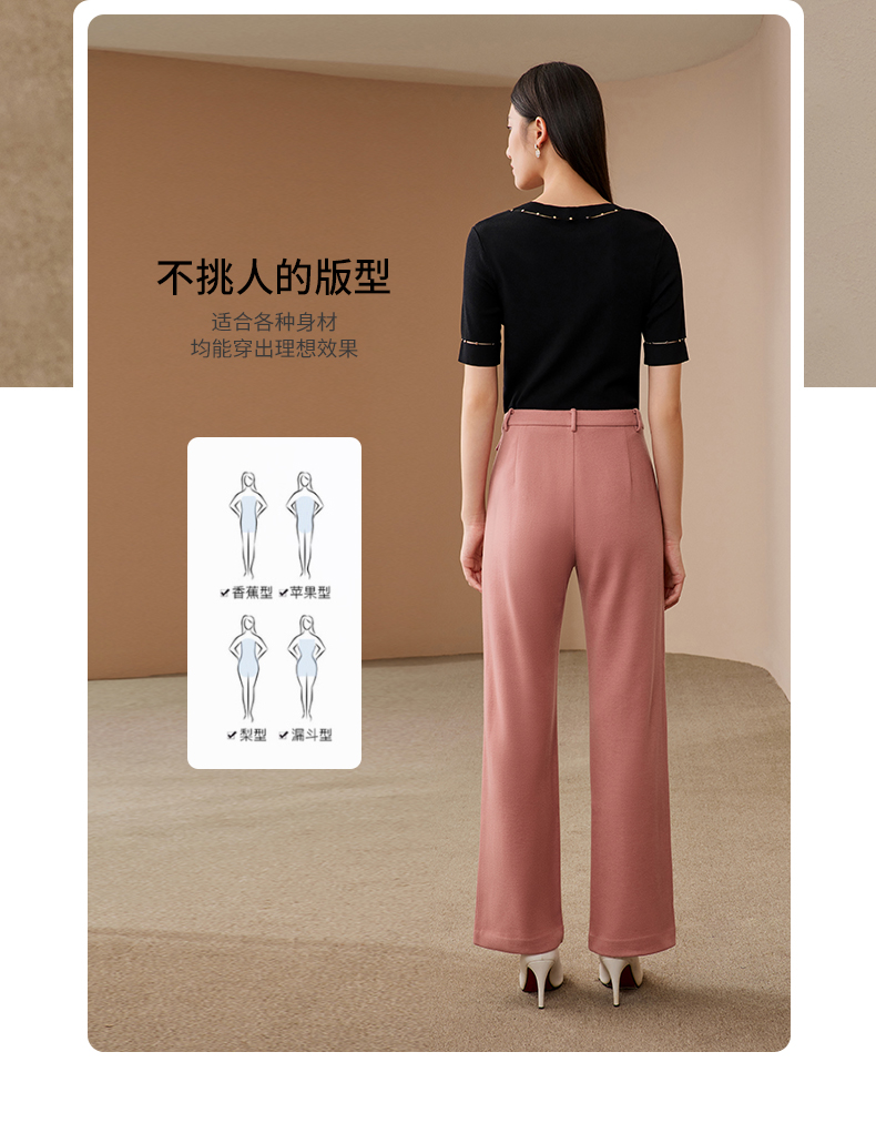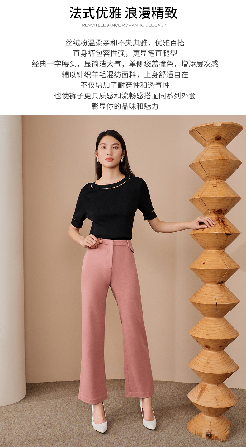 EITIE爱特爱春季新款高腰微喇显瘦OL通勤百搭干练纯色休闲裤A2305113
