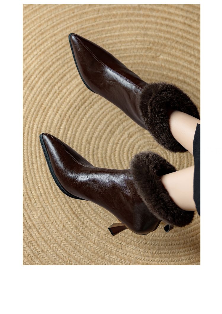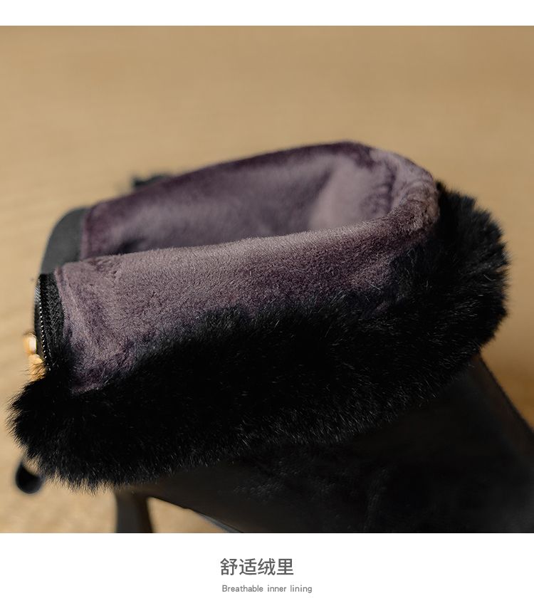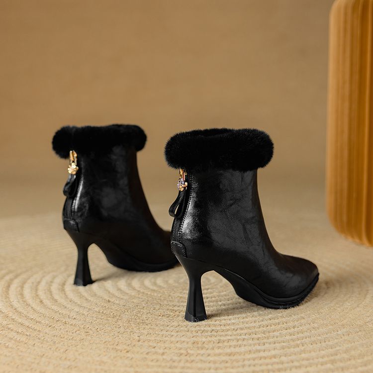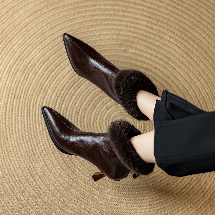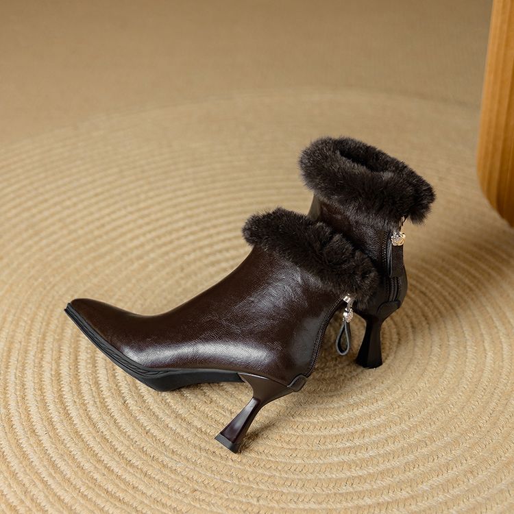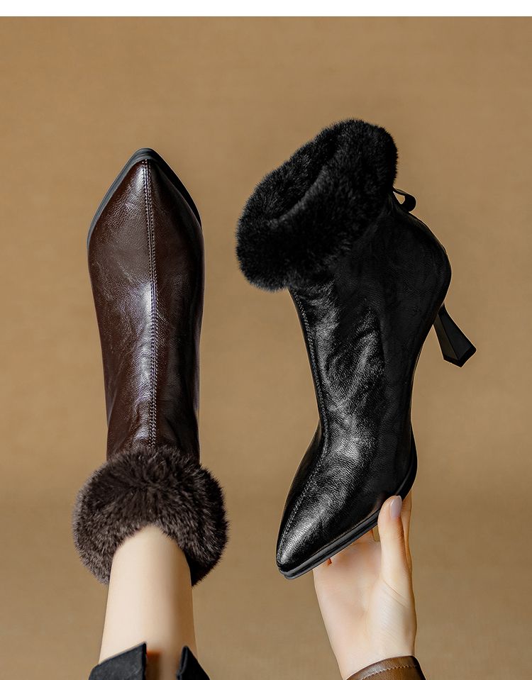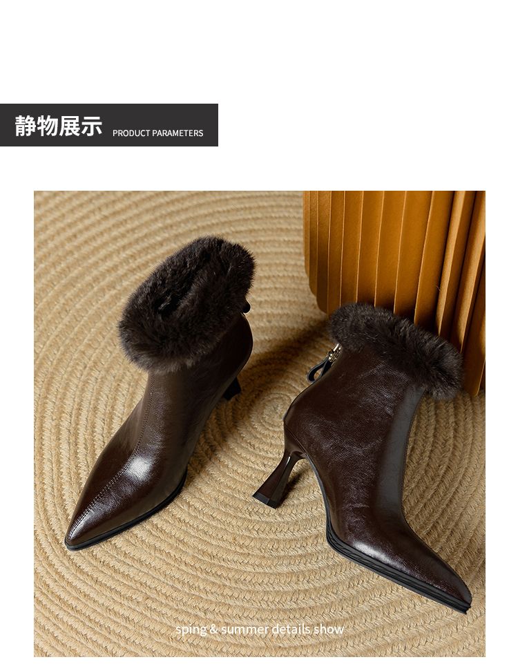 【预售5天】真皮尖头细跟小短靴女秋冬新款高跟软底毛毛牛皮加绒马丁靴DB&M6118