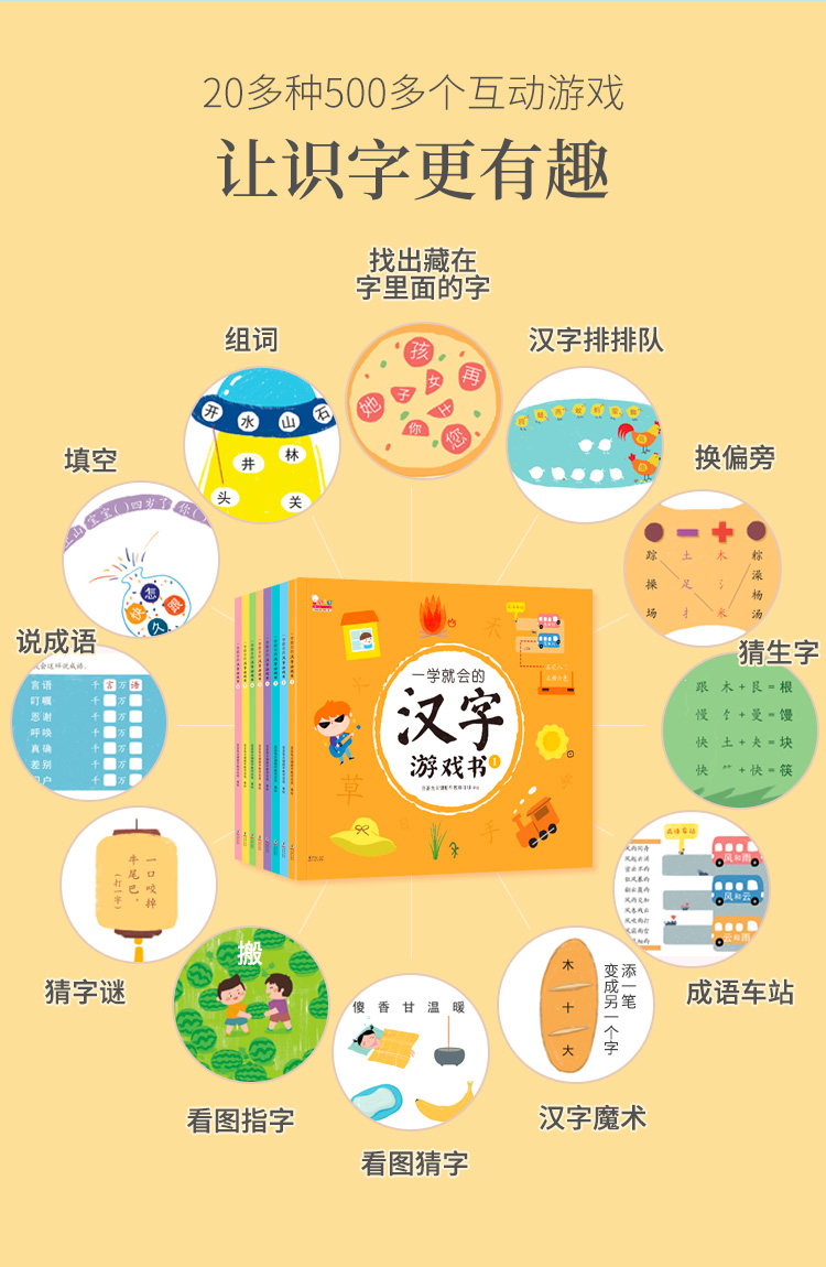 一学就会的汉字游戏书(玩游戏,轻松掌握一年级全部生字。全8册)幼小衔接识字必备 适3-8岁