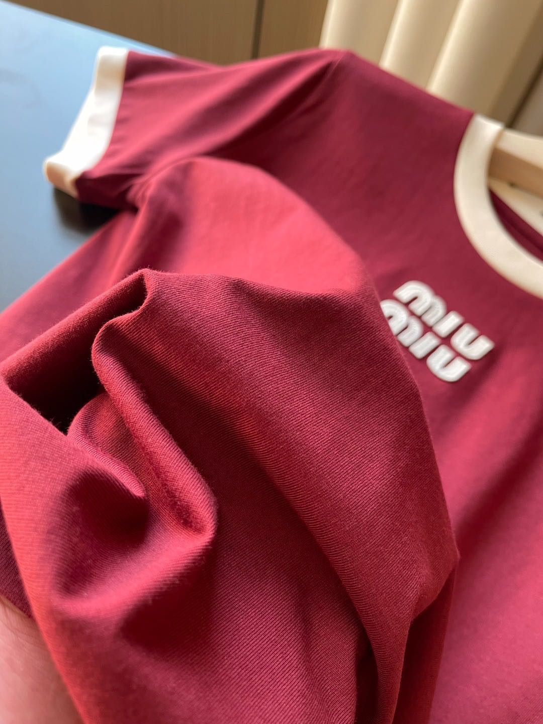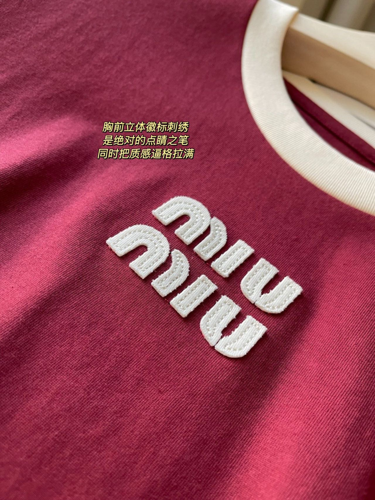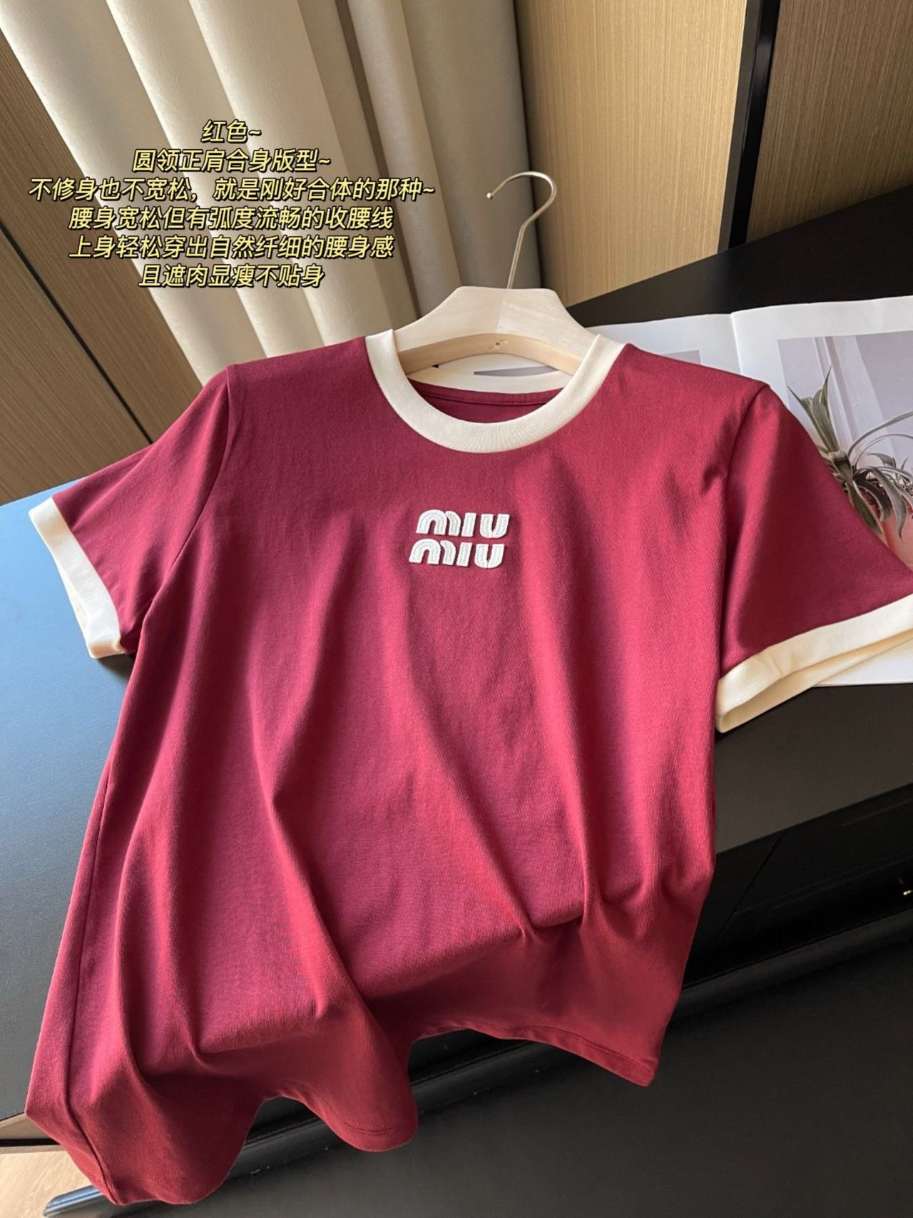 85 货号068772085 ye 撞色领 红色短袖 很适合新年,有一说一,相比较而言miu这件短T真的属于辣妹装里日常实穿又几乎没有穿衣门槛的,不易捕捉的小性感和漫不经心地撩才是猎杀时刻~~