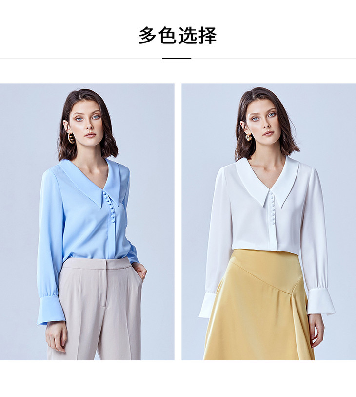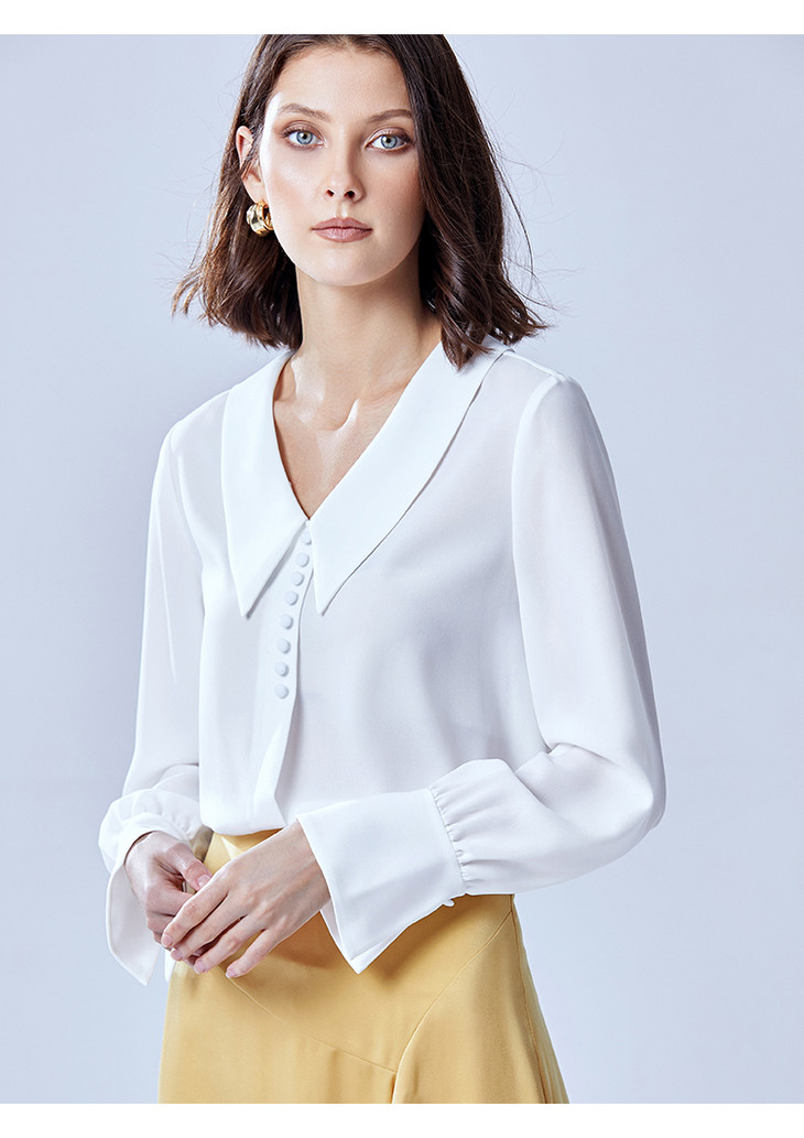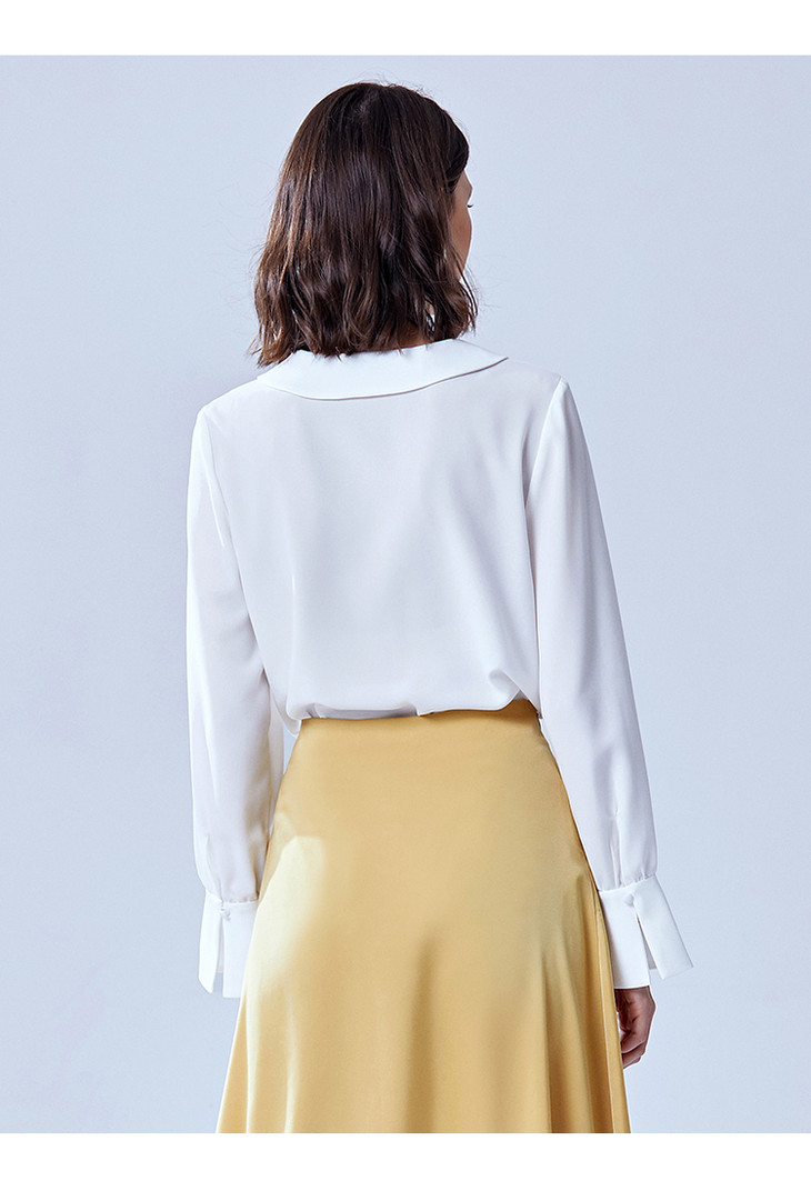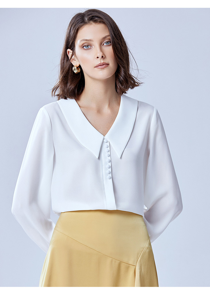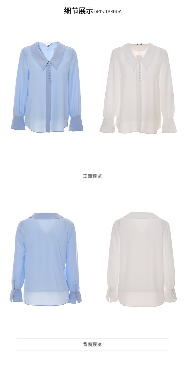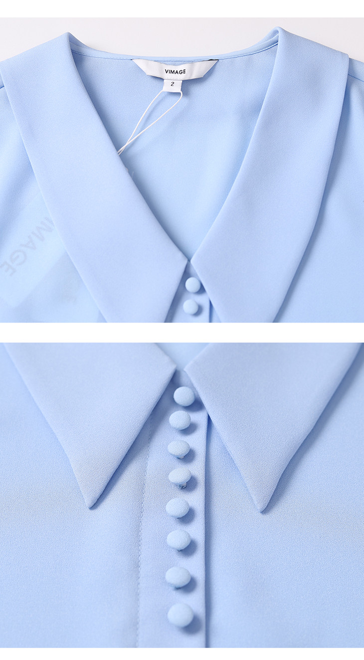VIMAGE纬漫纪夏款轻薄舒适法式翻领喇叭袖雪纺衬衫女上衣V1309927