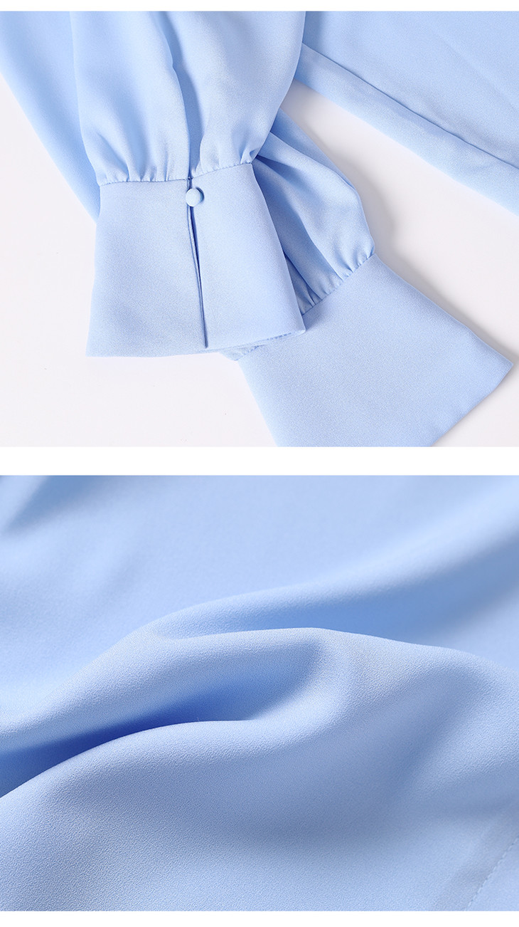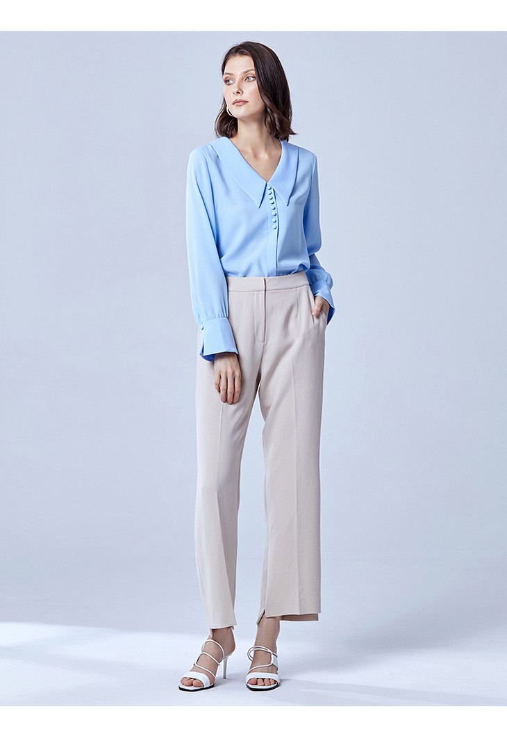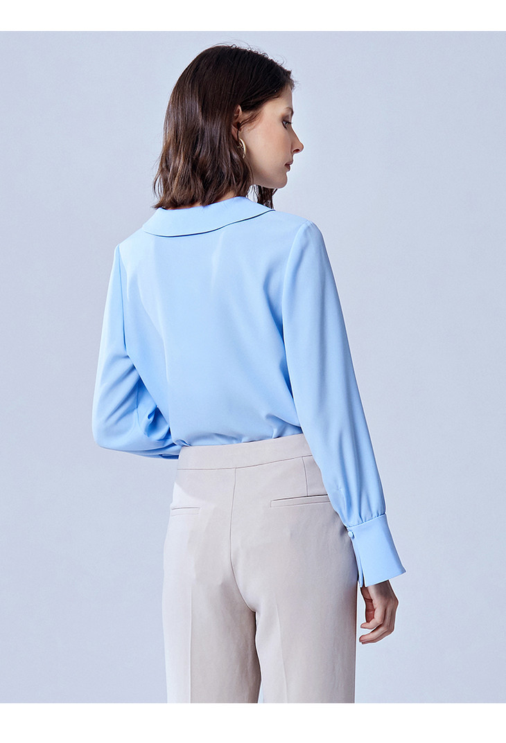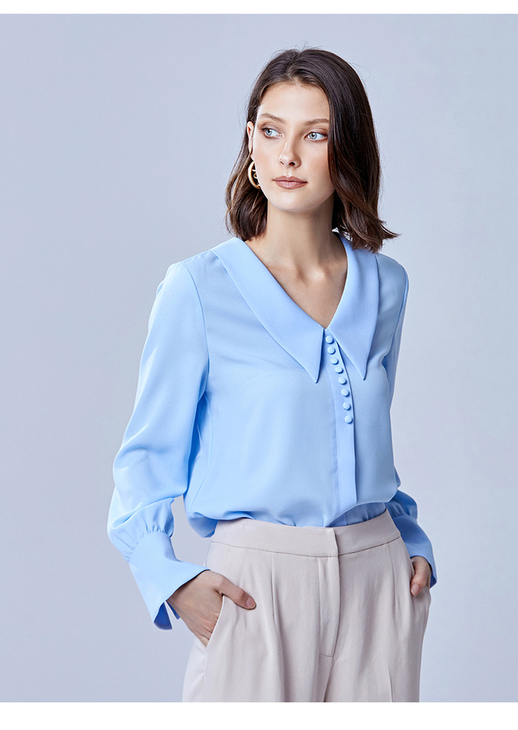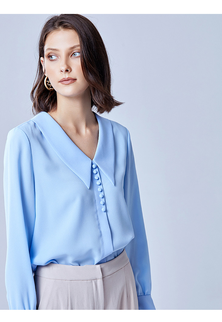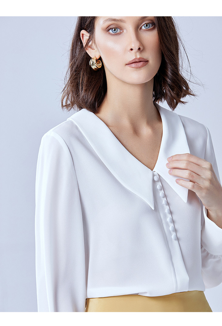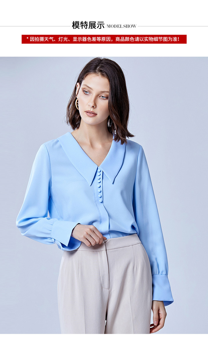 VIMAGE纬漫纪夏款轻薄舒适法式翻领喇叭袖雪纺衬衫女上衣V1309927