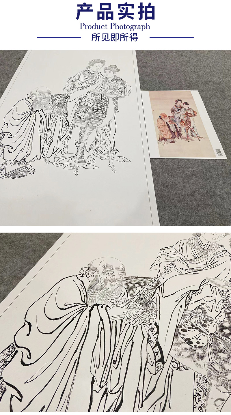 【大彩图】钱慧安工笔画白描底稿《祝寿图》传统人物高清打印稿A623