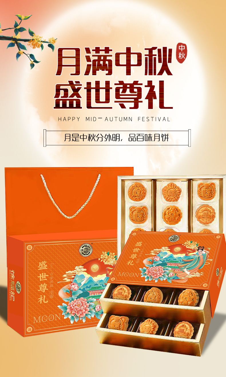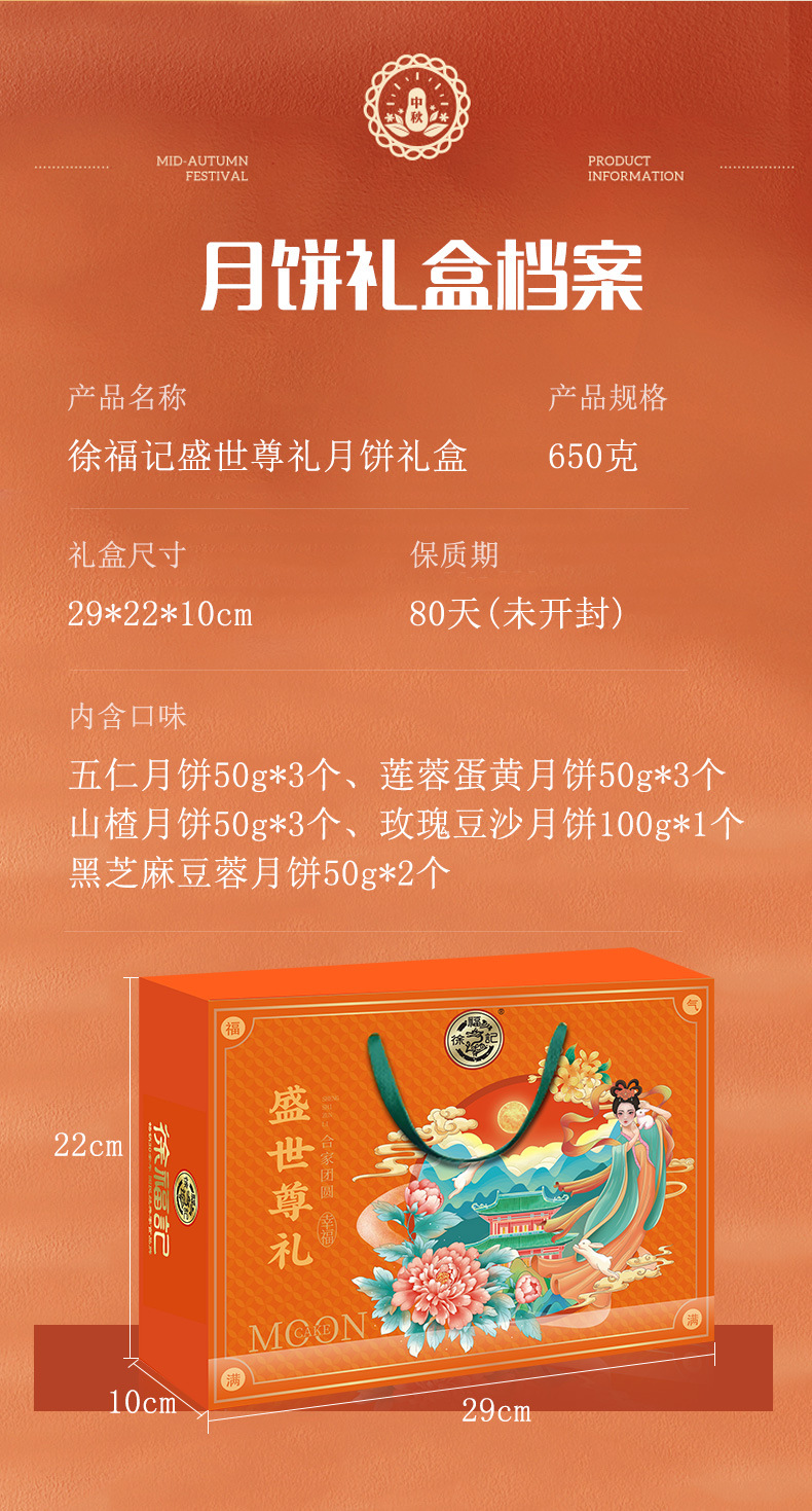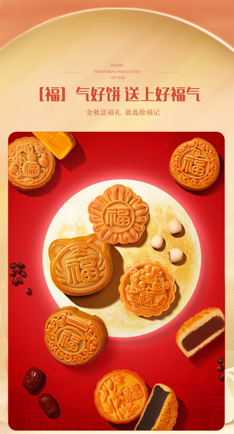 【金秋有味!一盒尽享团圆】口感丰富,咸甜皆宜,徐福记月饼高端650g双层礼盒装中秋节送礼广式蛋黄莲蓉传统五仁味。rb