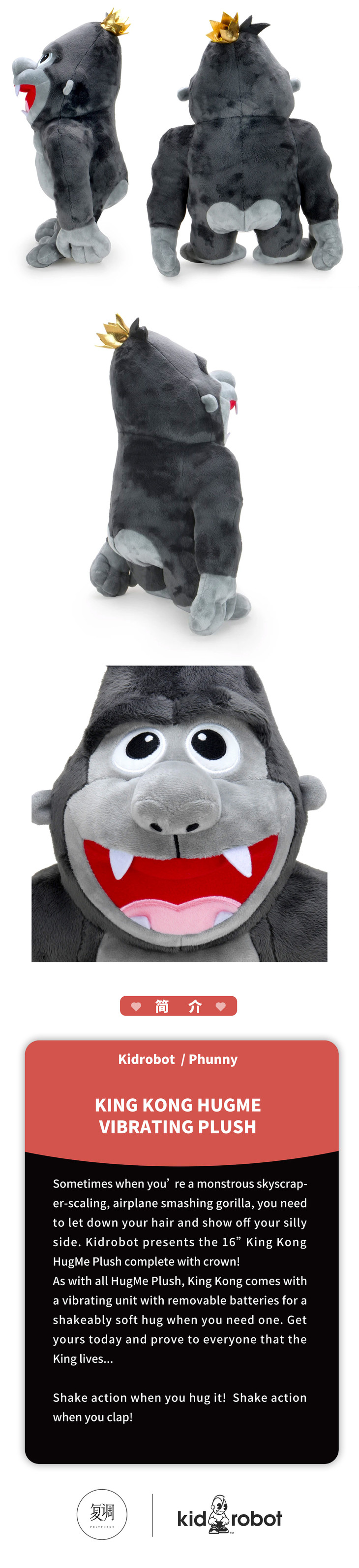 现货 Kidrobot King Kong HugMe 毛绒 抱枕 摆件