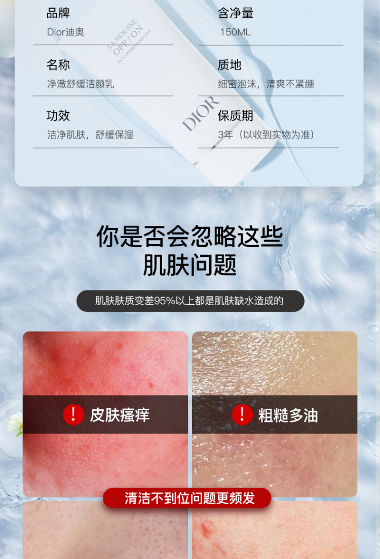品名:Dior迪奥新品睡莲洁面洗面奶50ml 小开关洁面双重清洁舒缓保湿