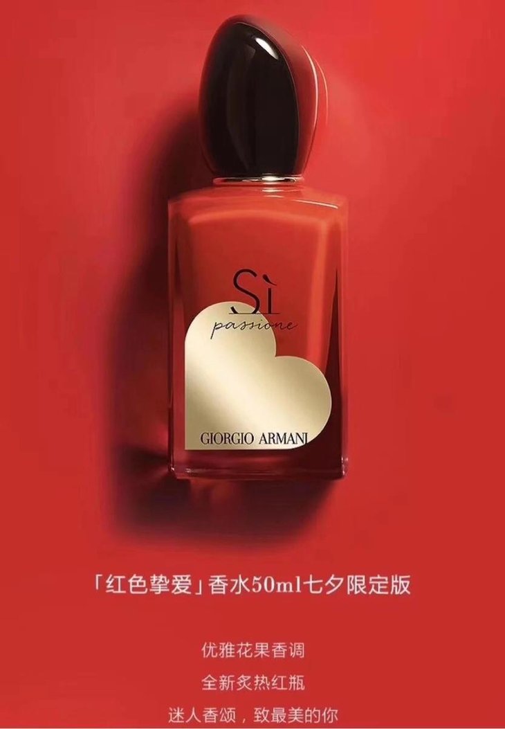 阿玛尼2019七夕限定版红色Si挚爱香水(EDP浓香)50ML👍比起那些女人味气息浓厚的玫瑰花🌹香调,红色挚爱独特的花果香调🍉,甜而不腻,清新淡雅反而更能俘获人心。❤前调酸甜的果香❤中调过渡到花朵暖暖的馨香,交织在一起散发着细微柔和与清甜。❤后调香草与雪松木的木质香回味,有一种若隐若现的温暖基调。让这瓶高级香水的香调清爽又香调,富有层次感。馥郁的香型却拥有性感👄与优雅的气质💃💃~