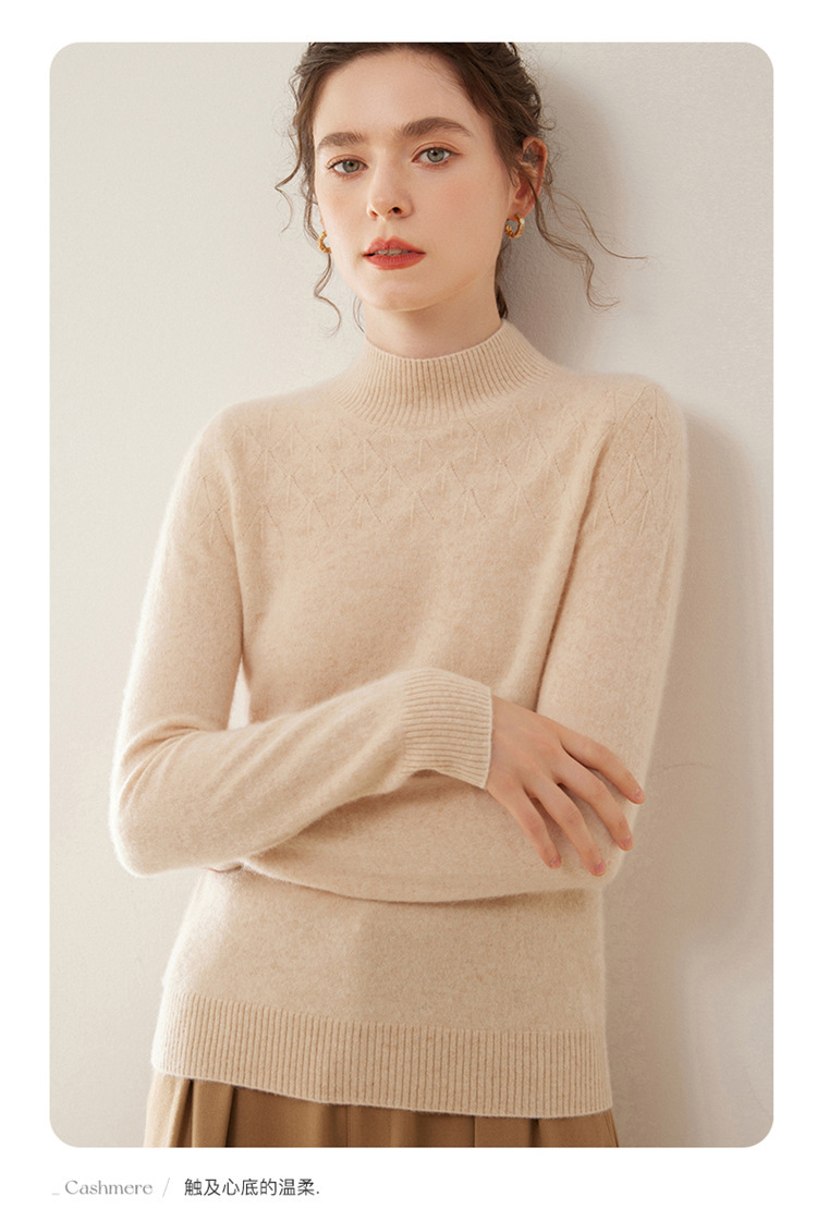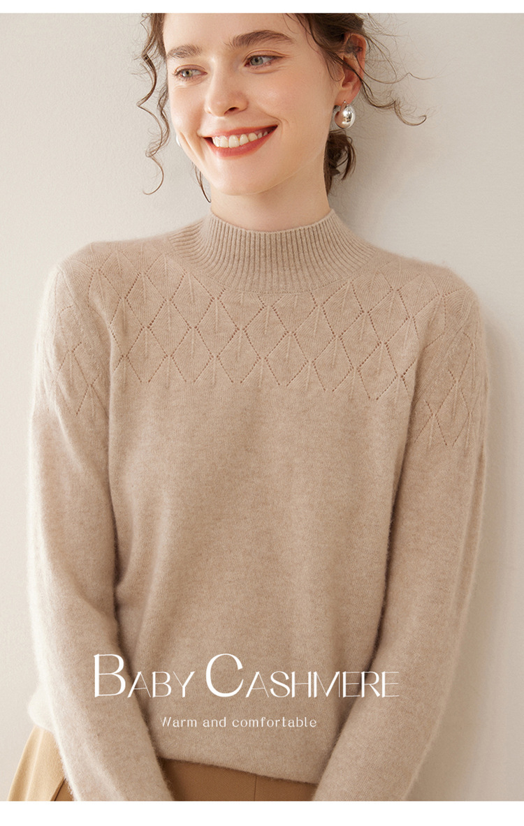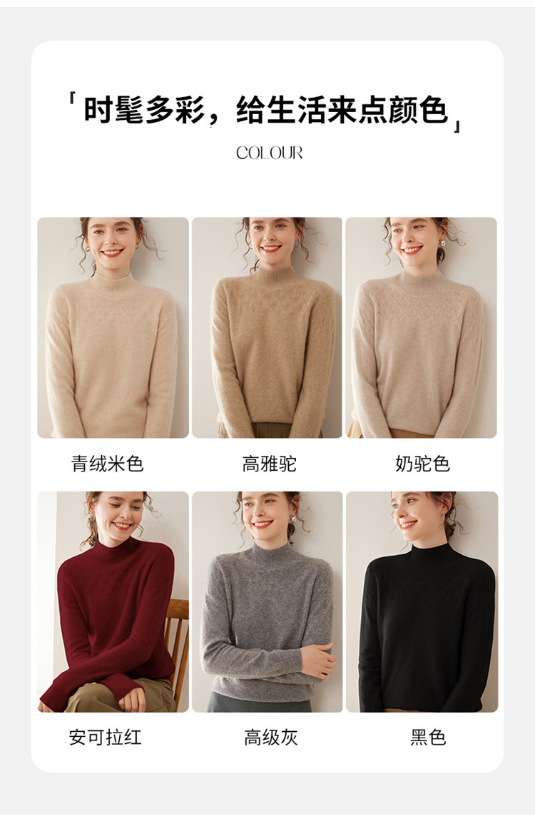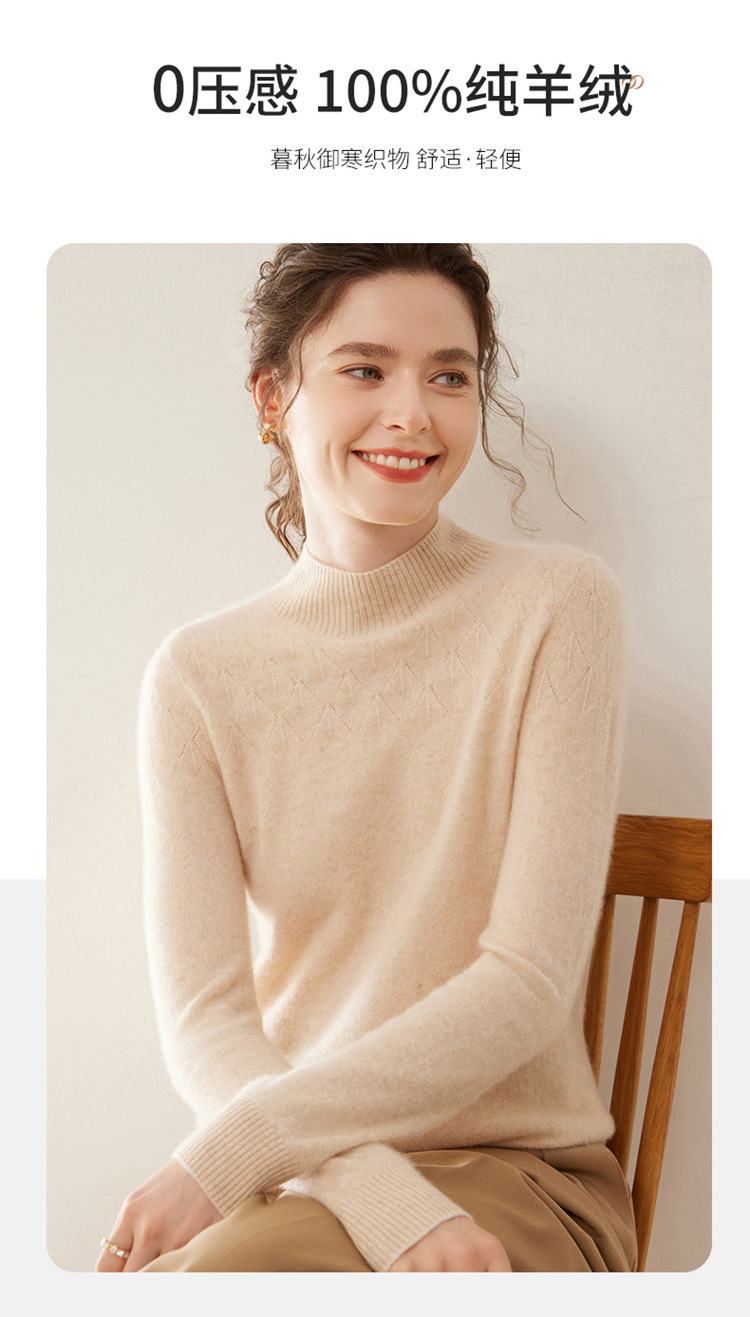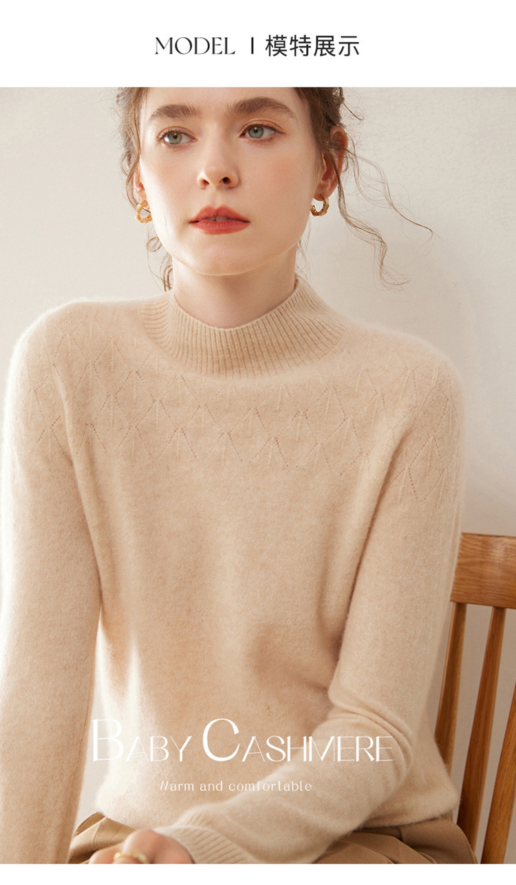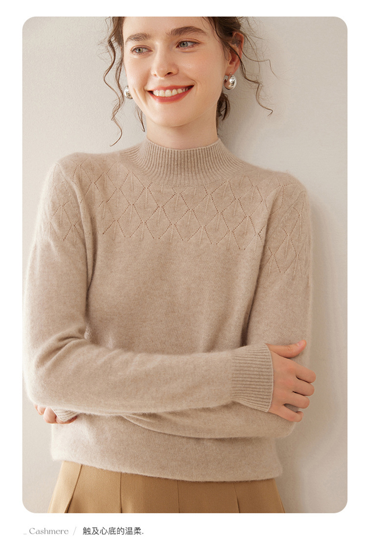【自】全新升级【铂金会员441/天猫599/差价158】(12344) 洛诗琳秋冬新款鄂尔多斯半高领薄款纯色镂空针织羊绒衫