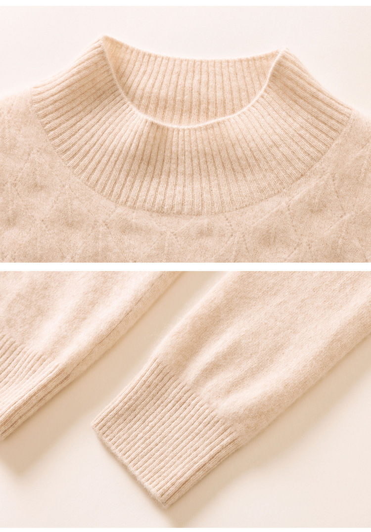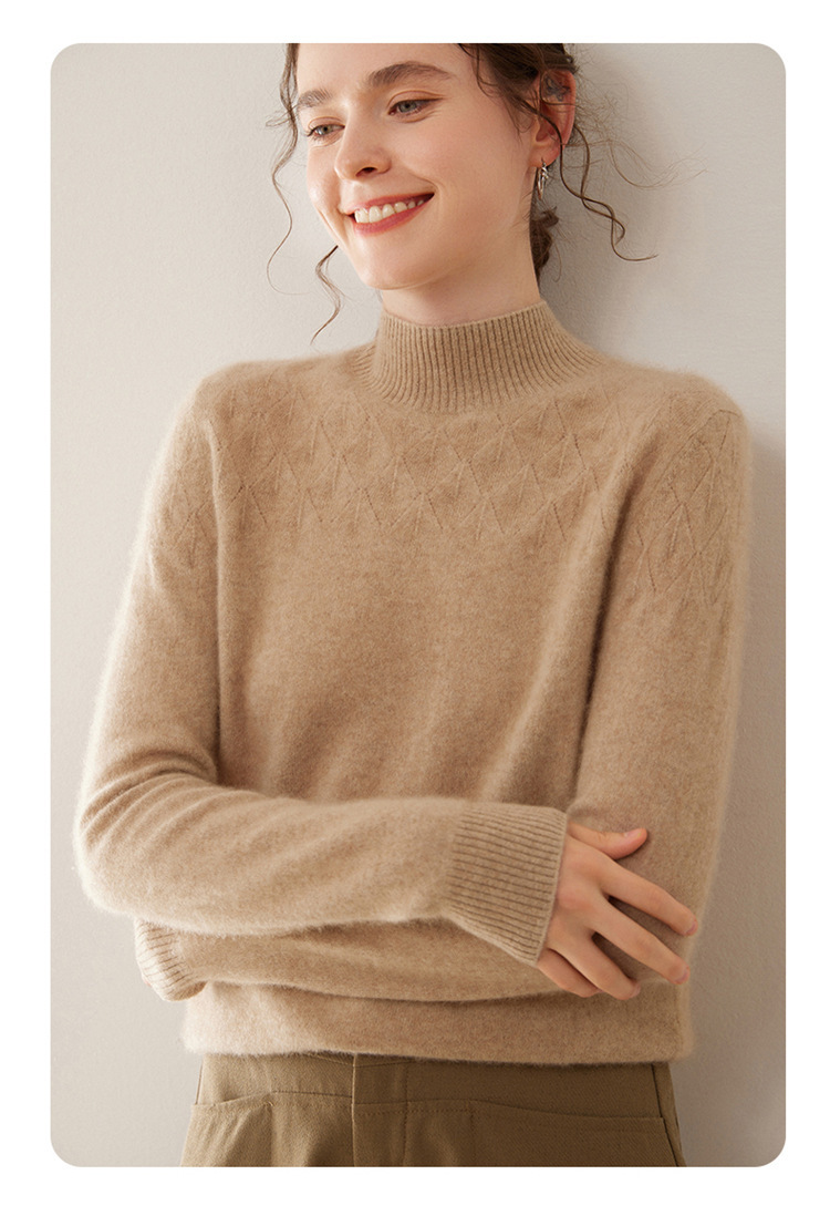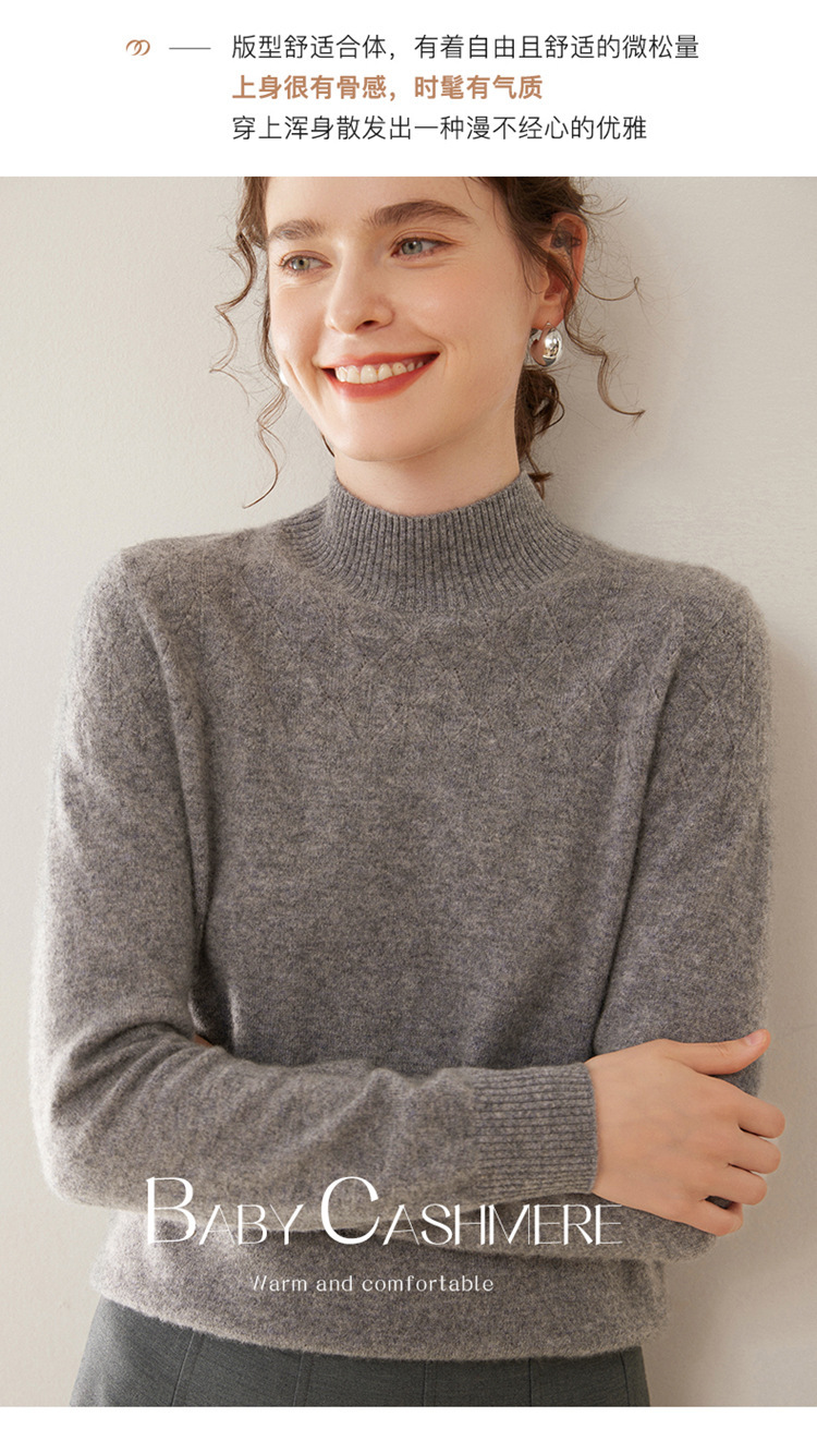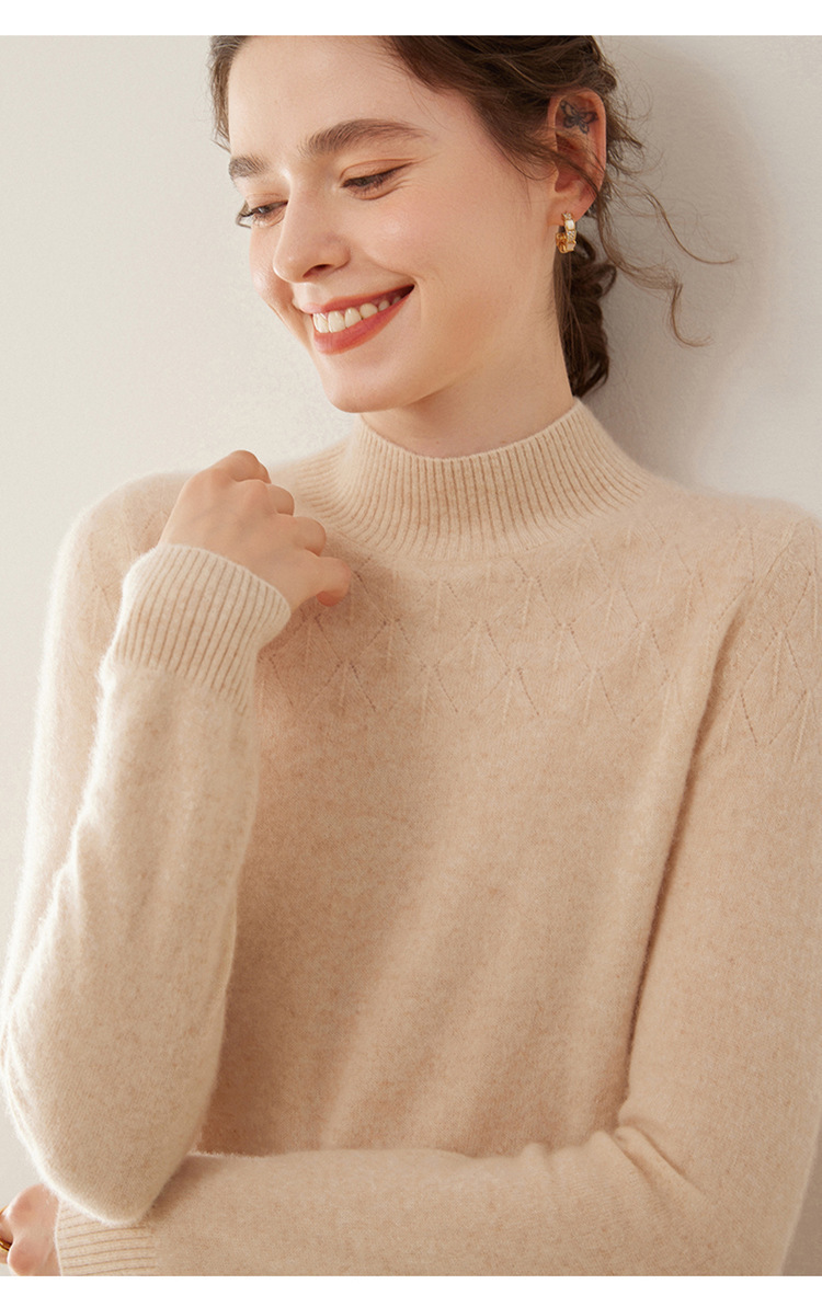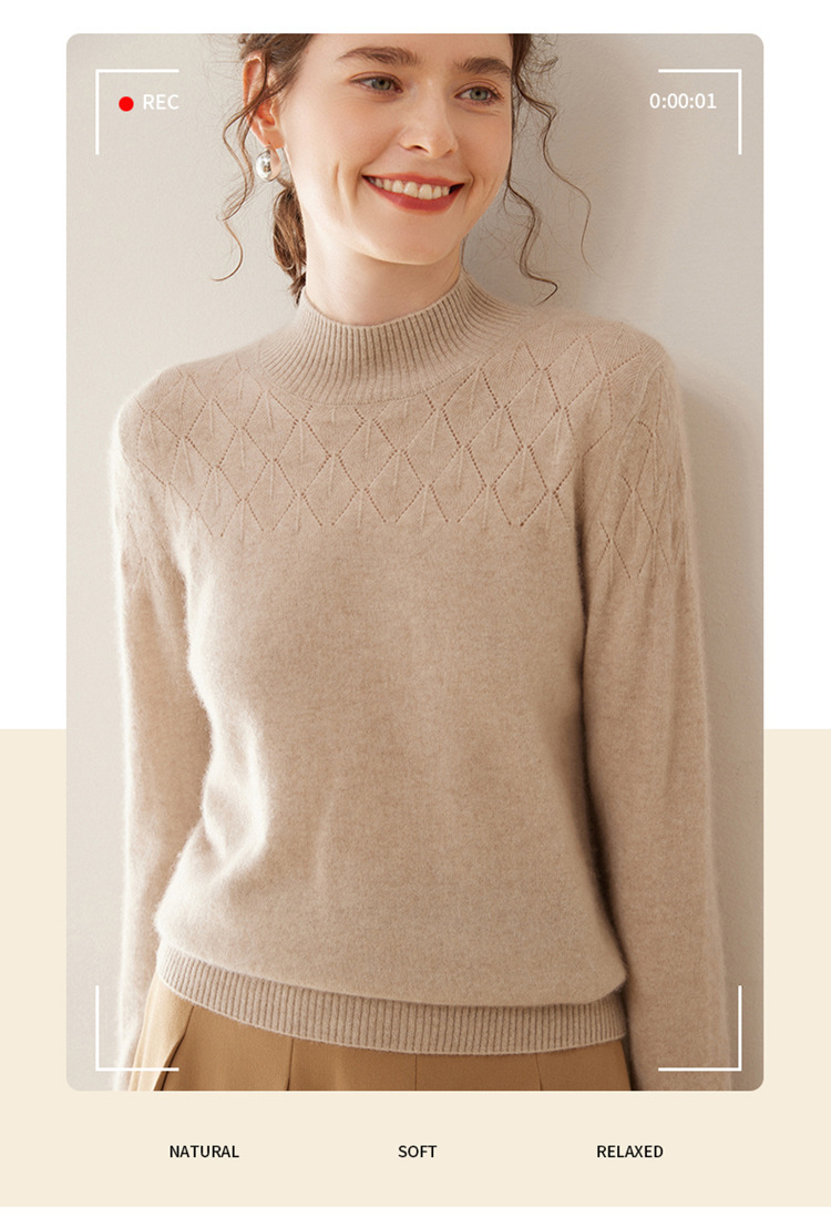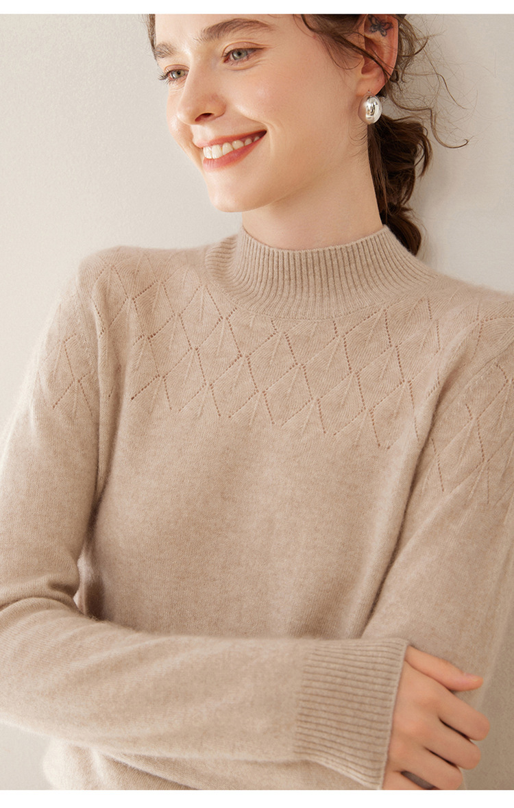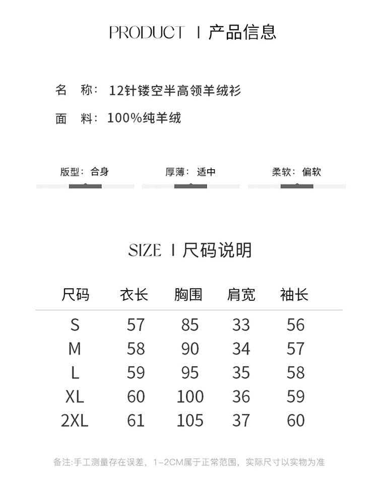【自】全新升级【铂金会员441/天猫599/差价158】(12344) 洛诗琳秋冬新款鄂尔多斯半高领薄款纯色镂空针织羊绒衫