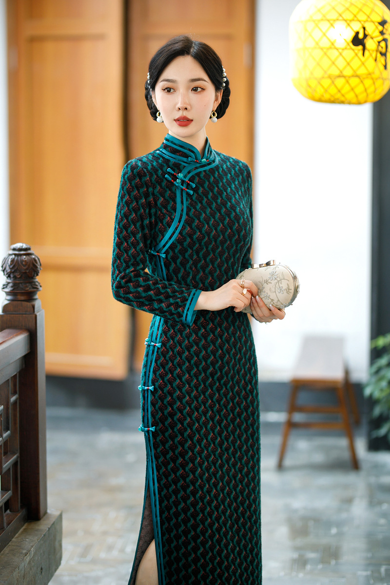 SYG-696旗袍2024新款年轻款高端气质改良高级感日常高贵九分袖秋冬女
